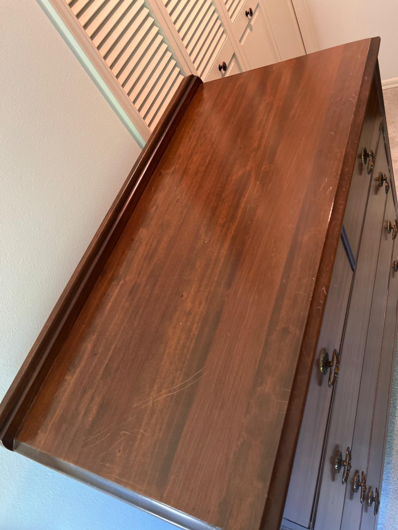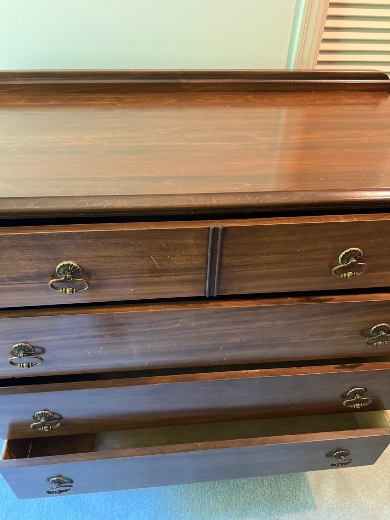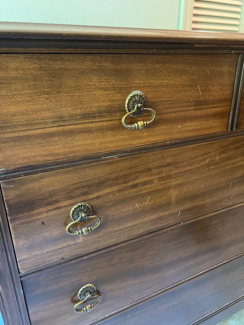 A beautifully refinished dresser from Crittenden & Eastman Co., bearing the iconic Square Brand mark. This early 20th-century piece showcases solid wood construction, clean lines, and a warm, hand-applied finish that honors its original craftsmanship. Refinished; structurally sound with restored surface. A couple drawers ask for patience—echoes of a century’s worth of use, still sturdy and full of stories.