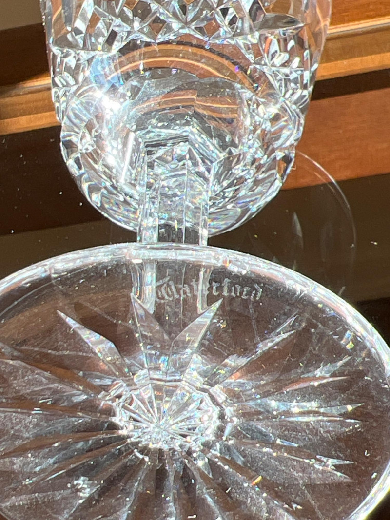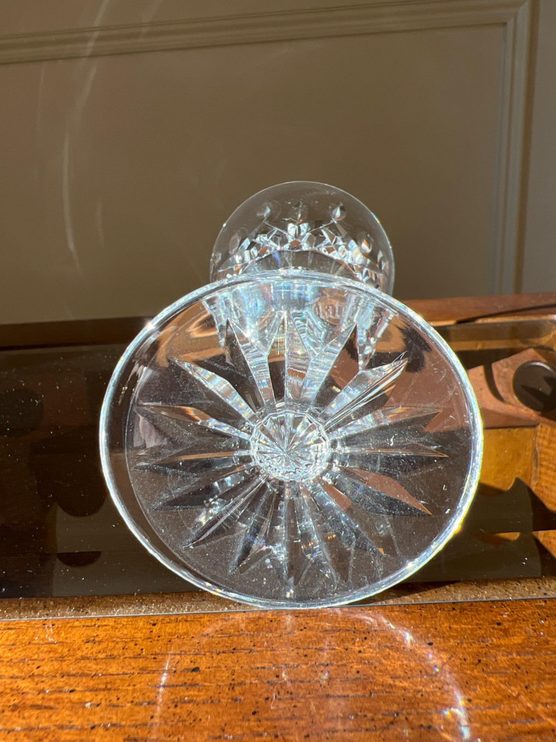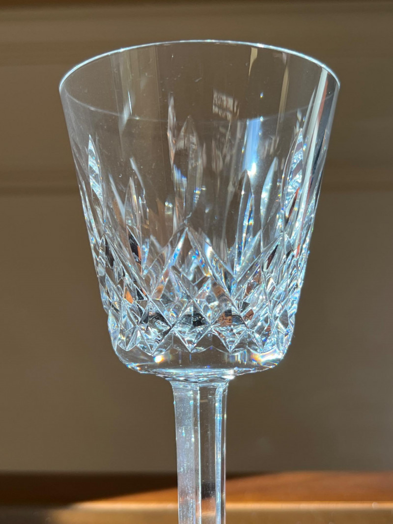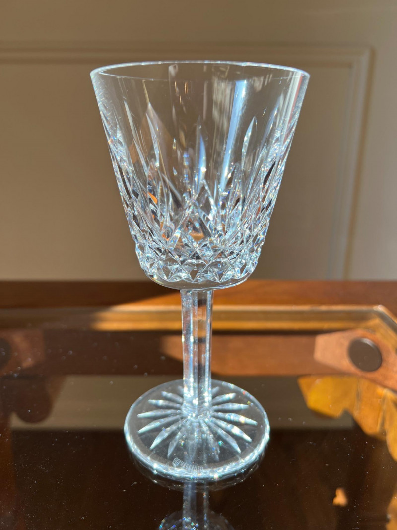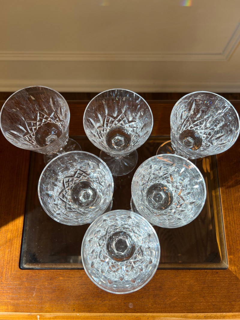 A graceful set of six Waterford Lismore sherry glasses, each cut with the iconic brilliance and symmetry that defines the Lismore tradition. Standing 5-7/8 inches tall, these glasses offer a delicate balance of weight and clarity—perfect for refined pours and quiet rituals. Whether completing a cherished collection or adding a touch of legacy to your cabinet, this set evokes timeless craftsmanship and the art of savoring. Total replacement value: $240