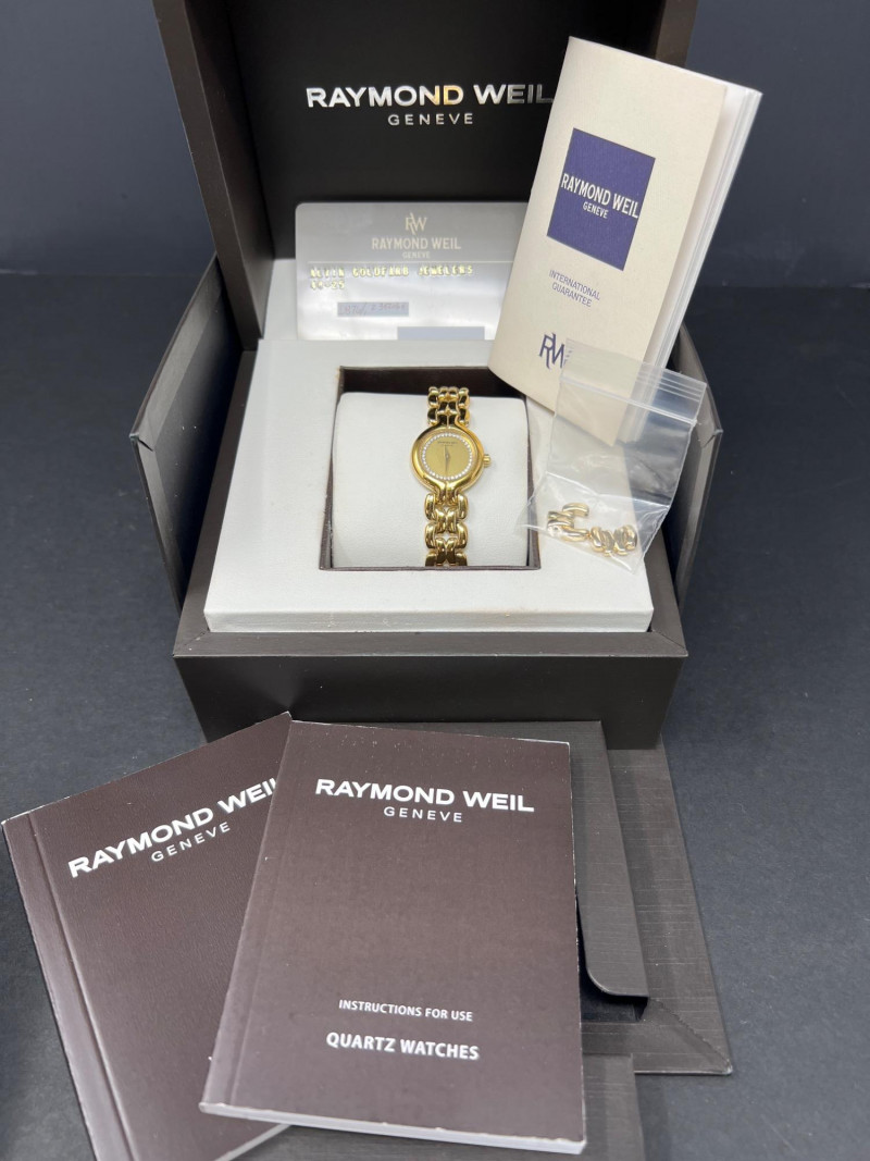 A sophisticated Raymond Weil Genève wristwatch, originally priced at $767 in 2013. This Swiss-made timepiece reflects the brand’s signature blend of elegance and precision. Though it currently requires a battery replacement, the watch remains in great cosmetic condition with a few small scratches on bezel (see picture). Crown functions as it should and hands can be easily adjusted. Ideal for collectors or those seeking a refined accessory with timeless appeal. Includes original case and classy black manufacturer box including manuals and certification. Style number 5876/1.