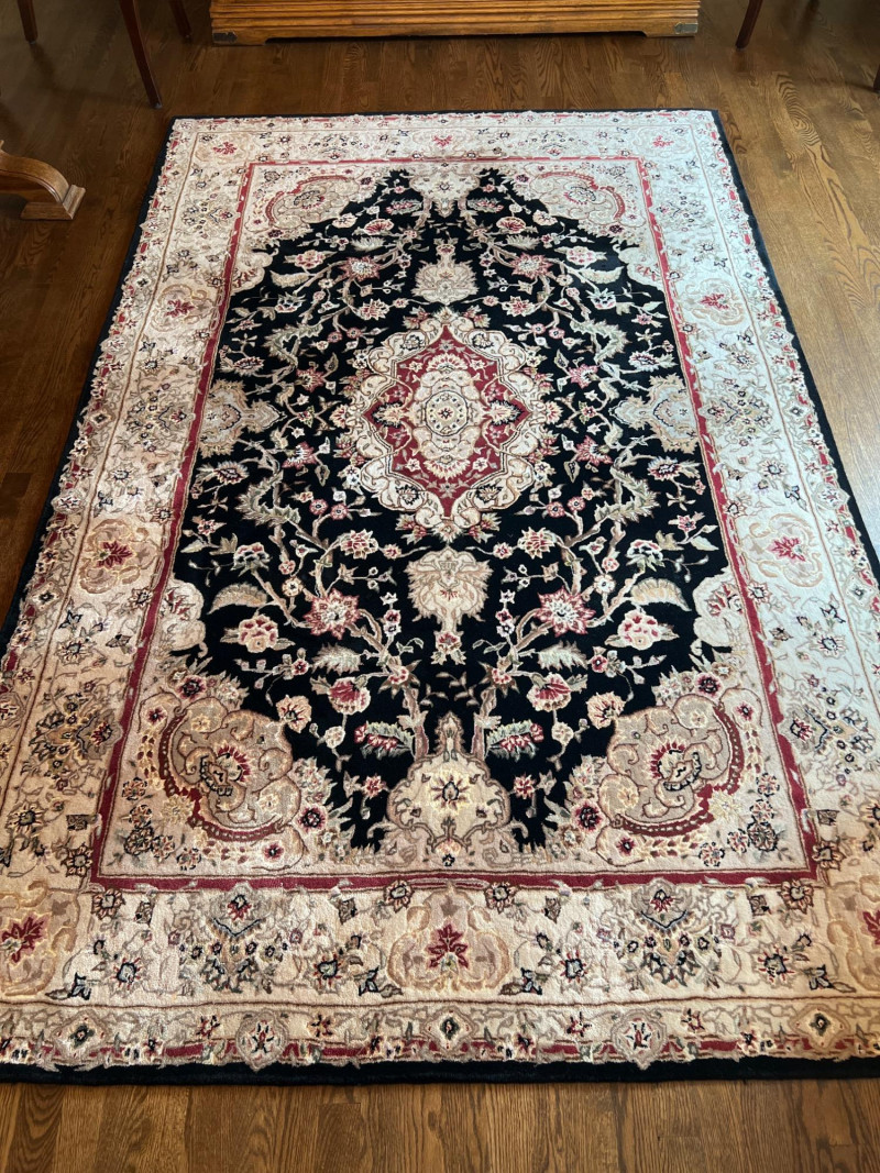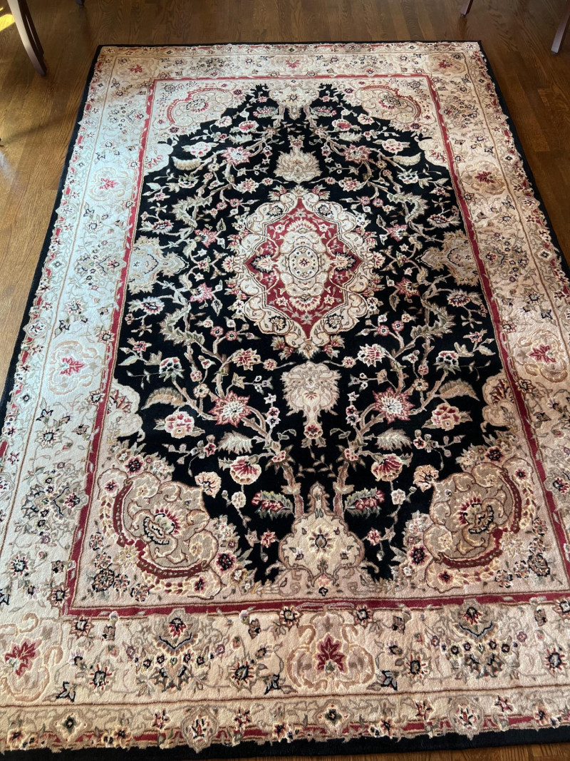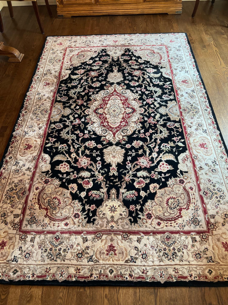 A beautifully woven area rug by Nourison, measuring 103" x 66", ideal for anchoring a dining space with warmth and sophistication, or any large room. Known for their mastery of color, texture, and artisanal technique, Nourison rugs blend traditional craftsmanship with modern design sensibility. Rug is made of New Zealand wool with silk accents. This piece features a soft, neutral palette and subtle patterning that complements a range of interiors—from classic to contemporary. Nourison rugs are favored by interior designers for their luxurious feel and timeless appeal. This rug is in great condition and offers both comfort and visual harmony. Rug has been positioned under a dining table for a few years. Bidding on this lot is an agreement that: (1.) You will have 2 capable, able-bodied persons to lift and load at a minimum. (2.) You