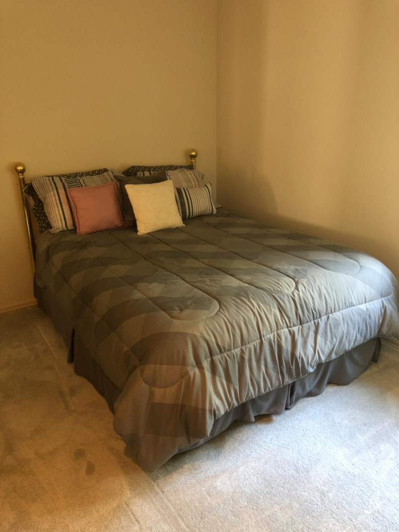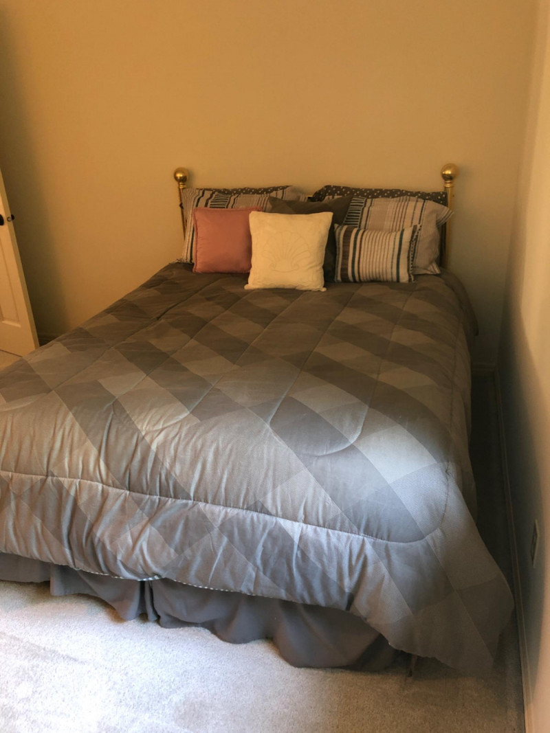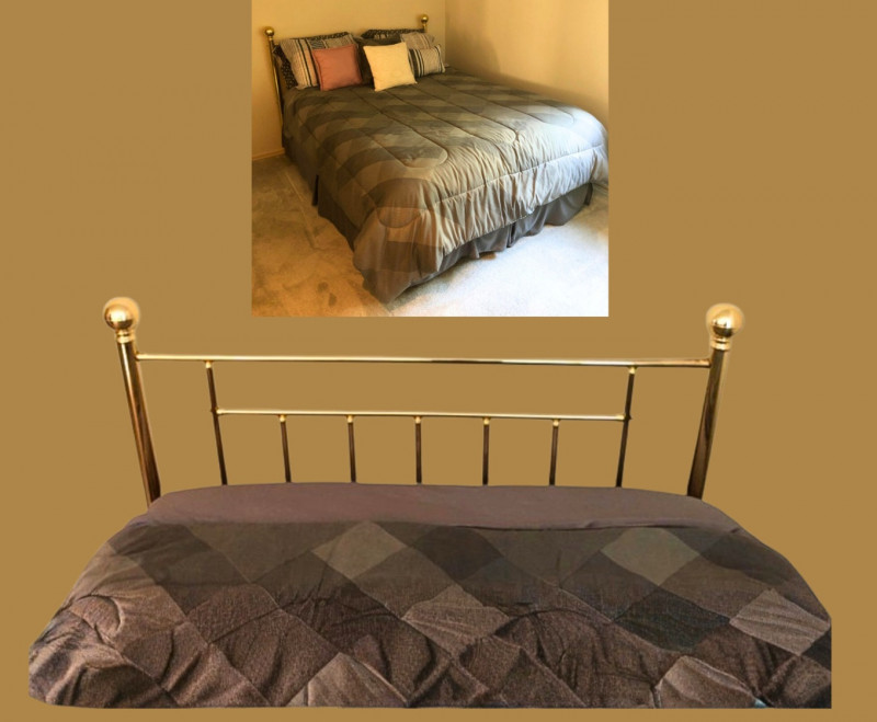 Lot # 43 - Brass Queen Headboard – Complete Set with Mattress & Bedding