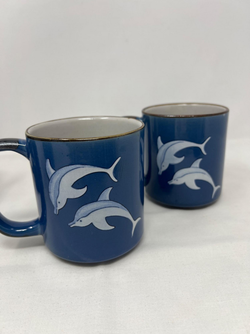 A set of ceramic coffee mugs from Sanibel Island, Florida, each adorned with gentle depictions of dolphins, seagulls, and seashells. These pieces evoke the living shoreline—where morning light meets salt air and sea creatures drift into view. Perfect for collectors of coastal keepsakes, lovers of marine life, or those curating a kitchen with beachside warmth and quiet whimsy. A ceramic tribute to the Gulf’s natural rhythm. Appear to be new or hardly used.