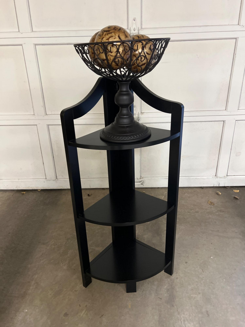 Lot # 61 - Corner 3-Tier Shelf Unit with Decorative Accent Pedestal Bowl