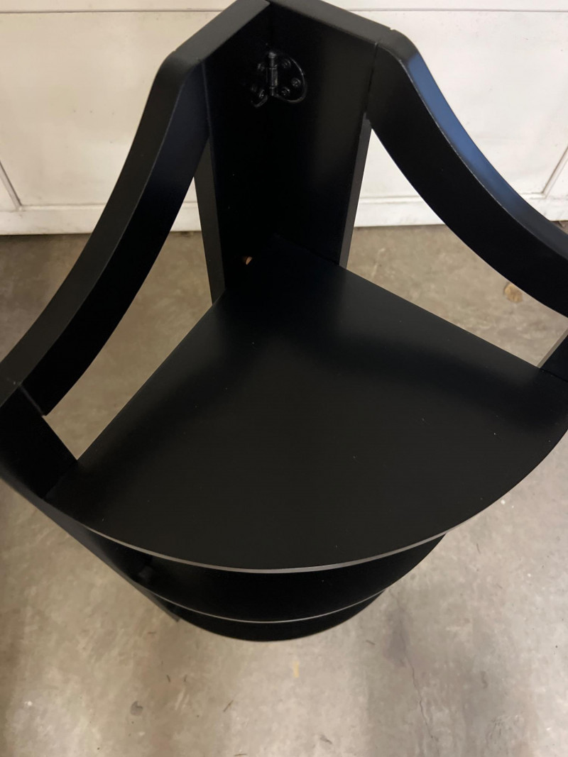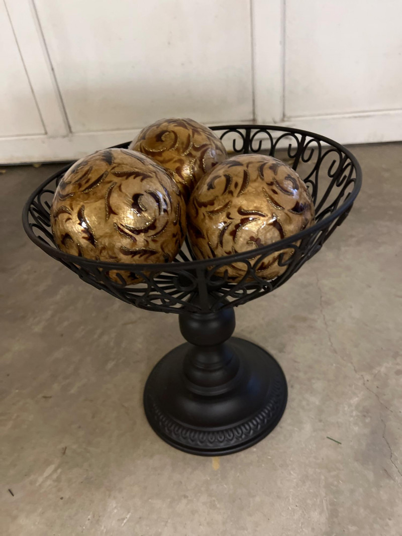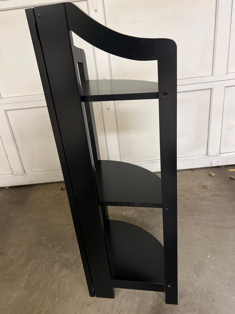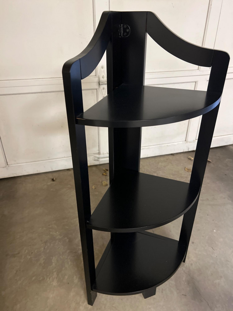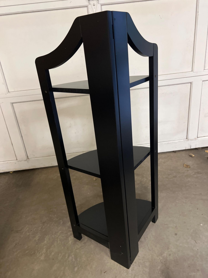 A sculptural corner shelf unit with three tiers, this piece offers both function and charm it’s designed to nestle into a corner to showcase decor or shelf items in a bathroom, bedroom or other living area. Included are three 5" round paper mâché balls and a pedestal bowl measuring 13" from back to front and 12" tall x 12" round—each adding texture and visual interest. 3-Tier Shelving Unit measures: