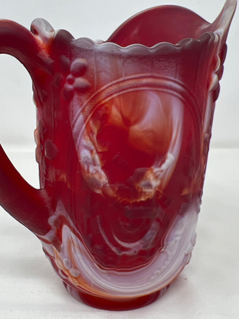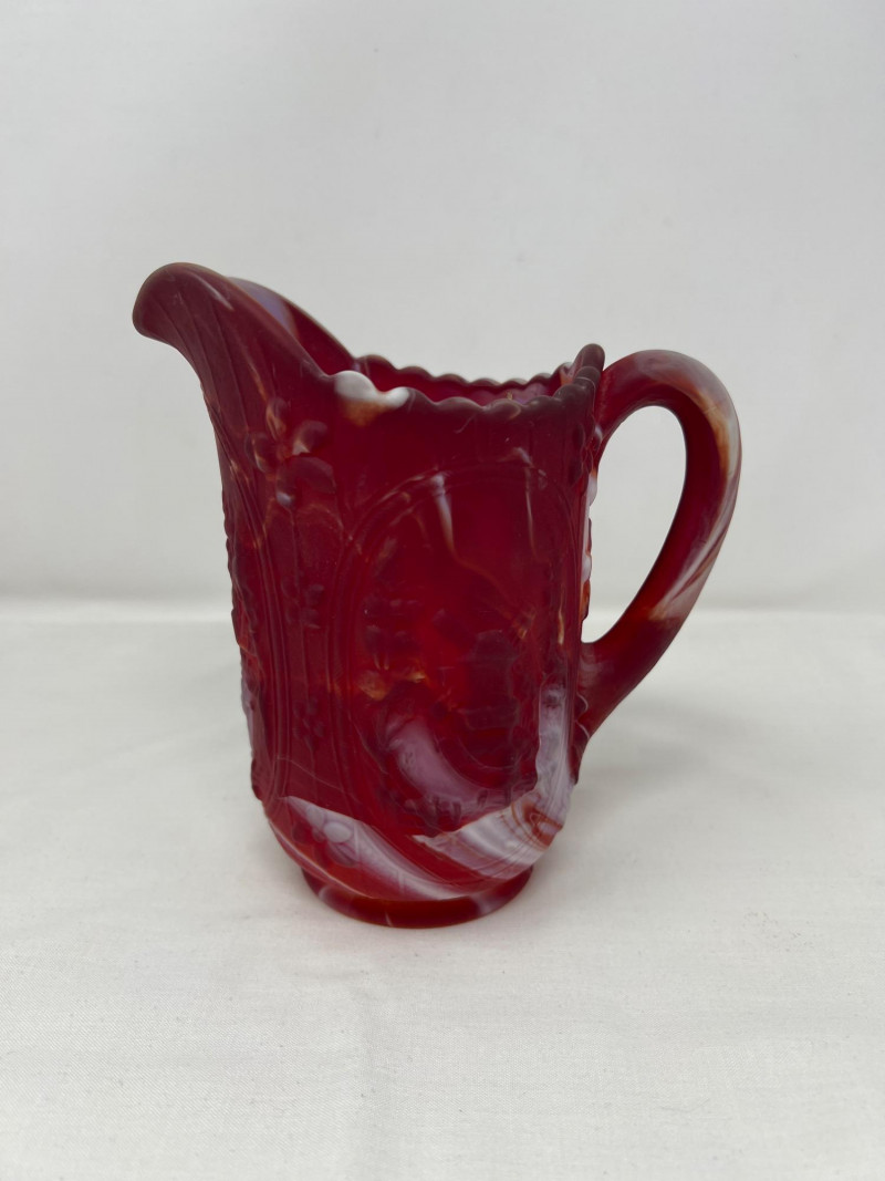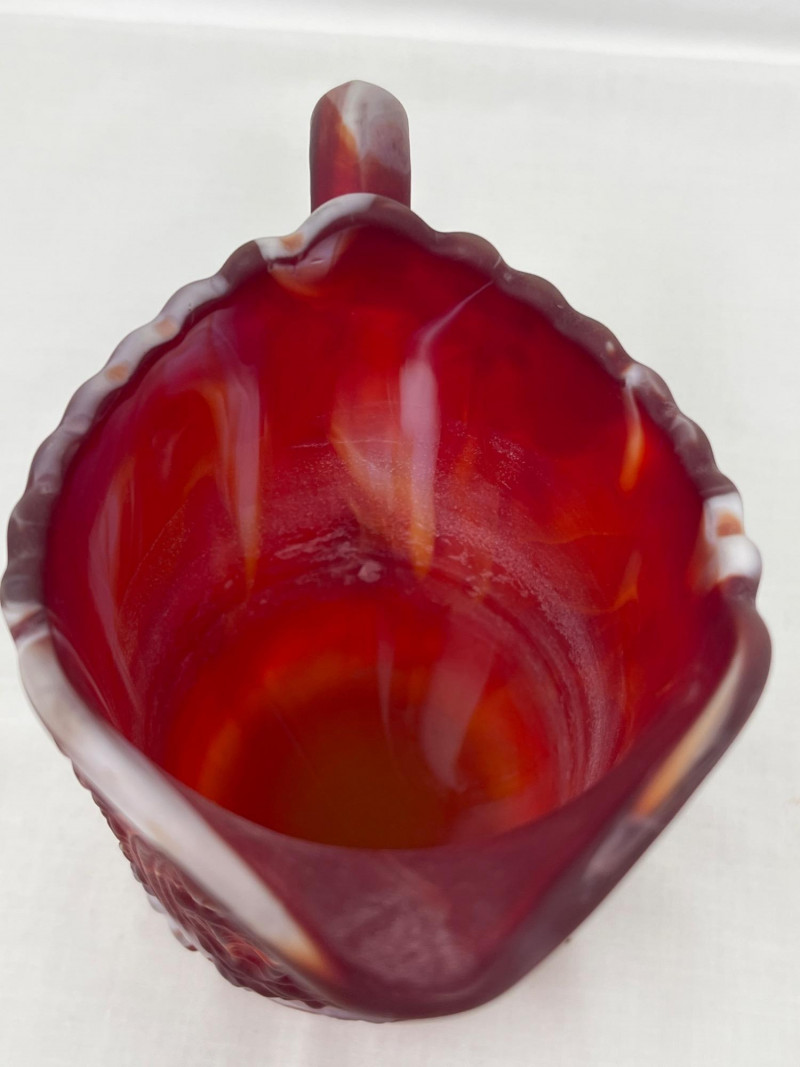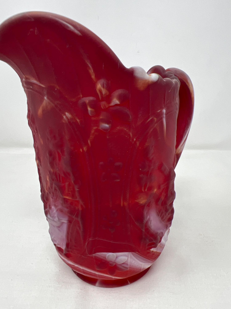 Lot # 62 - 1970s End-of-Day Glass Red Pitcher – Swirled Legacy in Liquid Form