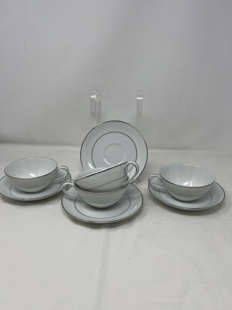 A graceful Noritake china place setting for four, blending the soft floral elegance of the Derry pattern with the understated charm of Envoy. This curated mix evokes mid-century hospitality and the art of intentional gathering—where every plate holds a story and every table setting invites connection.