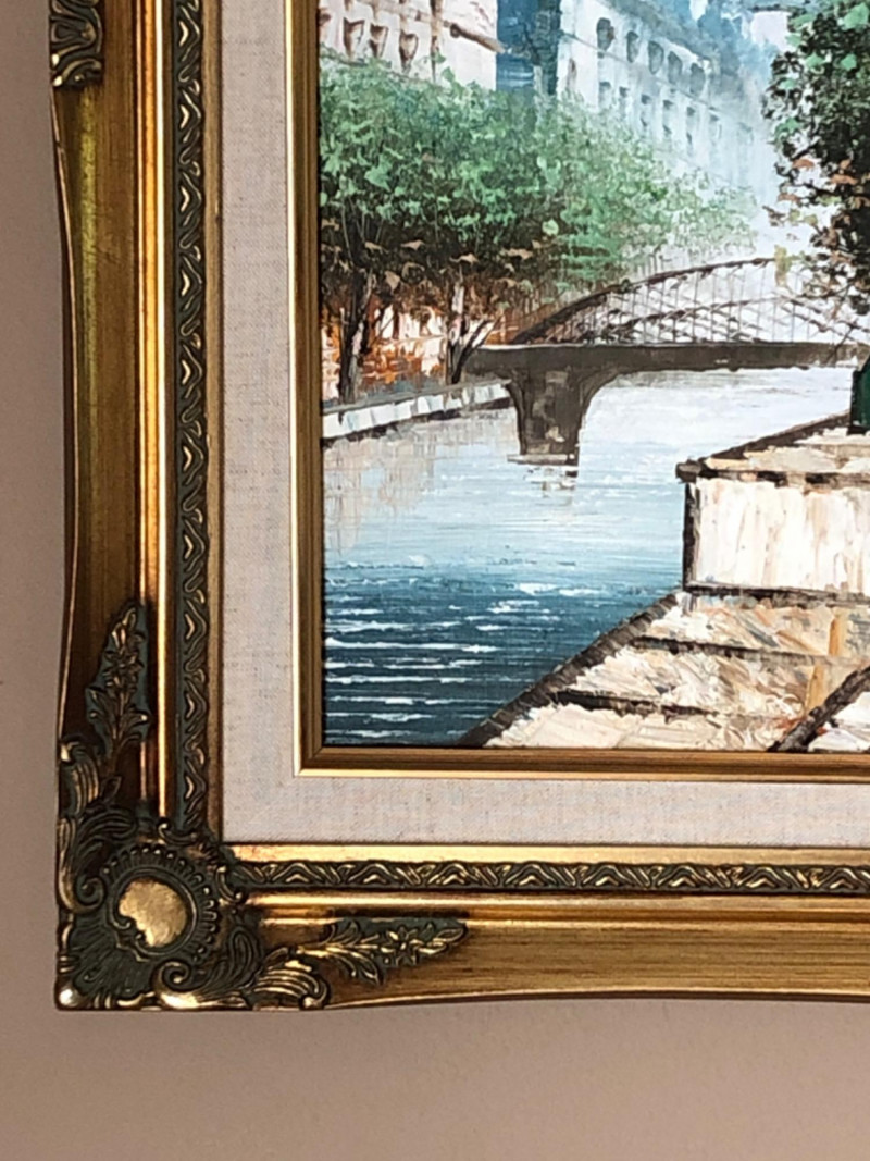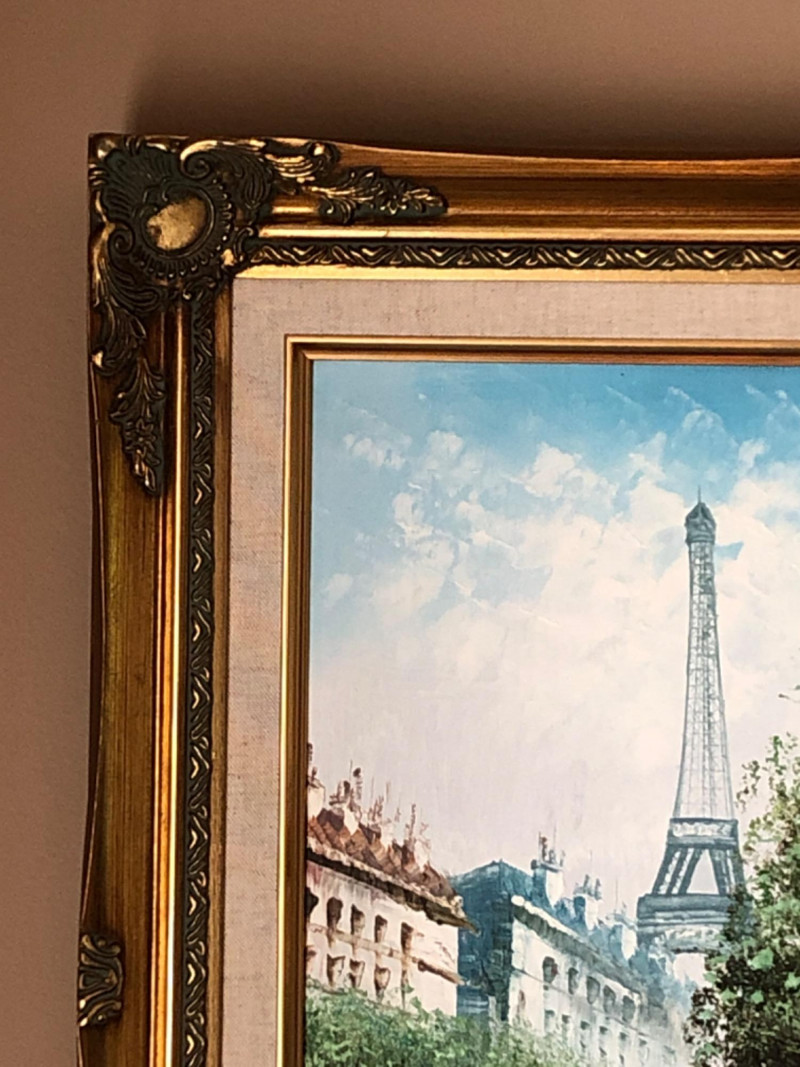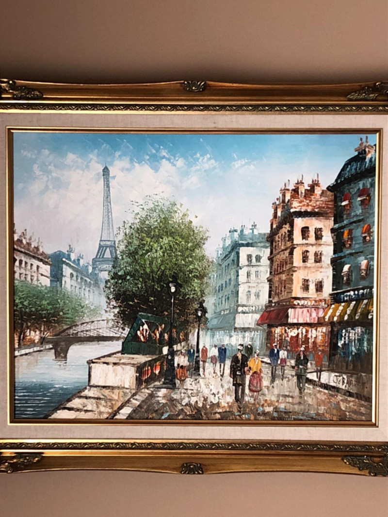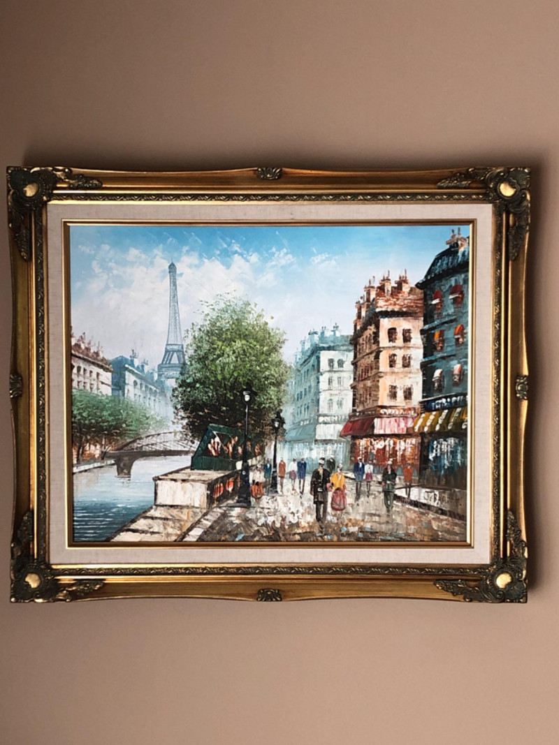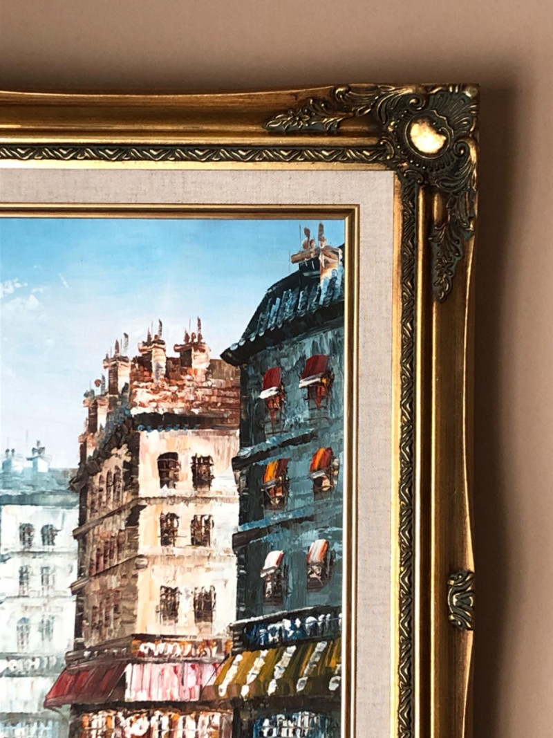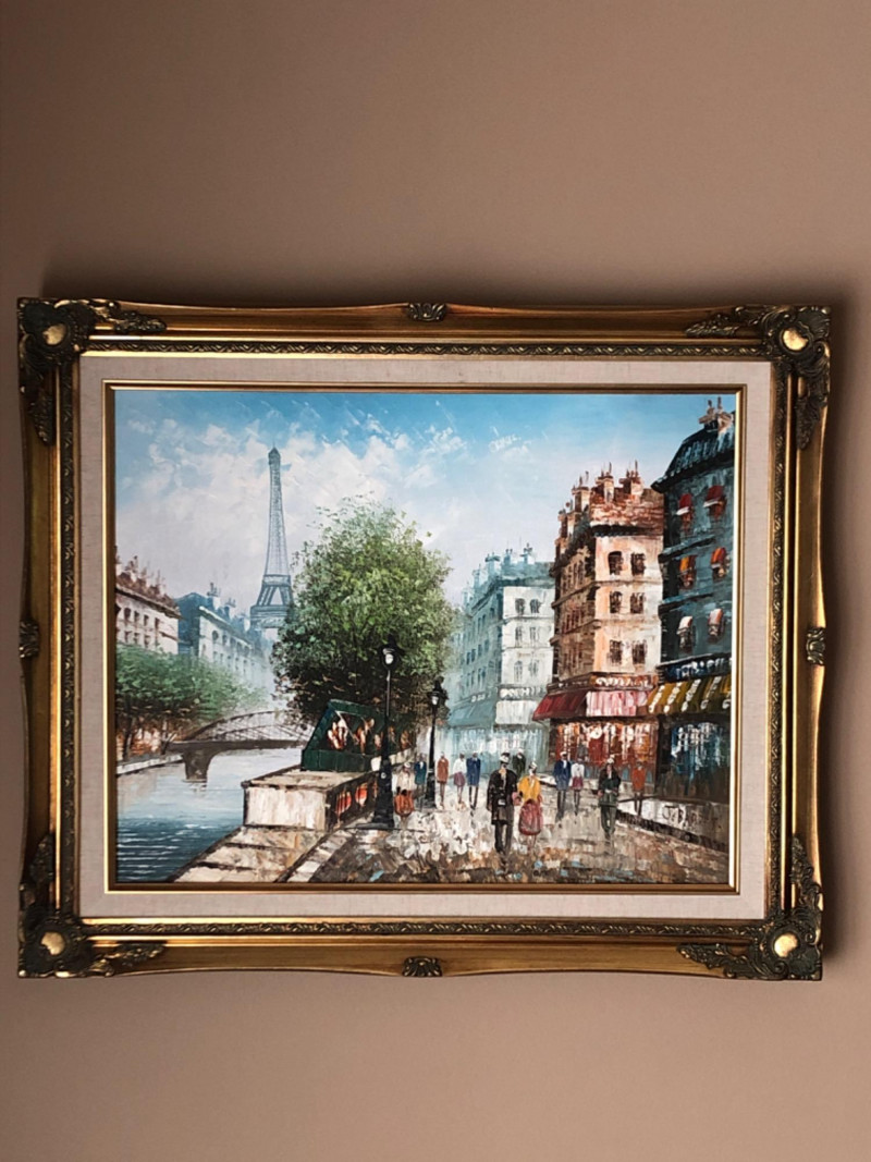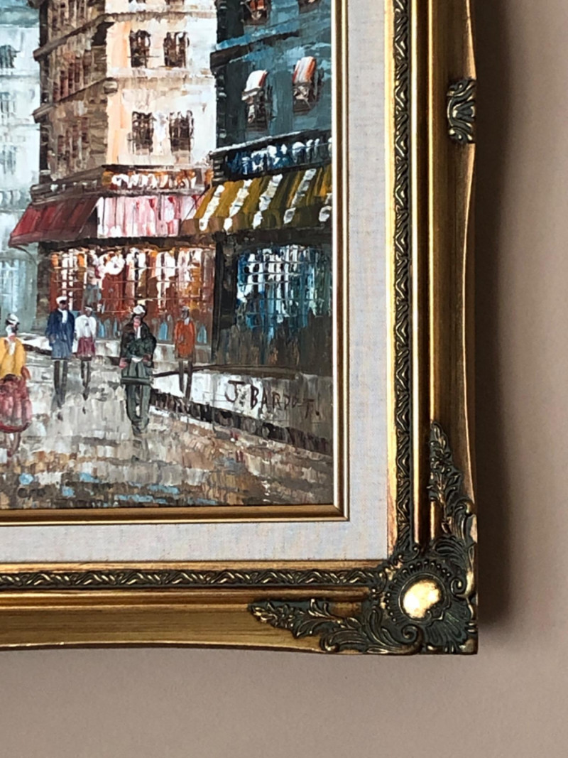 A nostalgic glimpse into the heart of Paris, this signed oil painting by J. Bardot captures a bustling street scene with soft impressionistic brushwork and warm, atmospheric tones. Bardot’s work is known for its romantic portrayal of urban life, often blending architectural detail with painterly softness. This piece is no exception—ideal for collectors of European cityscapes, vintage décor, or decorative oil paintings with emotional resonance.