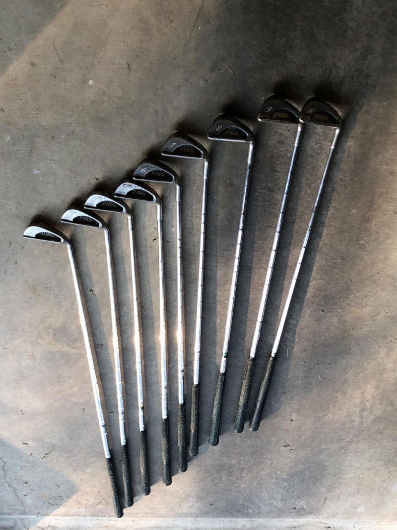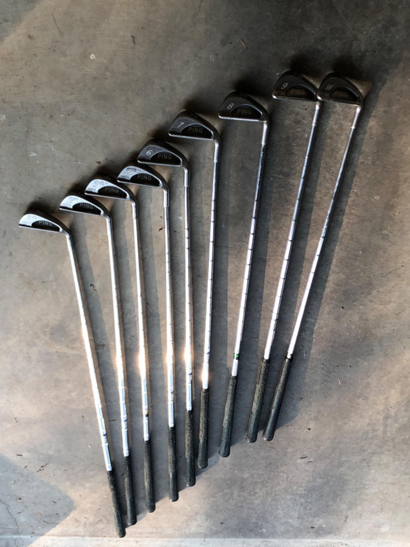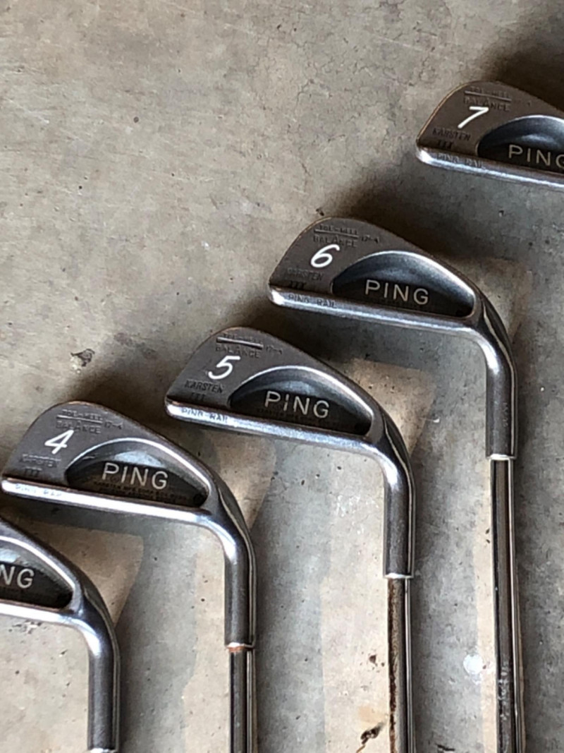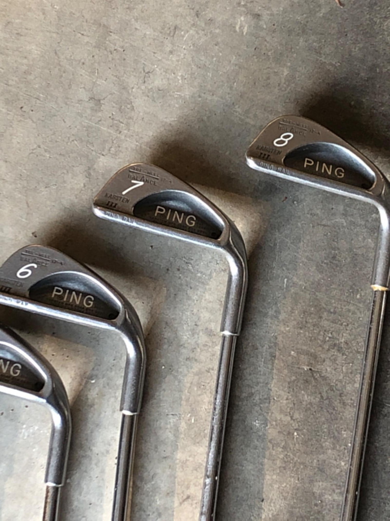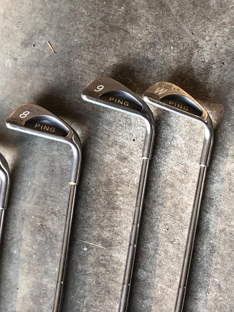 A full set of Ping golf irons, spanning 2 through 9 plus wedge. Known for their clean lines, balanced weight, and enduring performance, Ping clubs have long been favored by players who value precision and feel. This set reflects the brand’s commitment to craftsmanship and consistency—ideal for seasoned golfers, collectors of legacy equipment, or those seeking a reliable upgrade with vintage appeal.
