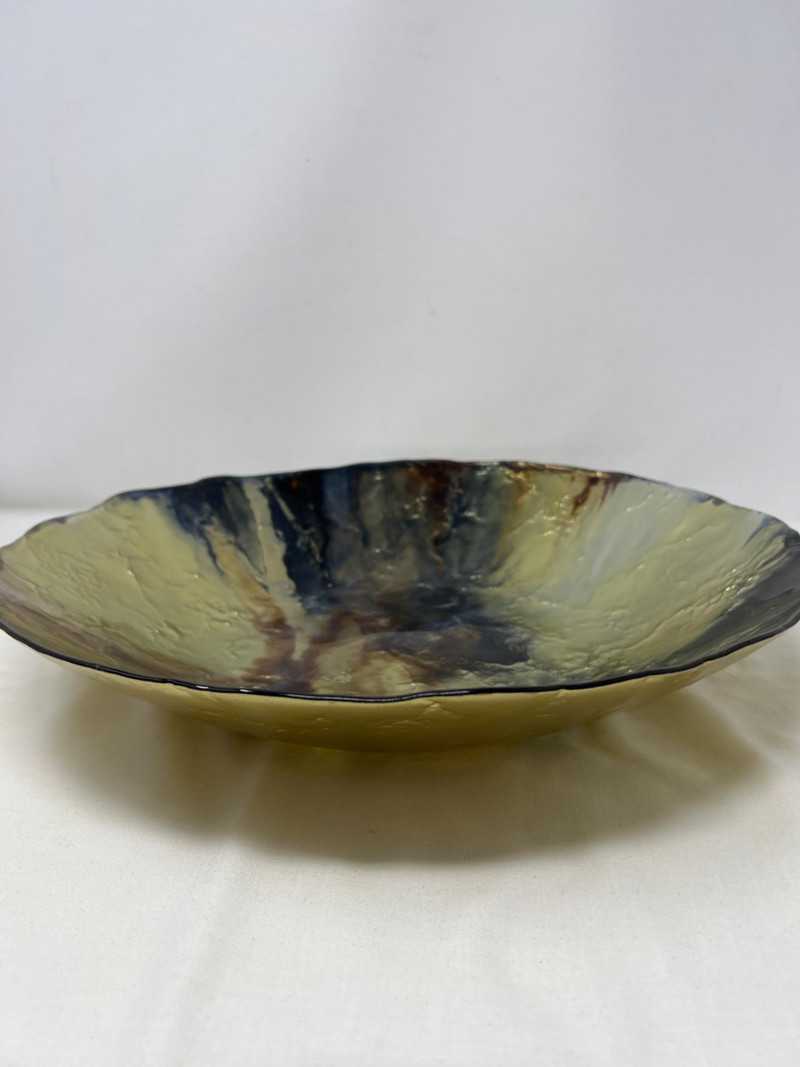 A sculptural glass bowl with a soft swirlform silhouette and subtle translucence. Its fluid shape evokes mid-century elegance and quiet movement—perfect as a centerpiece, catchall, or shelf accent in a modern vintage home. This piece invites lightplay and layered styling, offering a touch of curated calm to any interior. Ideal for collectors who favor form, simplicity, and timeless design.