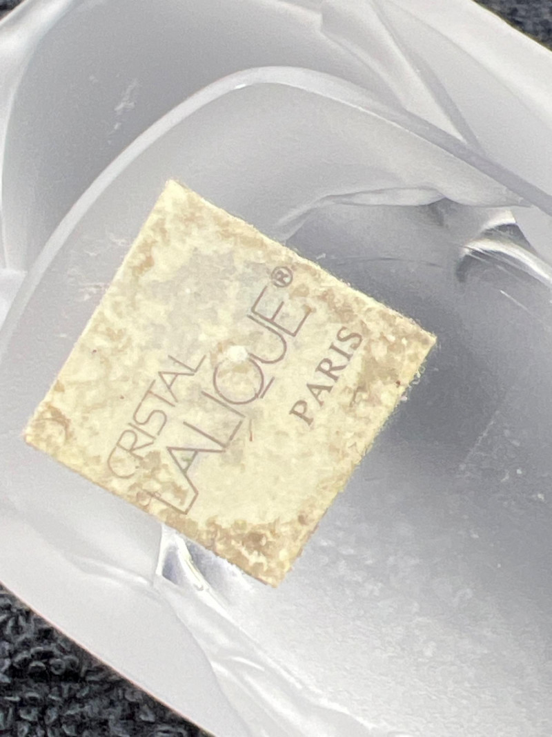 A graceful Cristal Lalique bird figurine, crafted in frosted and clear crystal with exquisite detail and fluid form. This piece captures the elegance of Lalique’s Paris studio, with a softly textured body and polished wings that shimmer in the light. Signed “Lalique France” on the base. A timeless collectible for lovers of fine glass, French design, or avian sculpture.