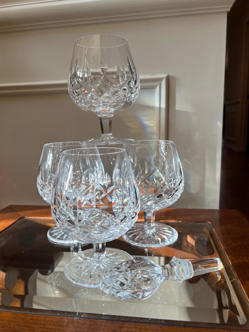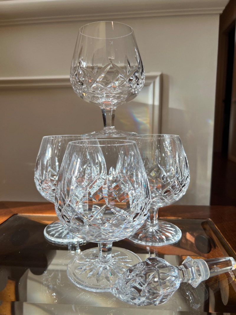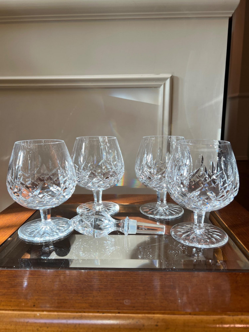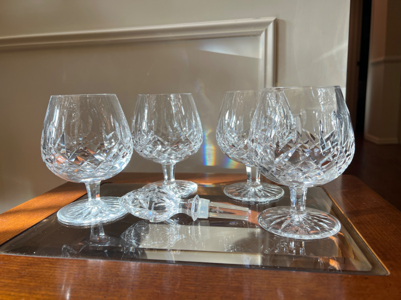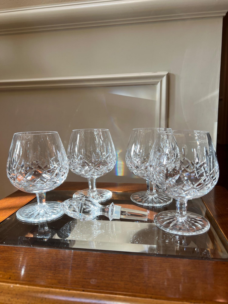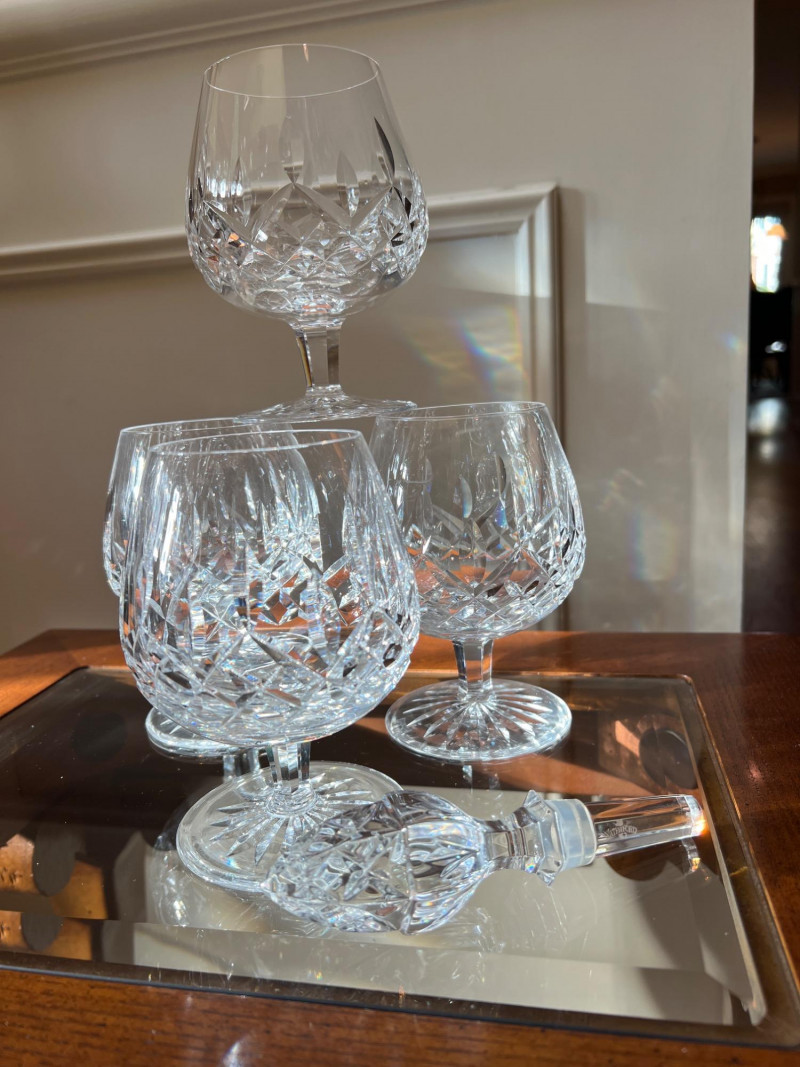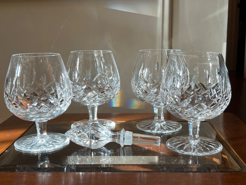 Lot # 78 - Waterford Lismore Brandy Glasses with Crystal Bottle Stopper