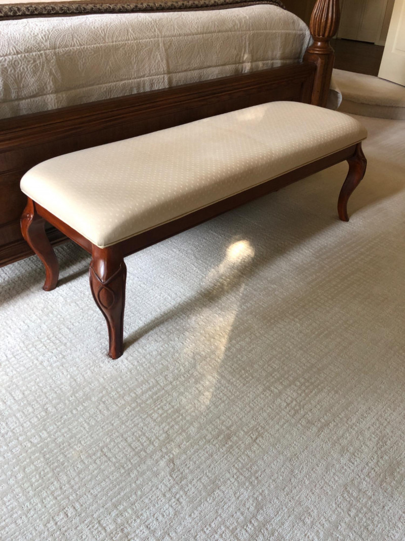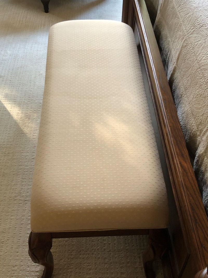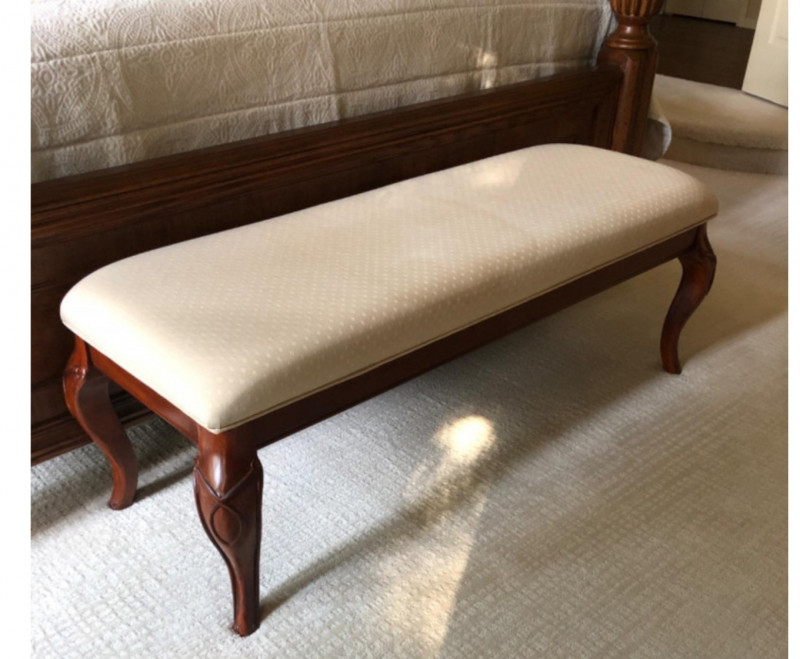 Lot # 94 - Classic Comfort: Upholstered Bench with Carved Cherry Frame