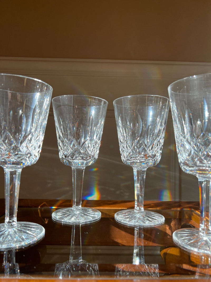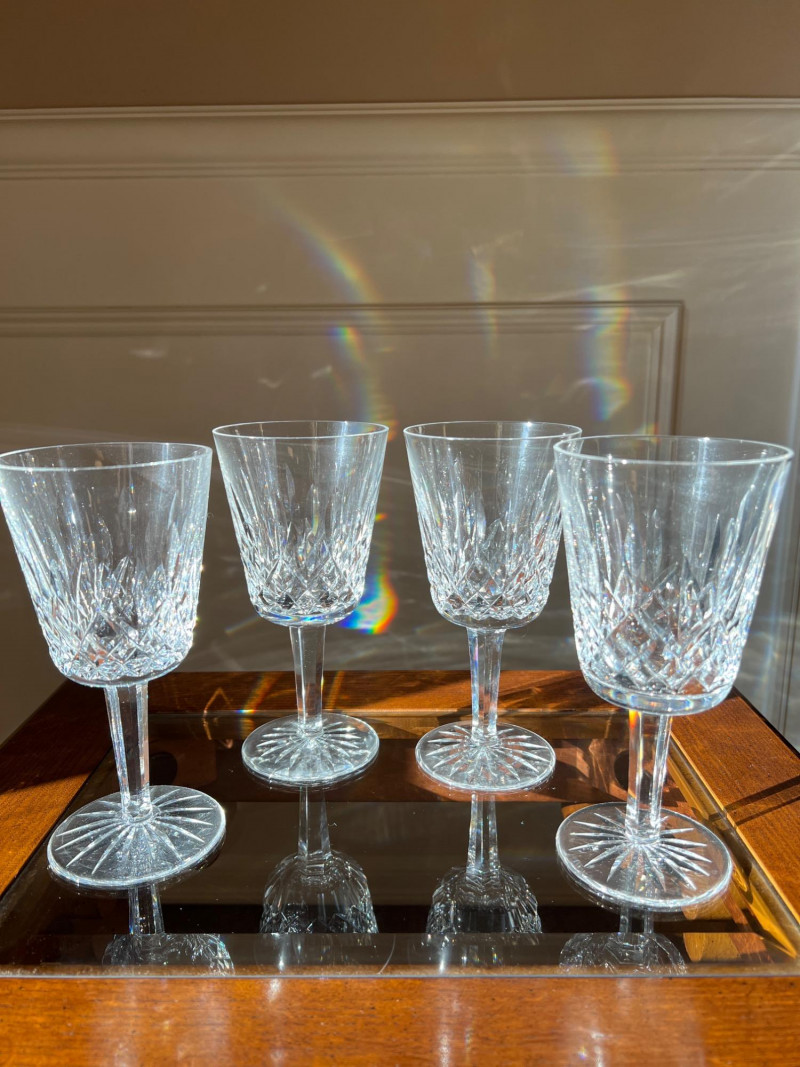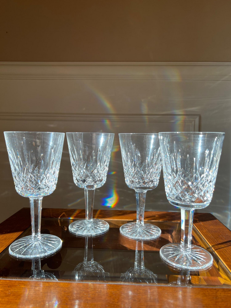 A timeless set of four Waterford Lismore goblets, each crafted in brilliant cut crystal with the iconic diamond and wedge pattern. Standing approximately 7" tall, these goblets reflect the elegance and craftsmanship that have defined Waterford since 1783. Perfect for formal entertaining or as a refined addition to a crystal collection, the Lismore pattern remains one of Waterford’s most beloved designs.