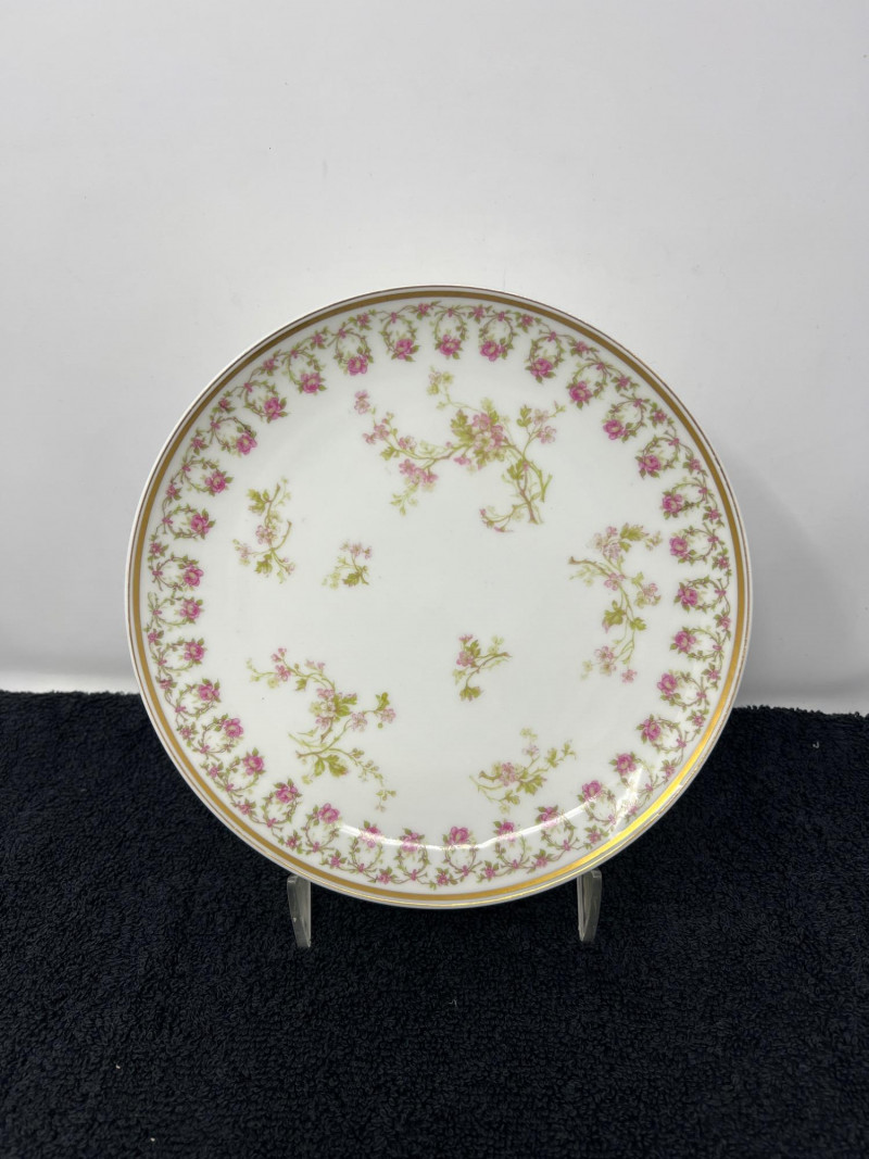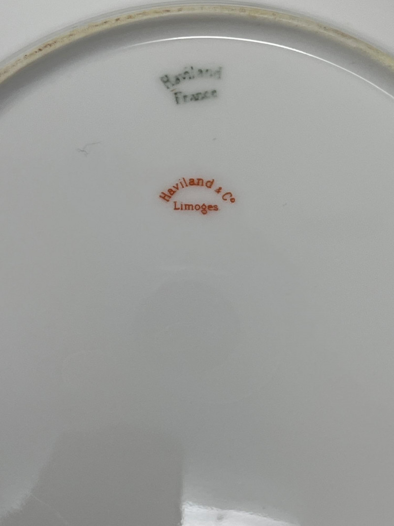 A graceful set of four Haviland France Limoges plates, each measuring approximately 7.5" in diameter. Known for their delicate porcelain and refined floral motifs, these plates offer timeless elegance for dessert service, bread and butter, or display. Their understated charm and classic French styling make them ideal for collectors or hosts seeking vintage tableware with heritage and beauty.