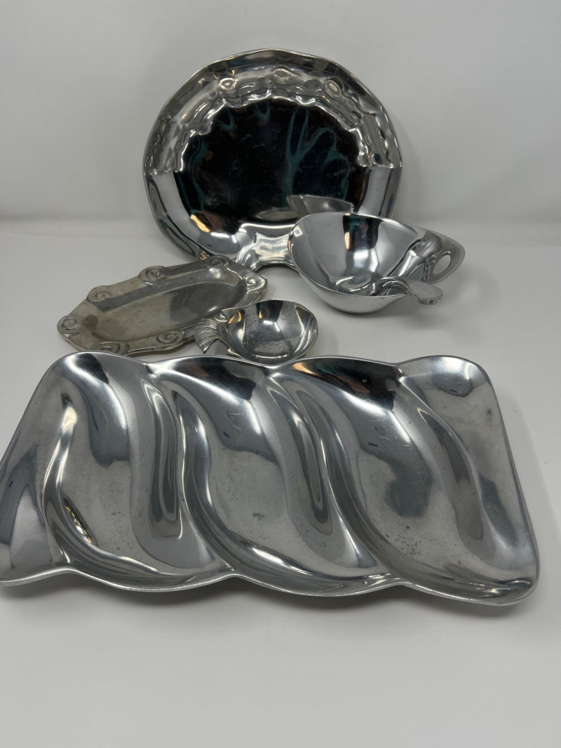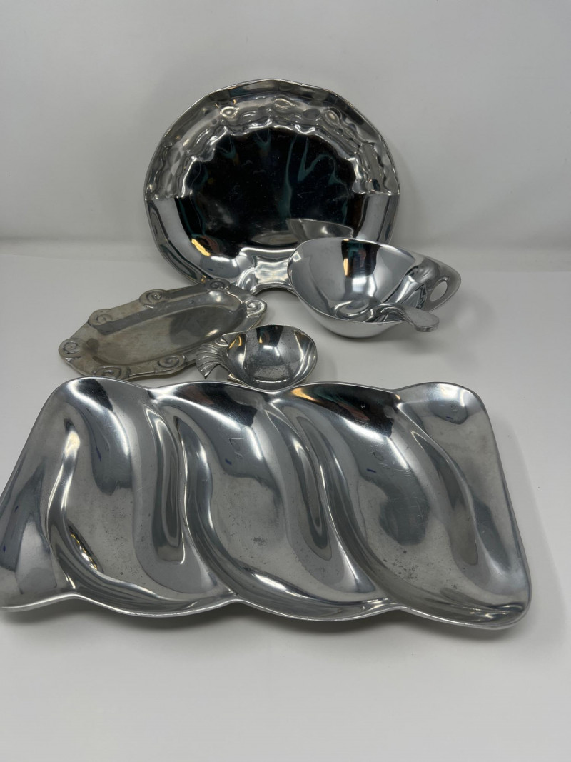 Lot # 130 - Mexican Pewterware – Assorted Serving & Decorative Pieces, 4" to 14"