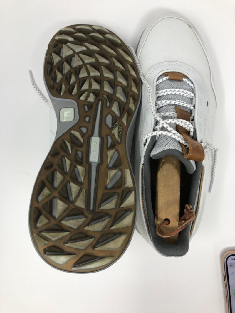 FootJoy Stratos men’s golf shoes in size 8.5. Designed for comfort and performance, these shoes feature premium materials and a modern silhouette. Only worn a few times, they offer excellent traction and cushioning for on-course stability. A great find for golfers seeking quality footwear with minimal wear.