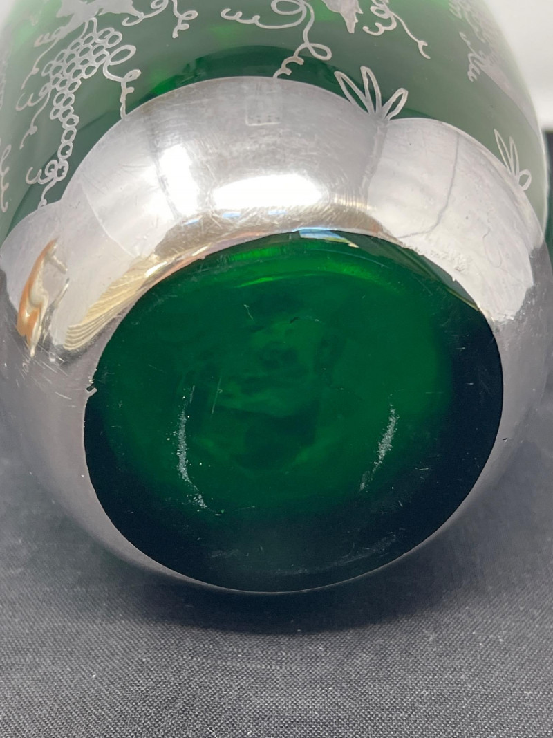 Lot # 5 - Murano Venetian Green Glass Decanter with Silver Overlay