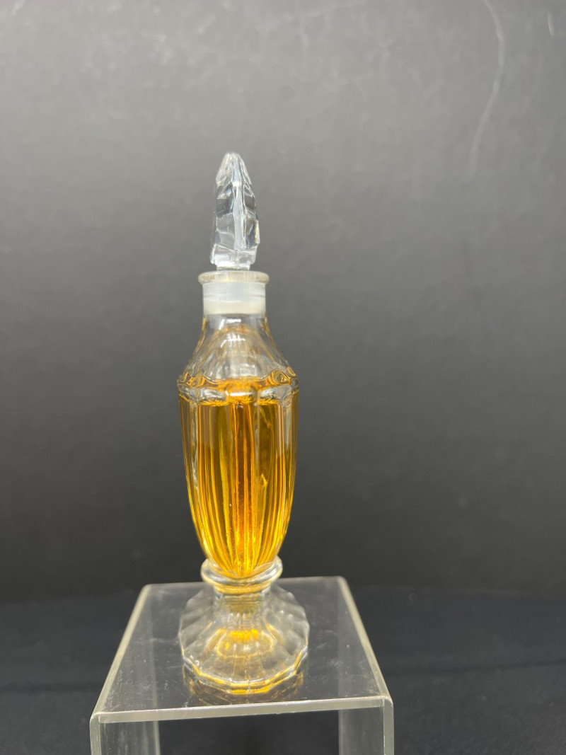 A timeless symbol of French luxury, this vintage Shalimar perfume bottle by Guerlain evokes the golden age of fragrance and design. First introduced in 1925, Shalimar was inspired by the legendary gardens of Shalimar in India and quickly became one of the most iconic scents of the 20th century. This bottle, with its classic fluted glass and elegant stopper, reflects Guerlain’s commitment to artistry in both scent and form. Whether retained for its collectible value or admired as a decorative object, it carries the quiet glamour of a bygone era. Highly collectible. Mostly full. Used.
