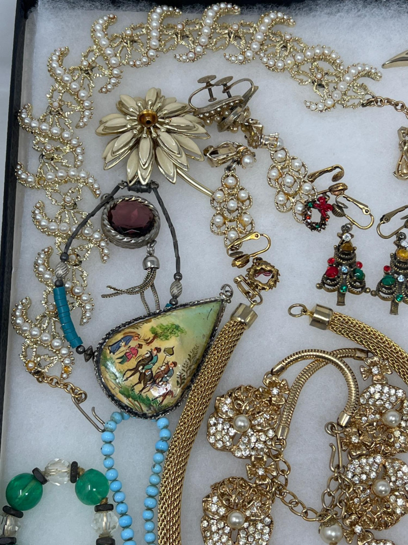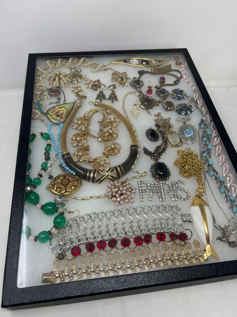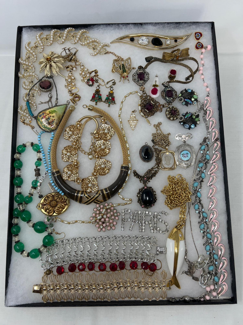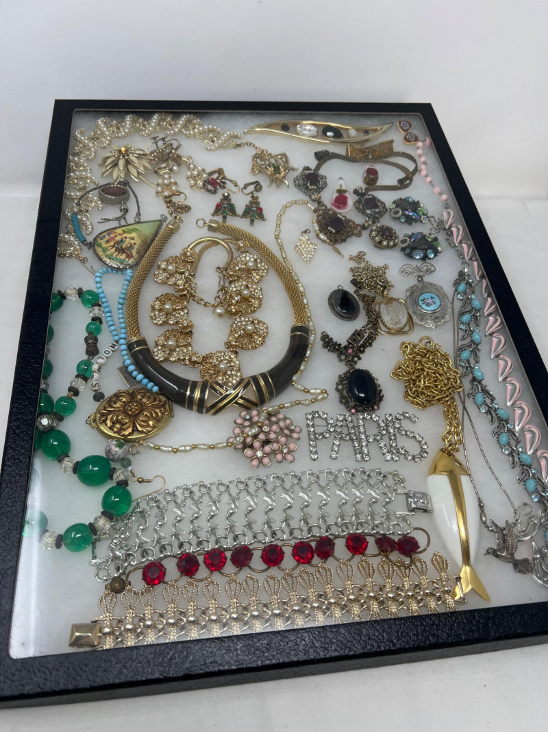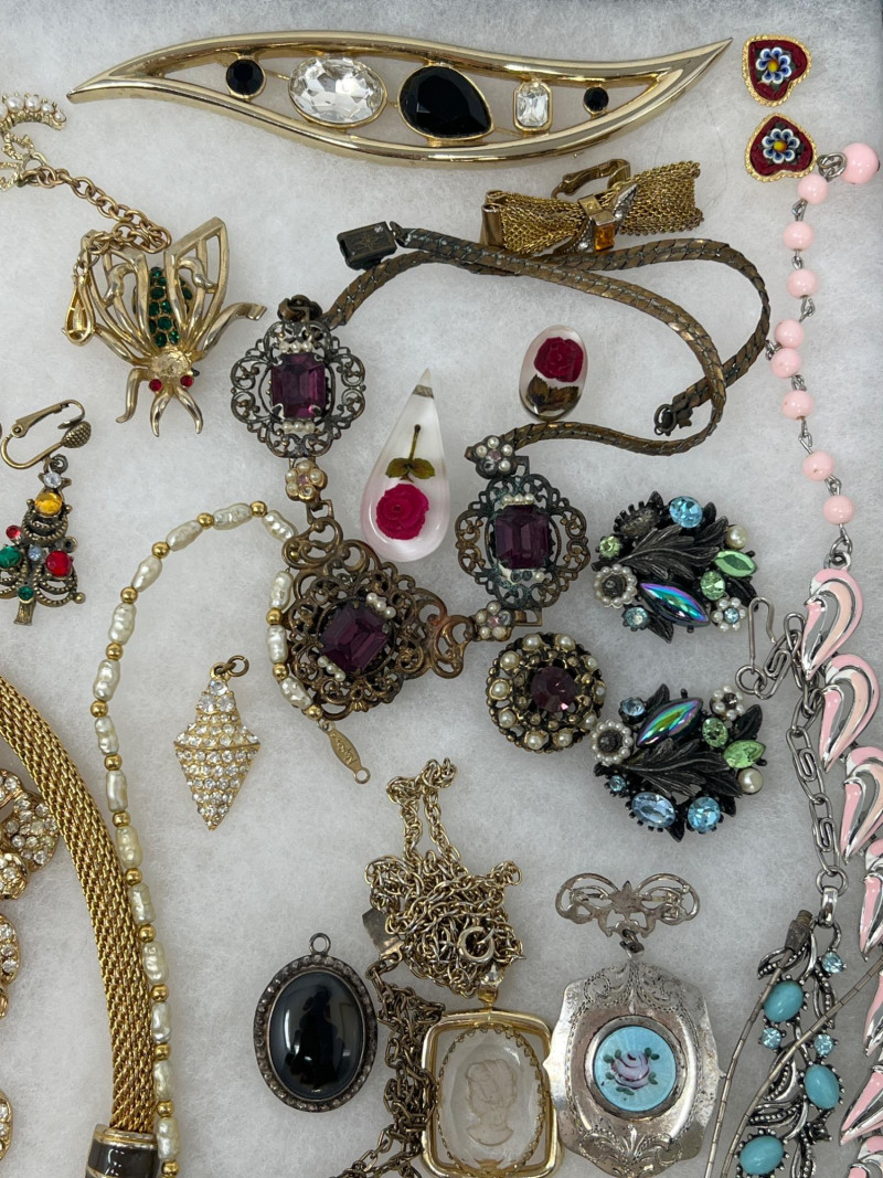 – Assorted vintage necklaces, earrings, brooches, and bracelets