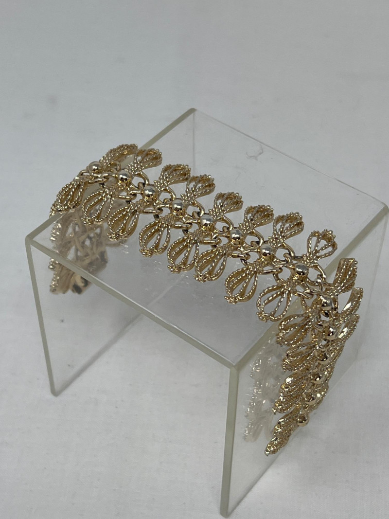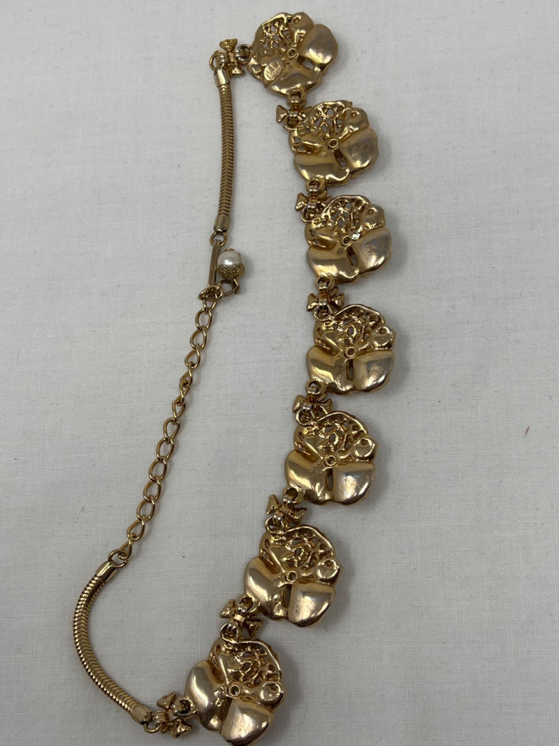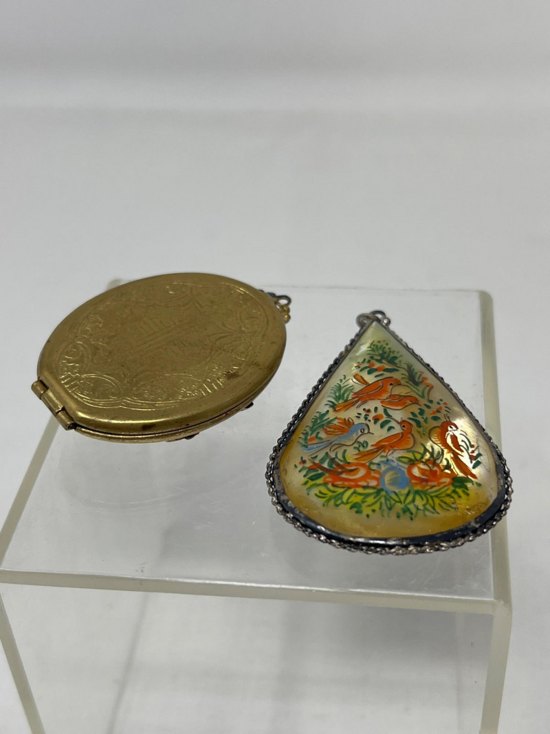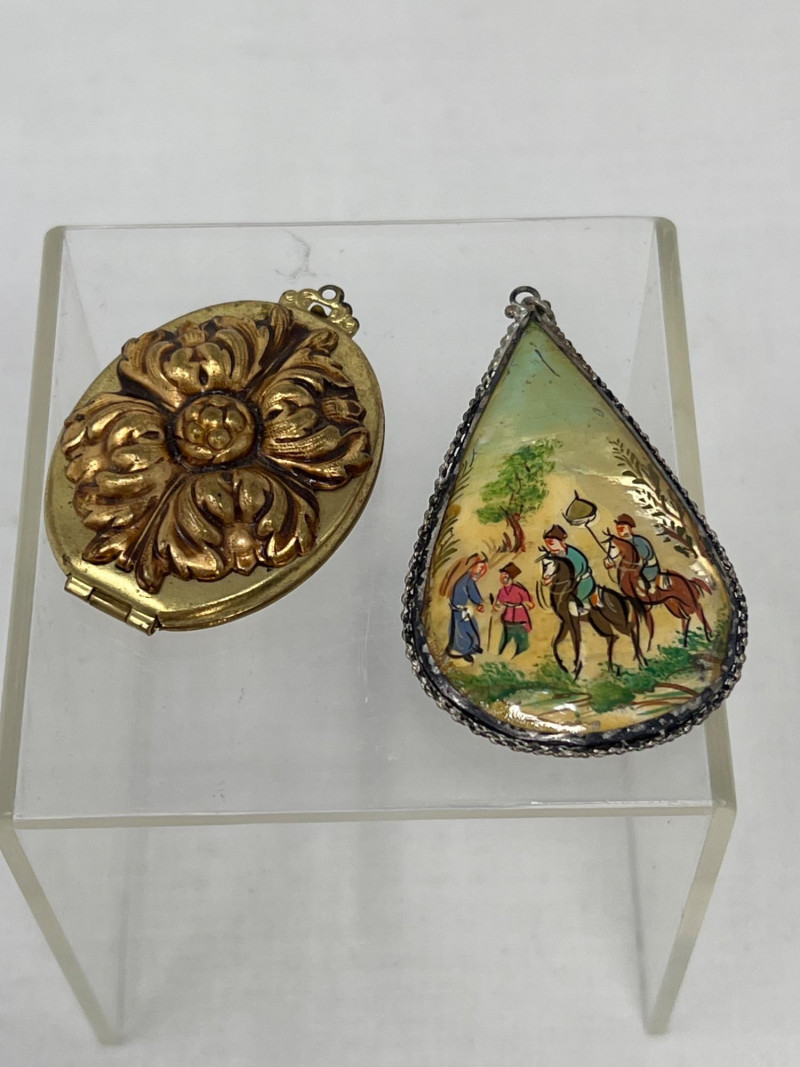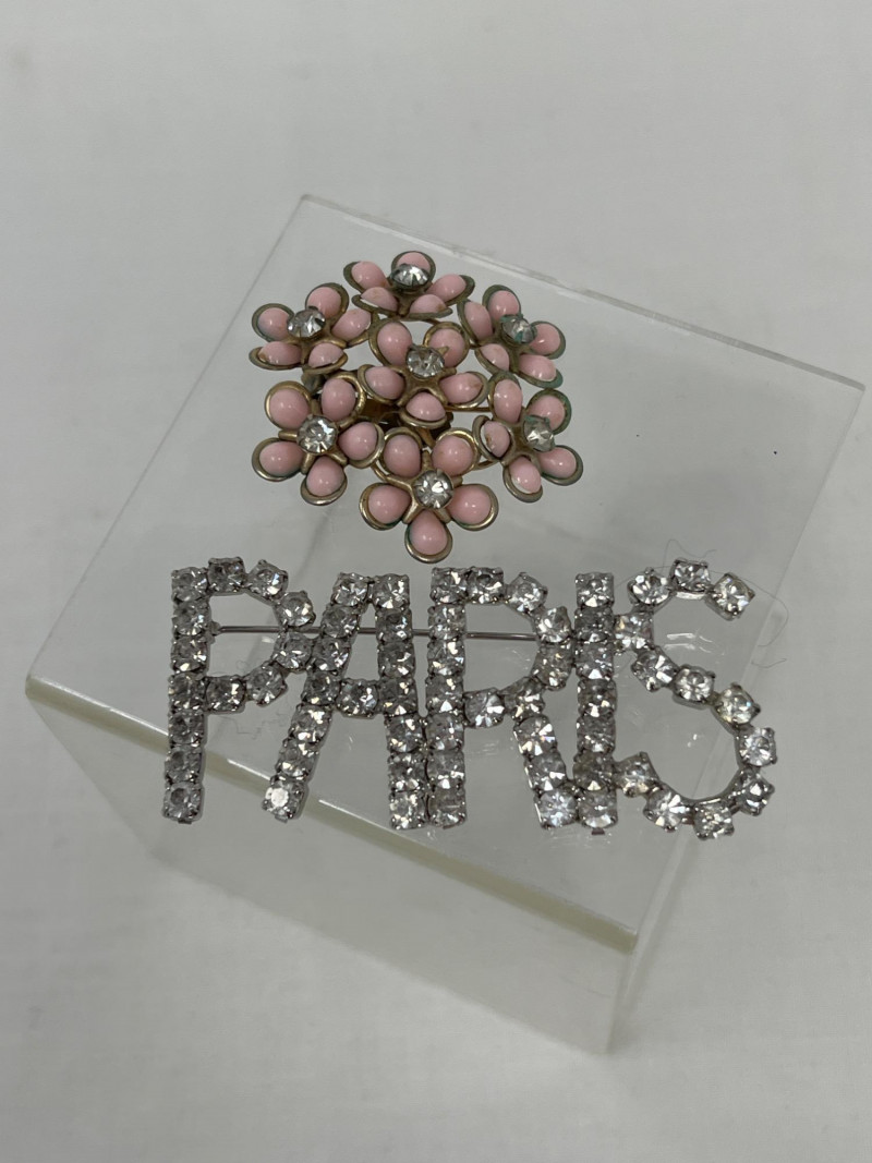 – Mixed materials: gold-tone, silver-tone, rhinestones, enamel, and more. Showcase included.