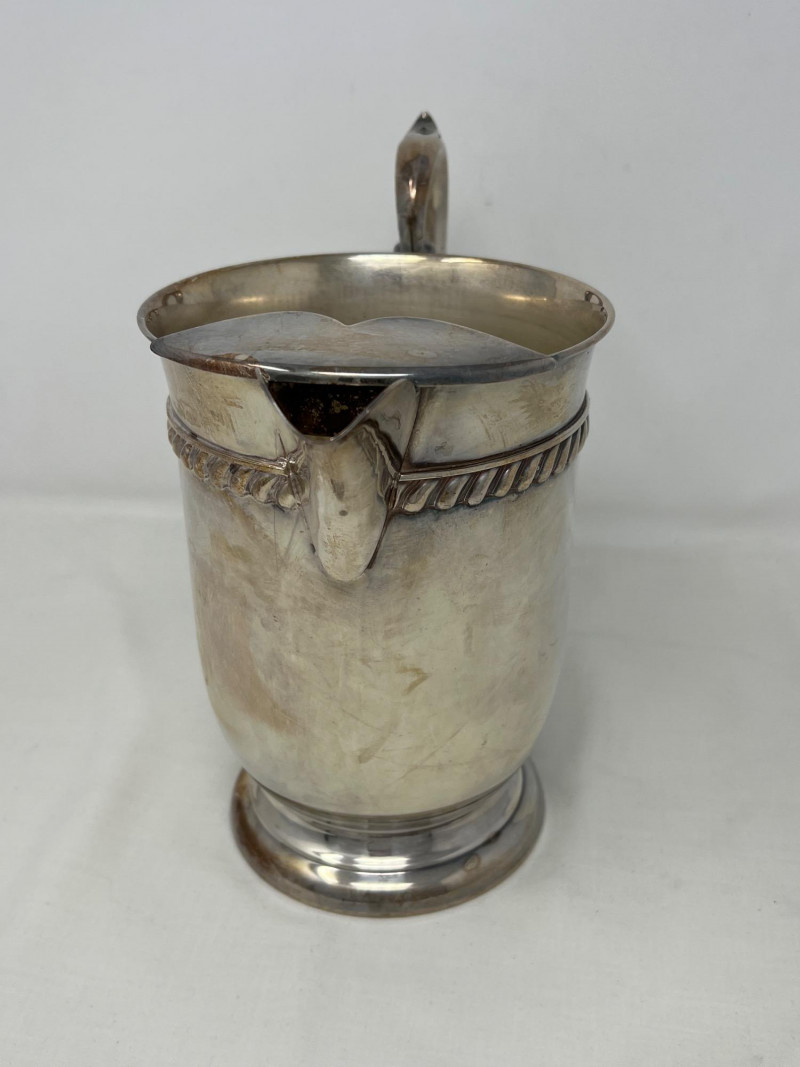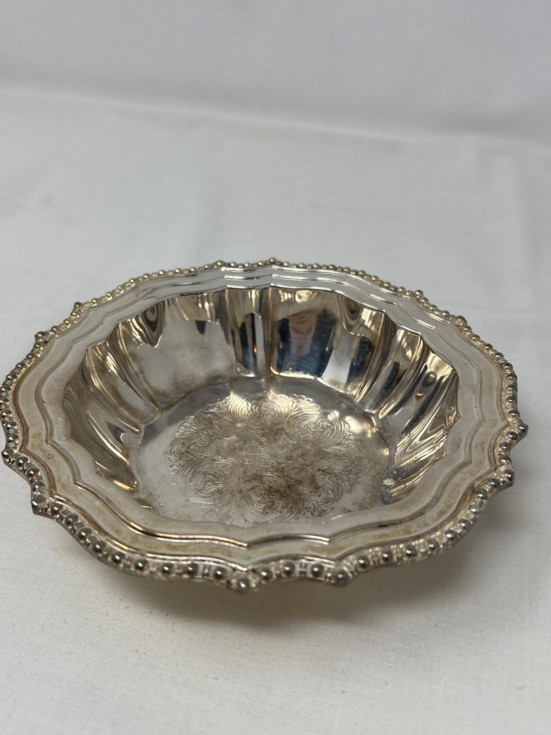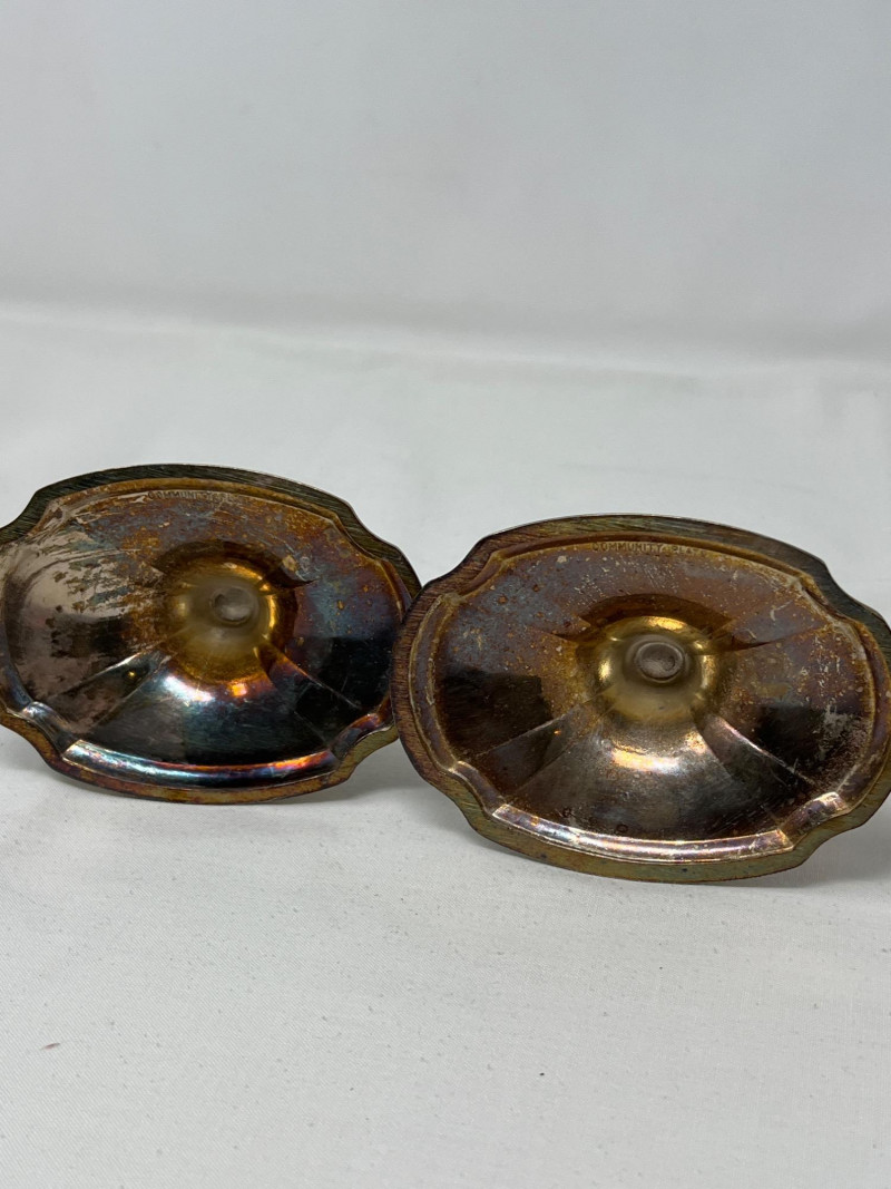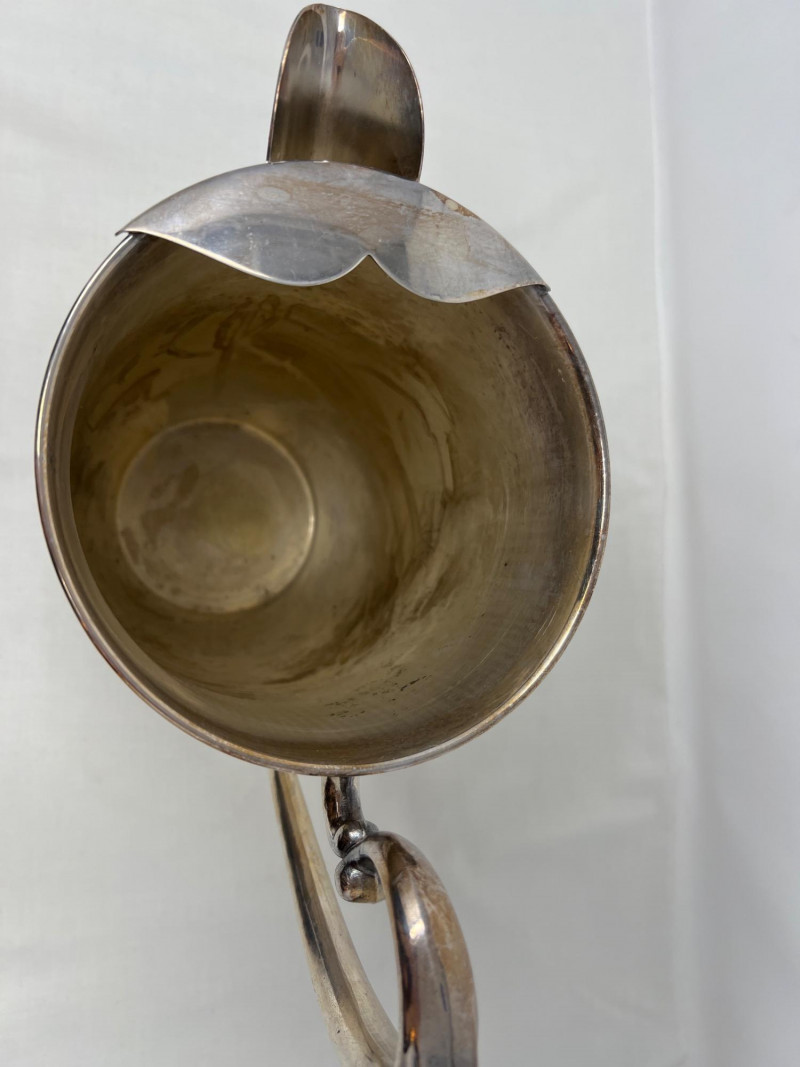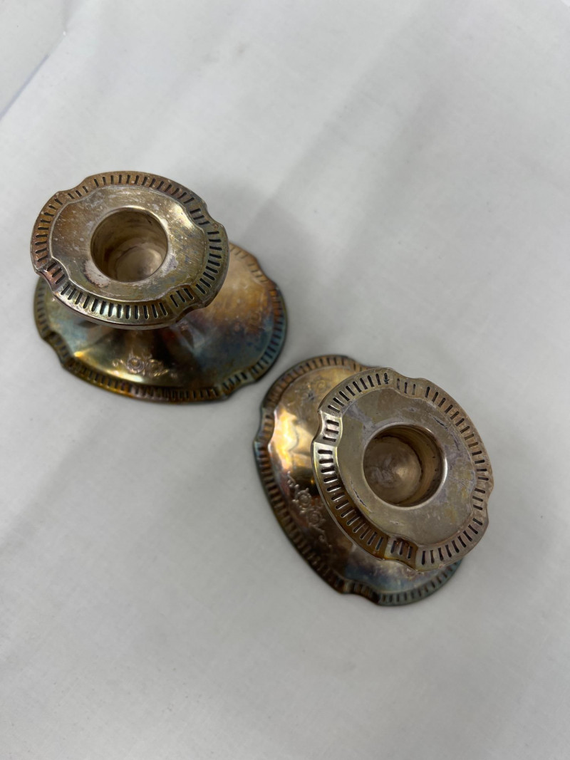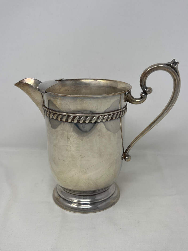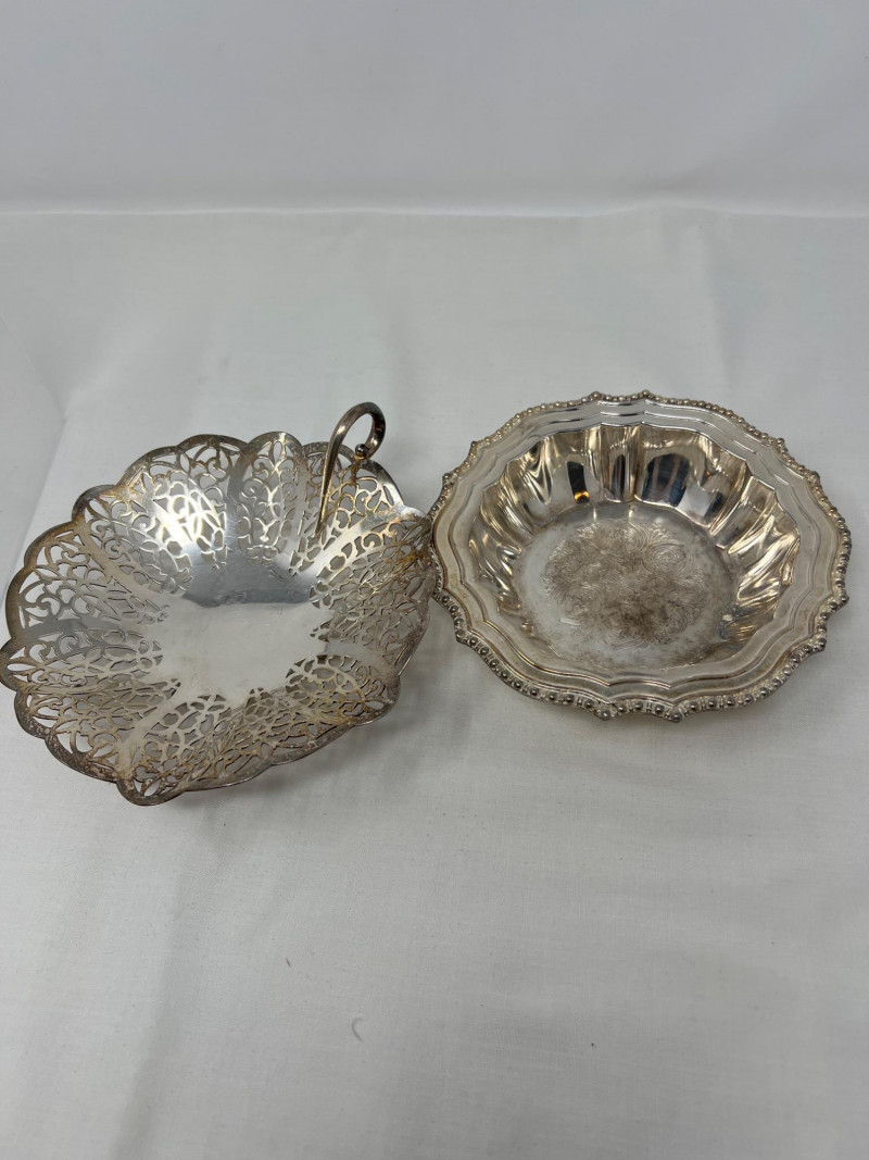 A graceful ensemble of silverplate serving pieces, this lot includes teapots, a pitcher, sugar bowl with lid, creamer, candlesticks, and small dishes—each with classic proportions and timeless charm. Whether displayed as part of a vintage collection or used for elegant entertaining, these pieces evoke the quiet rituals of hospitality and refinement. Pitcher: 8" H × 10" L × 5.5" W Teapots (2): 9.5" H × 11" L × 6" W Sugar with lid: 6.5" H × 5" W Creamer: 3.25" H × 5" W Candlesticks (2): 3" H Dishes (2): 5" diameter
