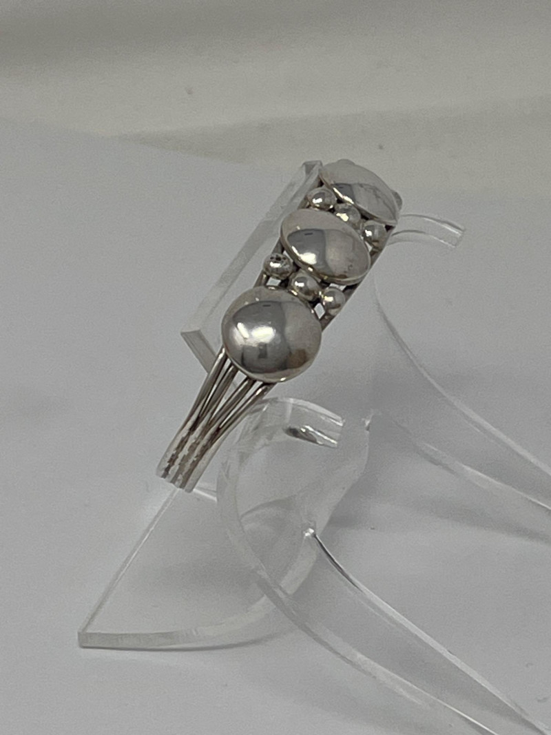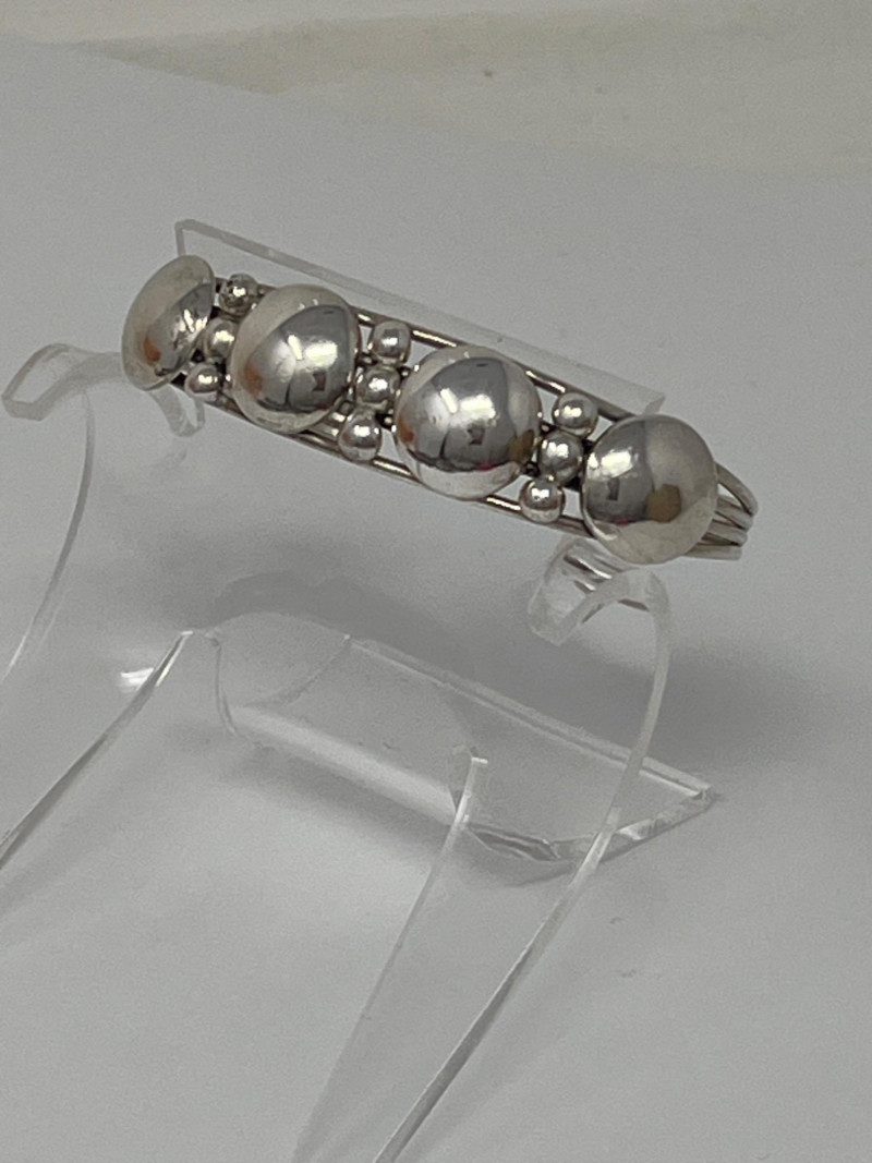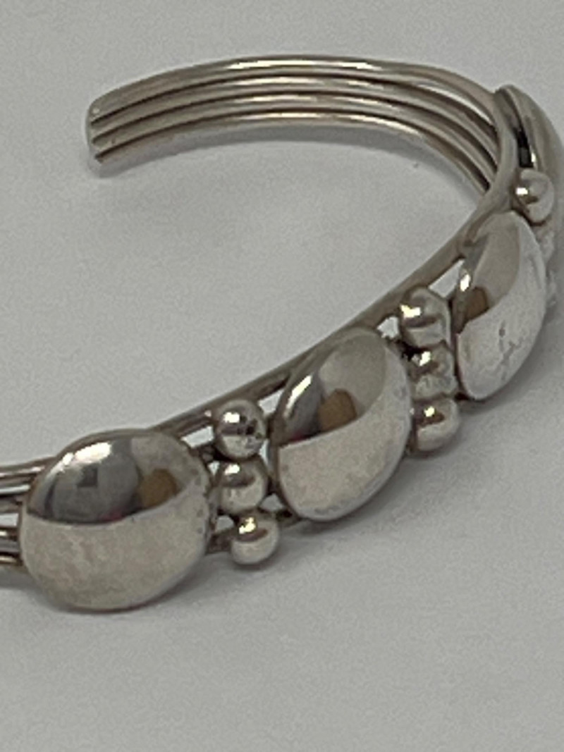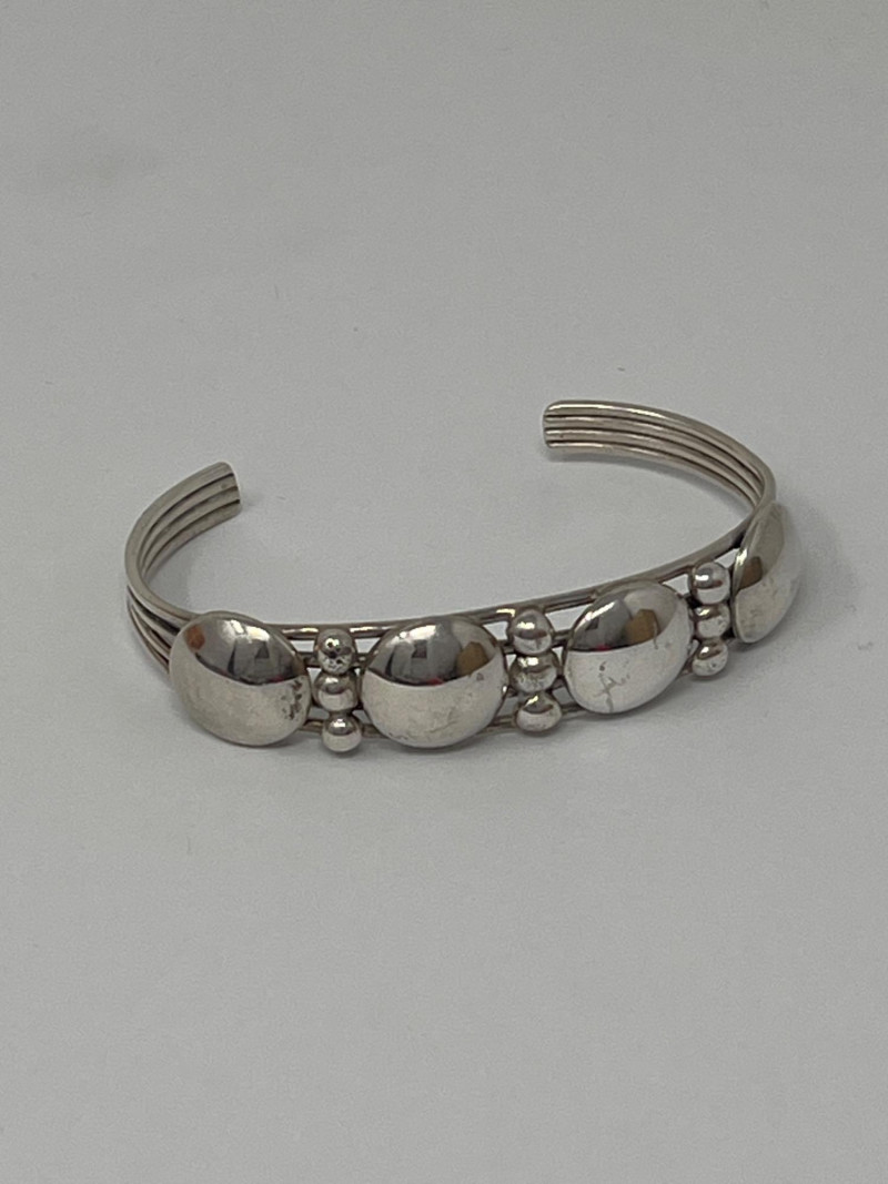 A minimalist treasure in sterling silver, this slip bracelet weighs 15 grams and offers timeless versatility. Whether worn alone for subtle elegance or layered with other pieces, its clean lines and classic form make it a staple for collectors and everyday wearers alike. Crafted with care and designed to endure, this piece reflects the quiet sophistication of estate jewelry—where beauty lies in restraint and legacy.