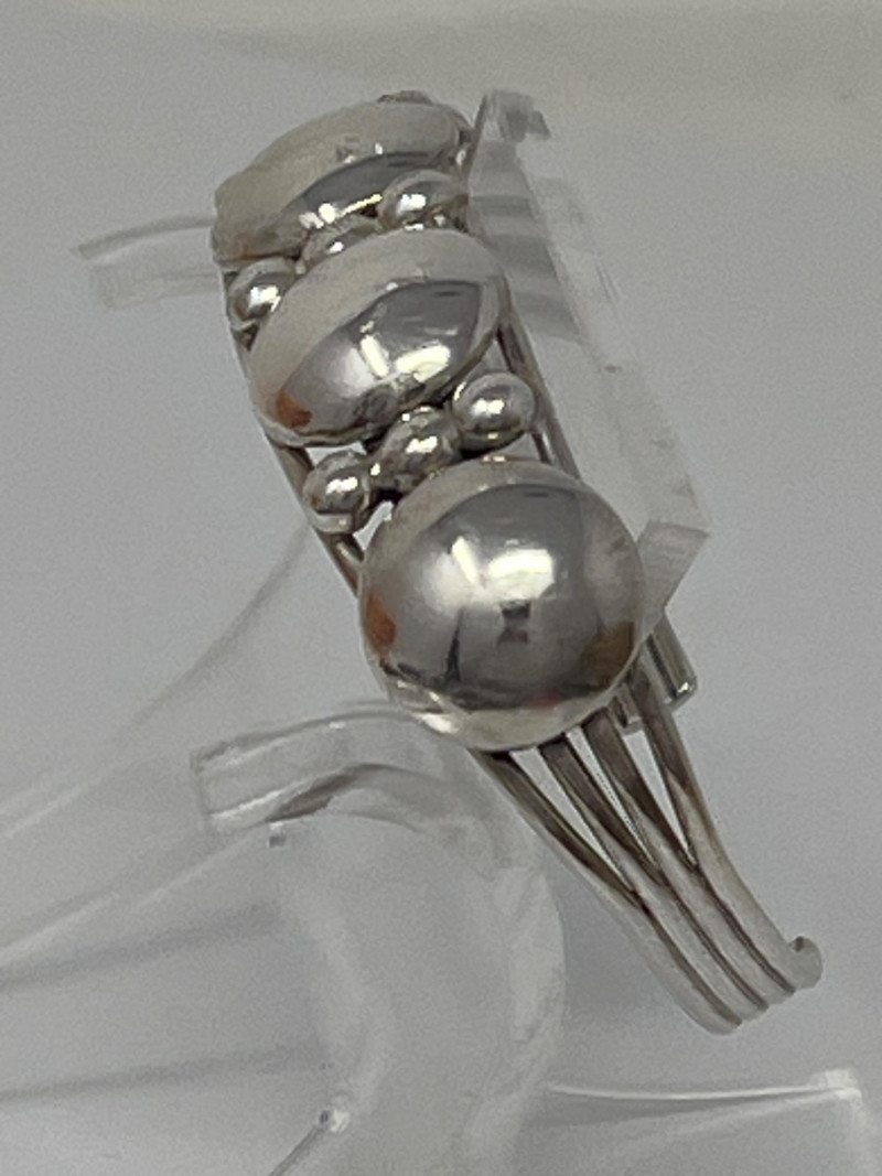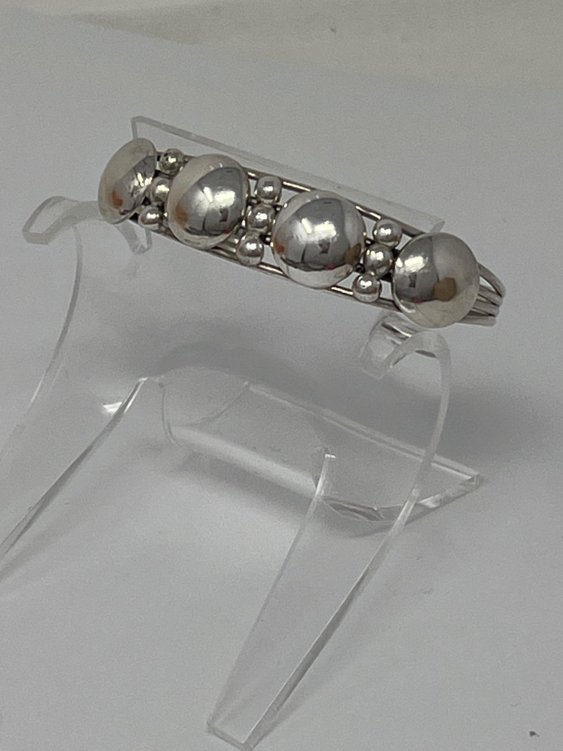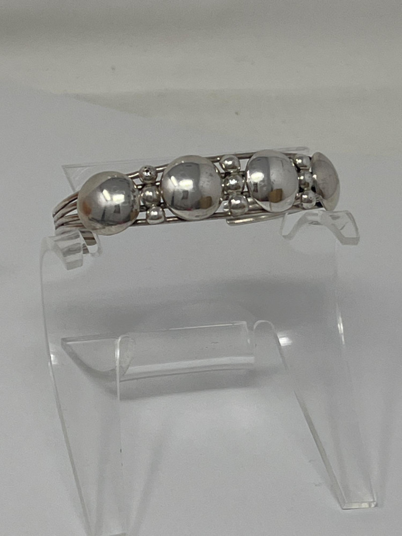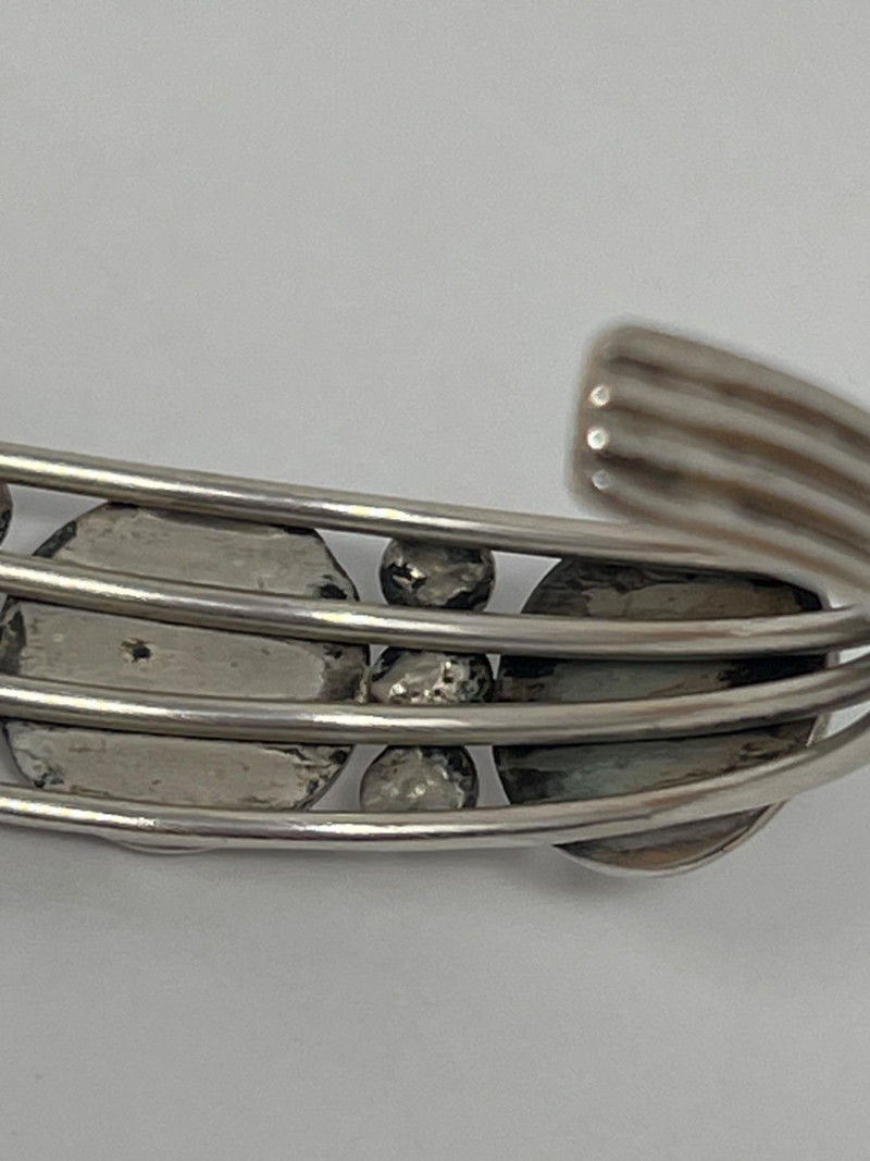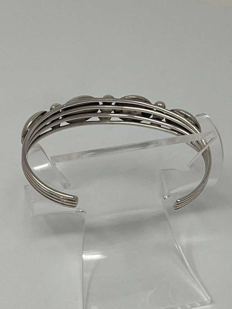 A minimalist treasure in sterling silver, this slip bracelet weighs 15 grams and offers timeless versatility. Whether worn alone for subtle elegance or layered with other pieces, its clean lines and classic form make it a staple for collectors and everyday wearers alike. Crafted with care and designed to endure, this piece reflects the quiet sophistication of estate jewelry—where beauty lies in restraint and legacy.