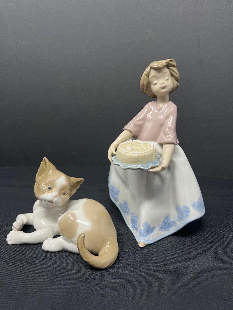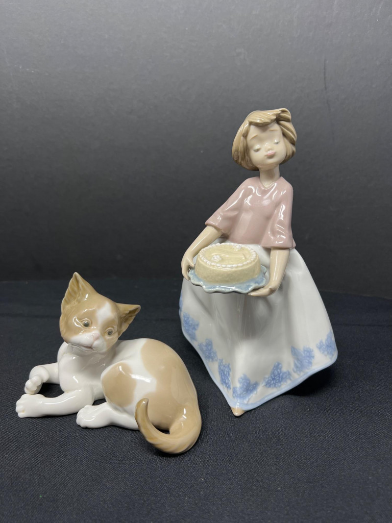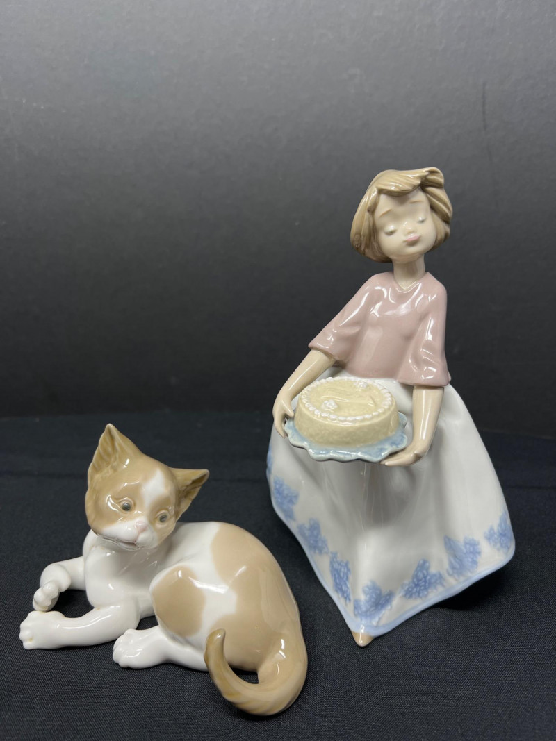 Lot # 34 - Handmade in Spain – NAO Lladro Birthday Girl & Daisa Surprised Cat