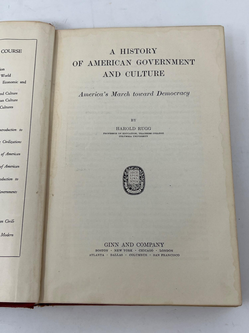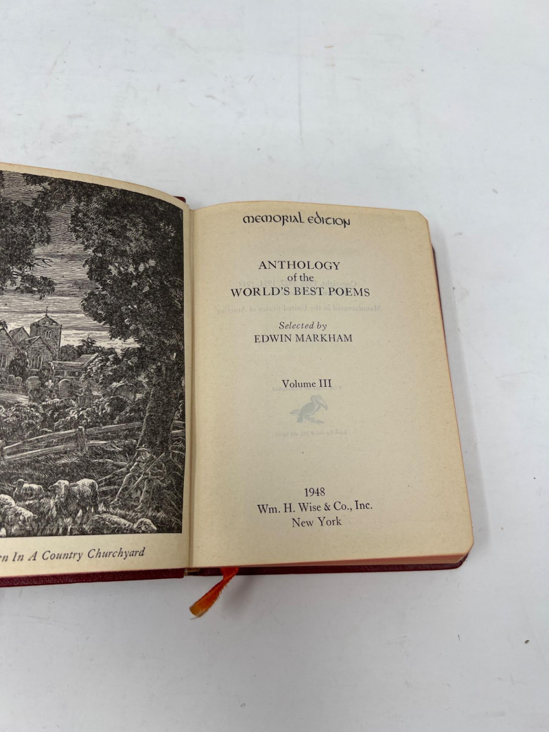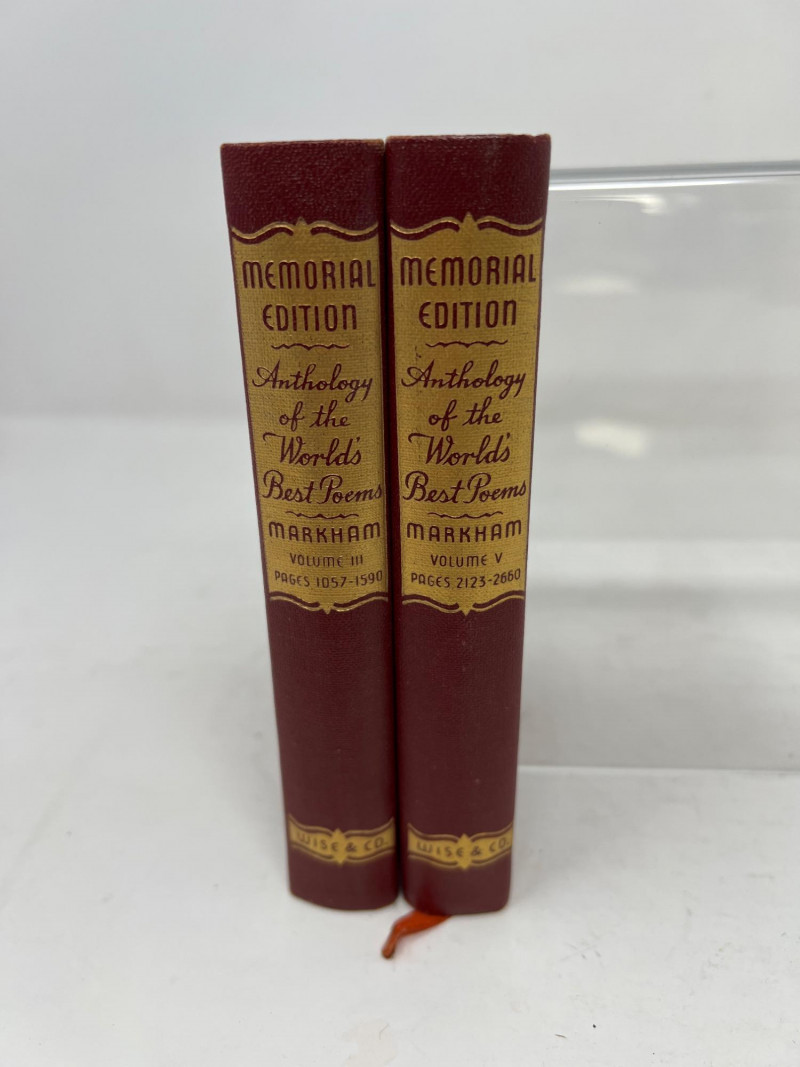 A thoughtful selection of vintage volumes blending civic insight with poetic beauty. This lot includes A History of American Government and Culture by Harold Rugg, a comprehensive exploration of the evolution of American democracy and its cultural foundations. Accompanying it are Volumes III (3) and V (5) of Anthology of the World’s Best Poems, compiled by Edwin Markham, featuring timeless verses from global literary giants. Together, these books offer a rich tapestry of historical reflection and lyrical expression—ideal for collectors, educators, or those curating a meaningful shelf. Poets include: Alexander Pope, John Milton, Robert Burns, William Blake, Thomas Gray, Percy Shelley, Lord Byron, Shakespeare, Whitman, Longfellow, Keats, Lowell, Edgar Allan Poe - to name a few.