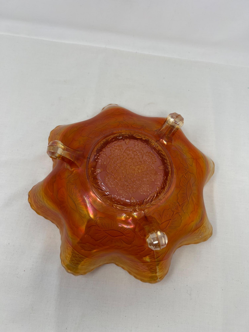 Lot # 131 - Marigold Two Flowers Ruffled Three Footed Bowl