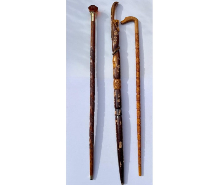 Lot # 61 - Trio of Hand-Carved Walking Sticks – Folk Art from Jamaica & Beyond