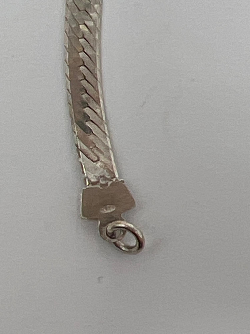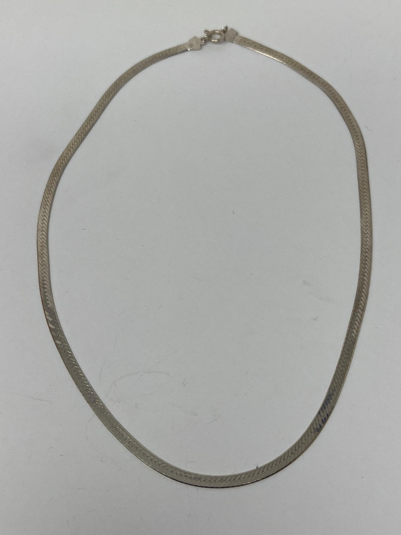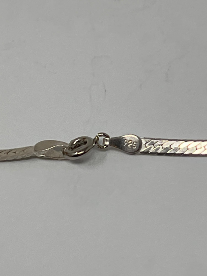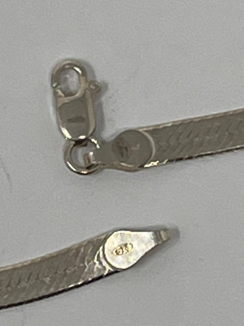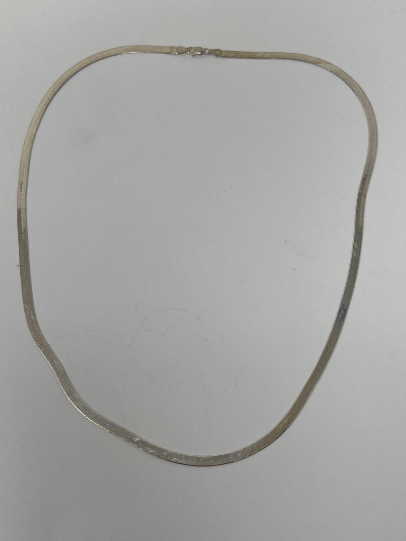 A graceful trio of sterling silver herringbone chain necklaces, each offering a distinct length and width for versatile styling. Crafted in 925 silver, these chains shimmer with fluid movement and minimalist sophistication. Whether layered together or worn individually, they evoke timeless elegance and quiet luxury. Marked 925 Sterling Silver Styles: Herringbone chain Lengths & Widths: 16" × 3mm 22" × 4mm 30" × 3mm Total Weight: 9 grams
