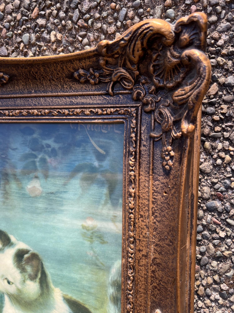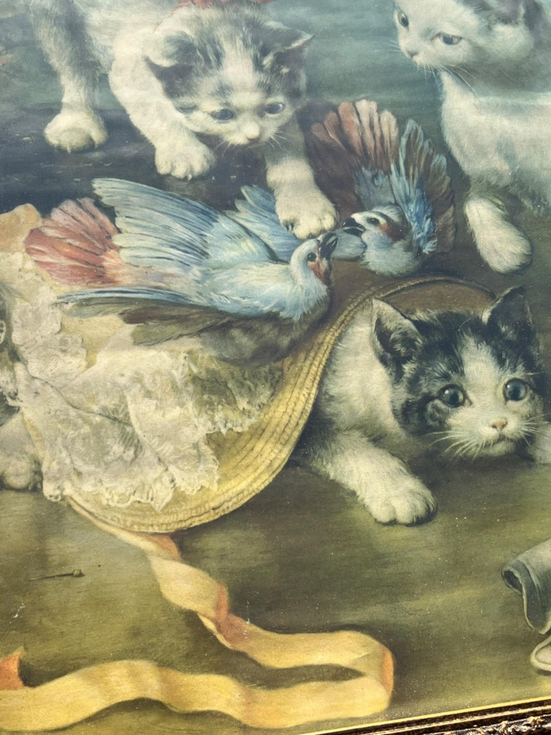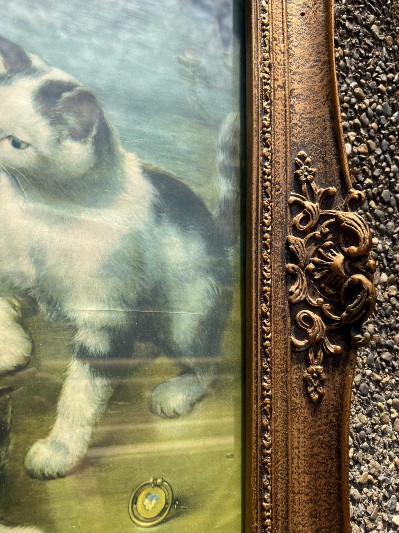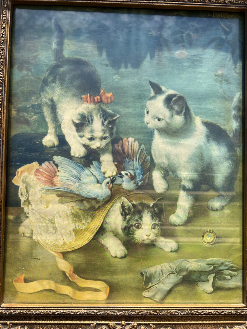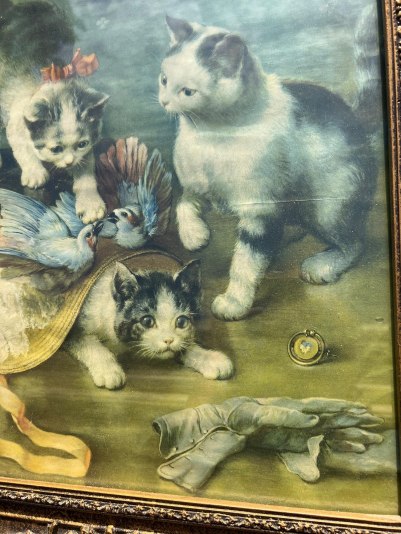 Lot # 84 - C Reichert Mischievous Kittens Vintage Lithograph-Ornate Antique Frame