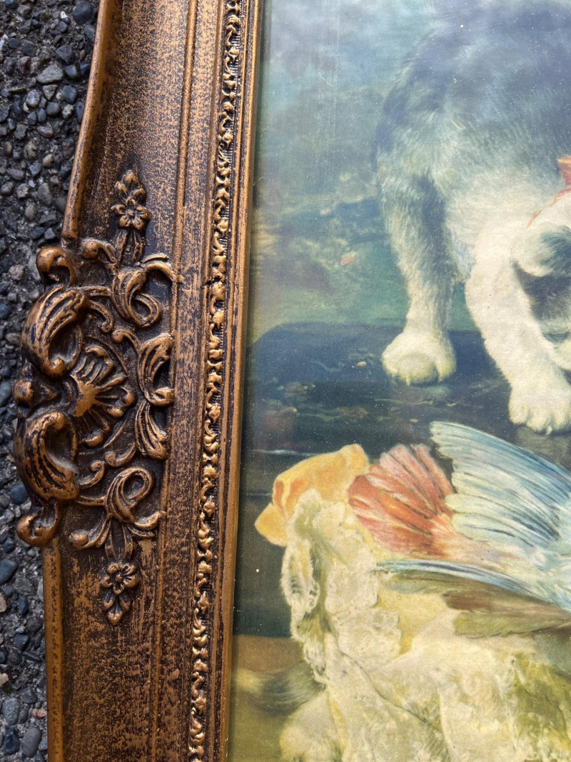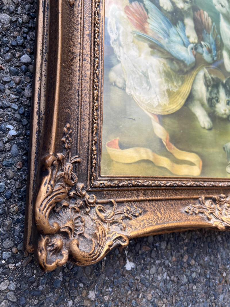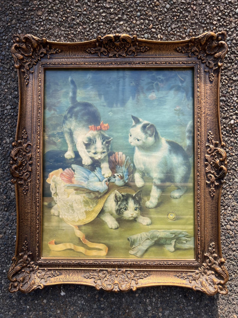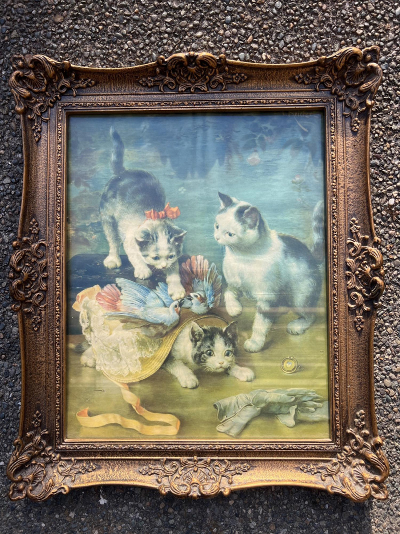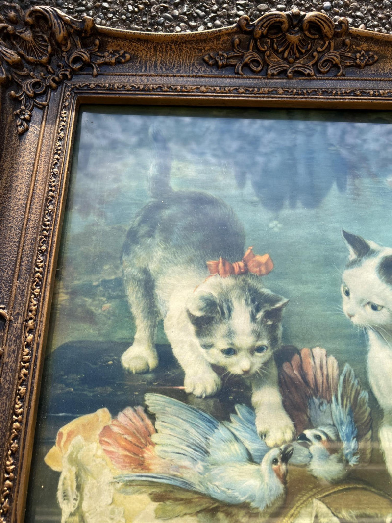 Lot # 84 - C Reichert Mischievous Kittens Vintage Lithograph-Ornate Antique Frame