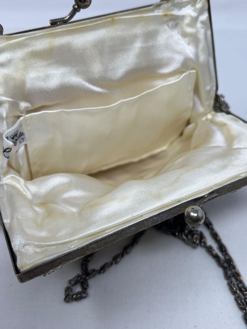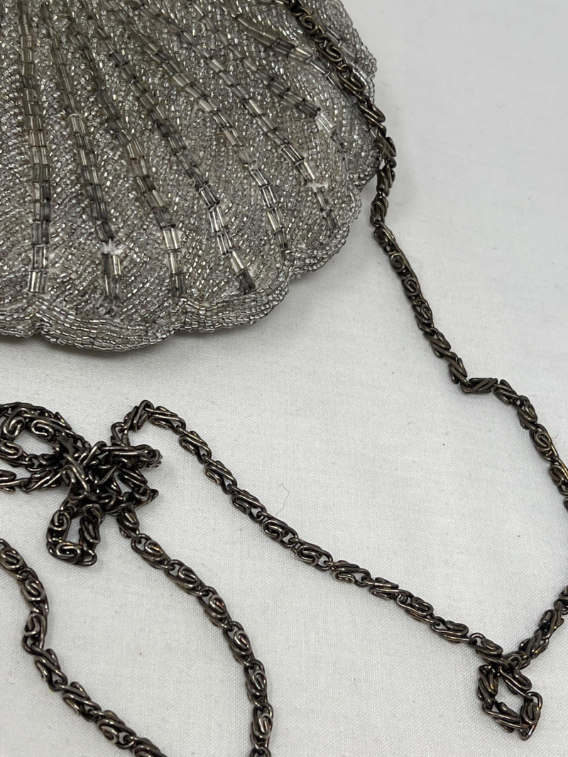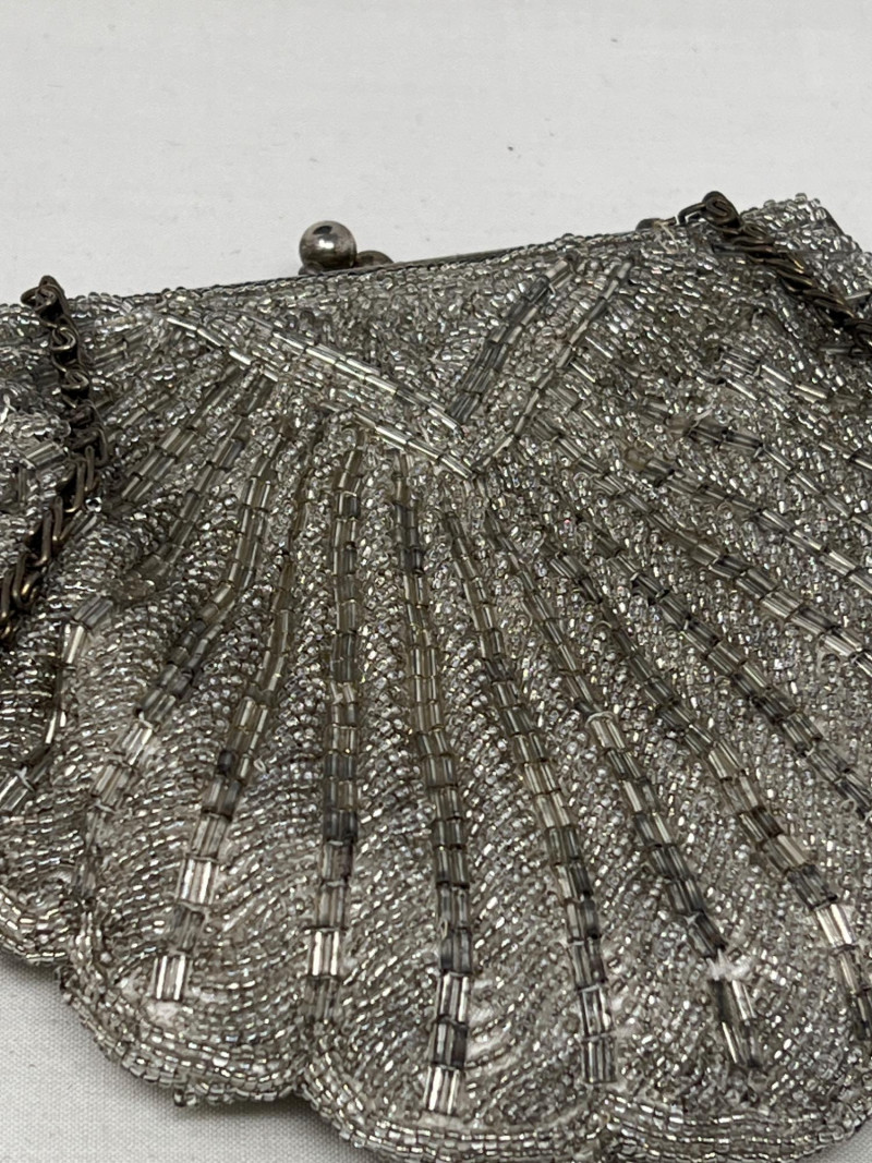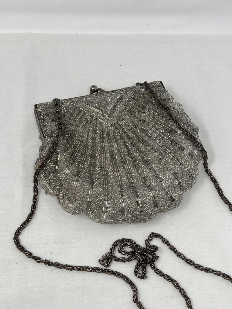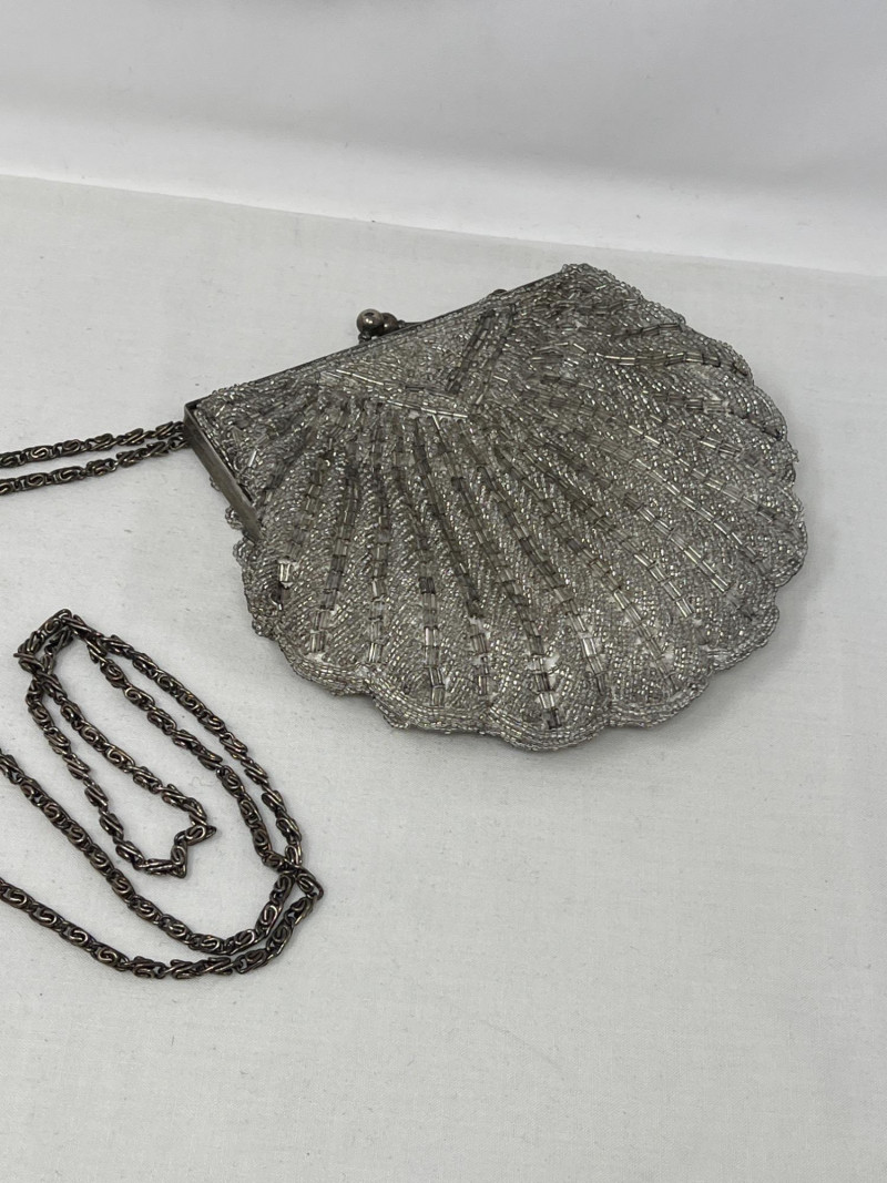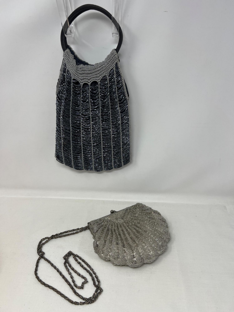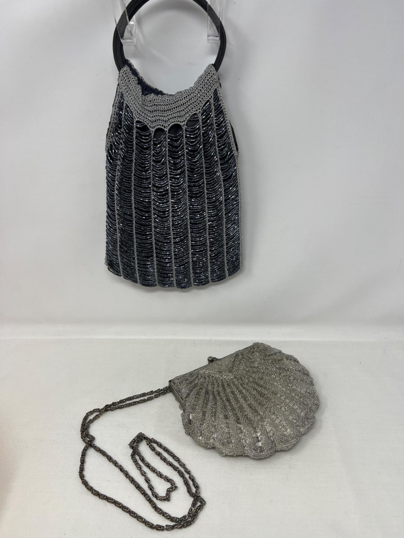 A pair of vintage beaded handbags that shimmer with timeless elegance: Suzy Smith Black Bag – 9" x 7", sleek and structured with intricate beadwork. Suzy Smith is a United Kingdom based company that operated particularly in the 1980s and 1990s. The brand associated with classic British designs including beading. Estimated value: $150–180 La Regale Silver-Grey Bag – 6" x 6", soft silhouette with radiant silver-grey beads. La Regale is a New York based family-owned company since 1977. There beaded clutches are made with intricate detailing and are produced in Asia. There designs are intentional to blend vintage charm with contemporary elegance. Estimated value: $40-75 Perfect for collectors of vintage accessories or those drawn to the glamour of mid-century eveningwear. These pieces whisper of candlelit dinners, velvet gloves, and quiet sophistication.