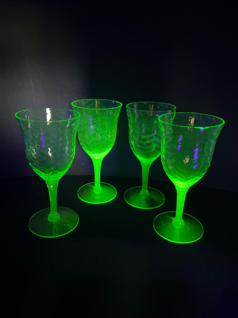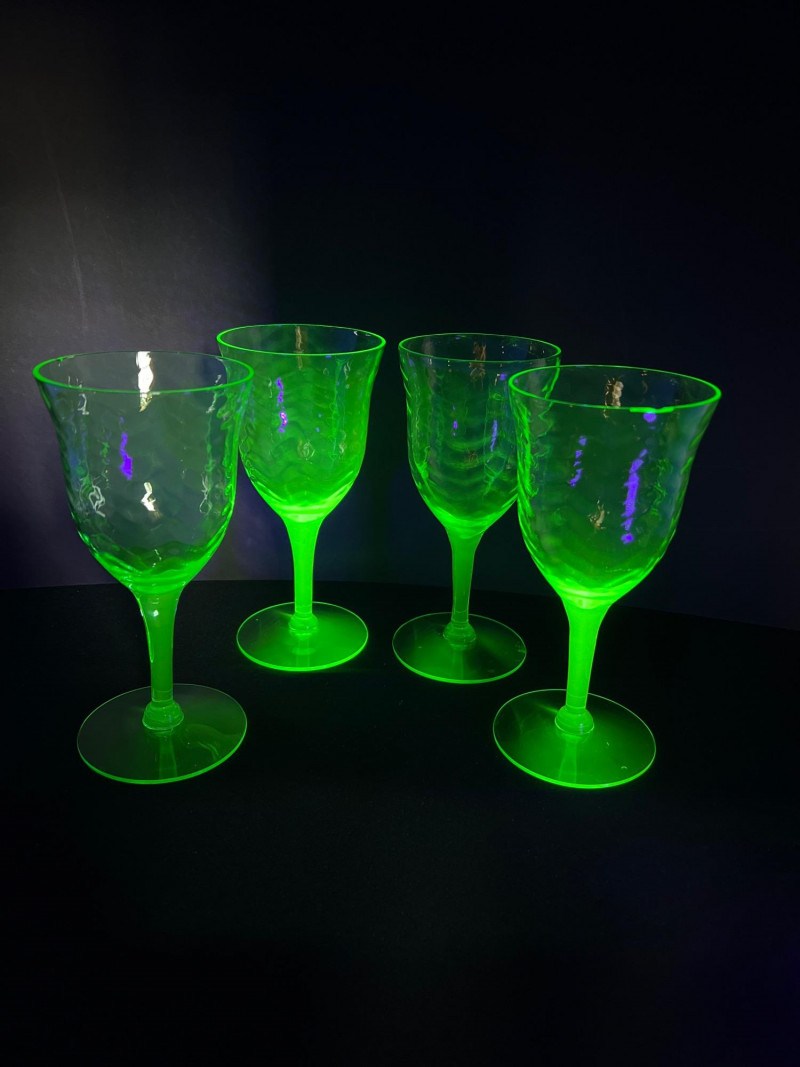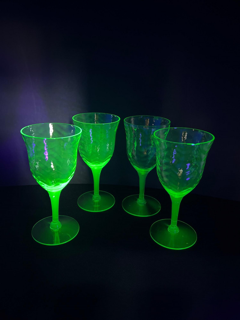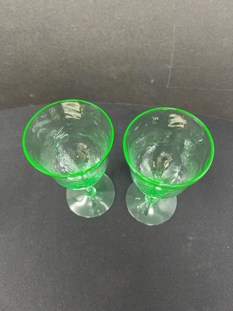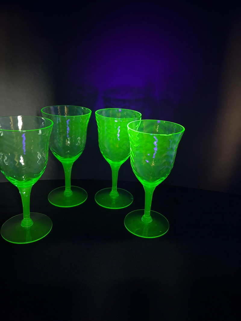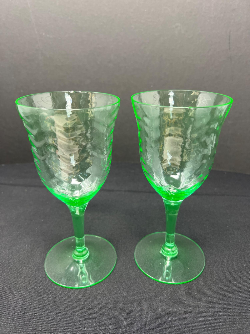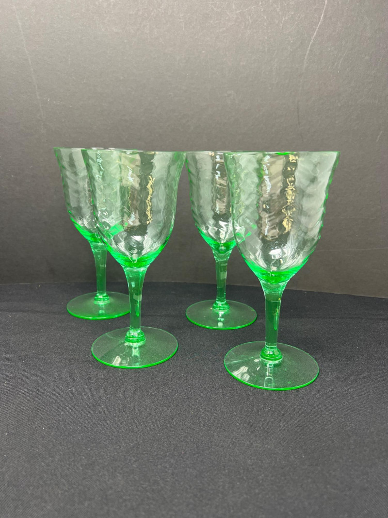 Lot # 111 - Rare Pine Green Herringbone Optic Goblets – Set of 4 (READ)