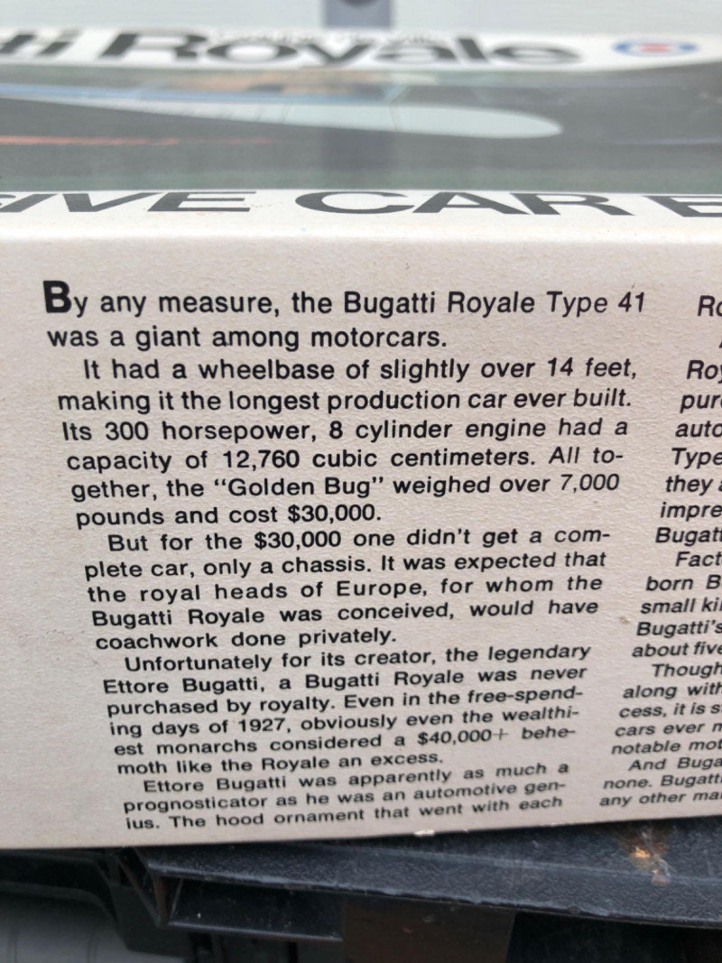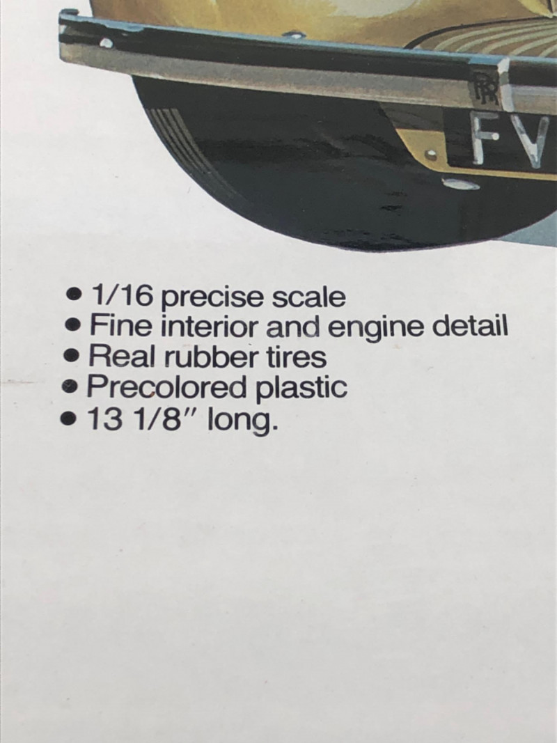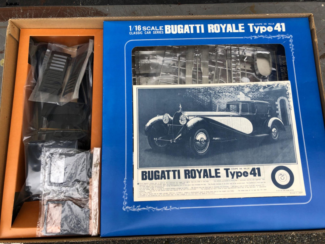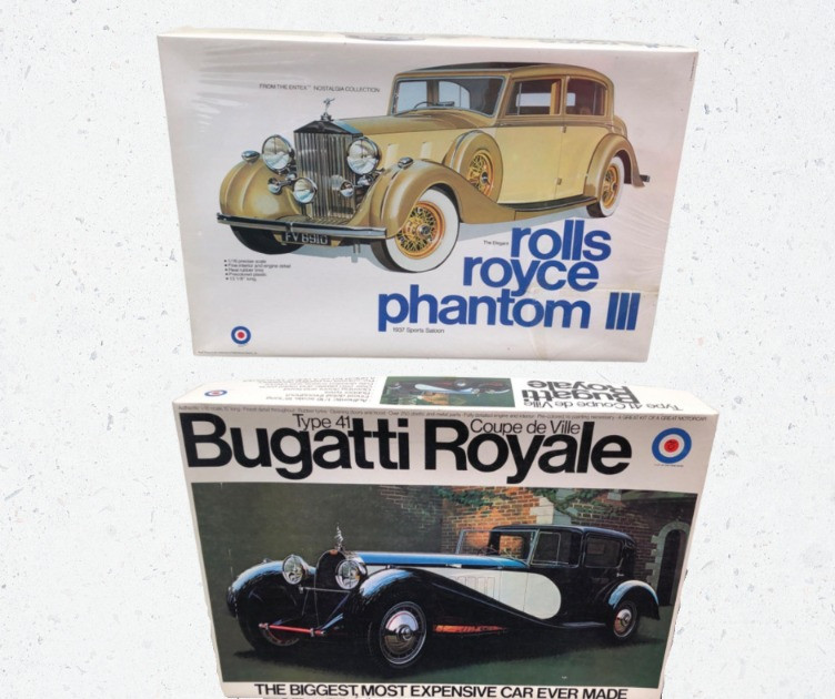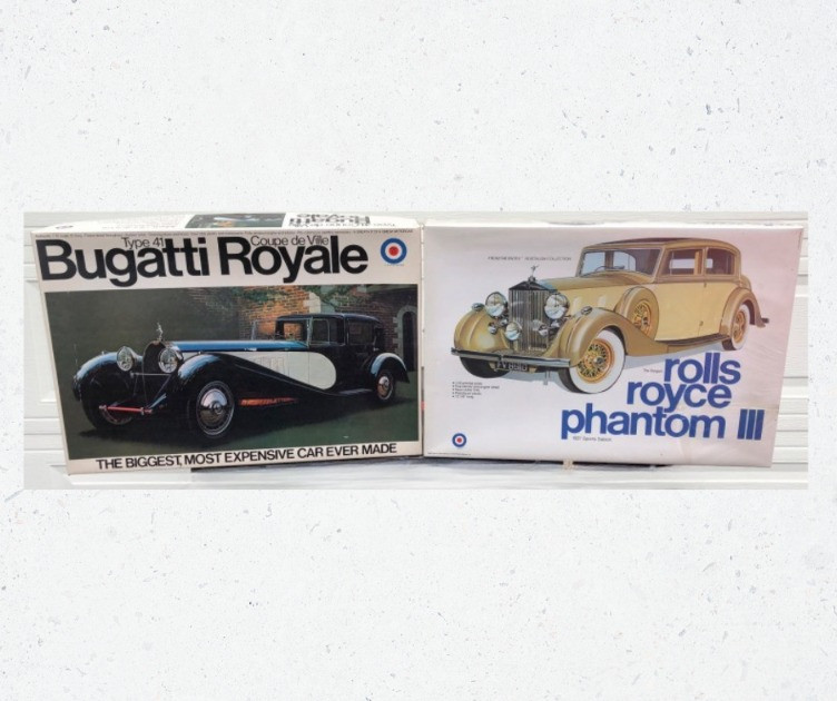 A duo of precision-crafted vintage model kits in 1/16 scale. 1937 Rolls Royce Phantom III – factory shrink-wrapped, unopened box Bugatti Royale Type 41 – classic styling, detailed components Whether for display or assembly, these kits offer a glimpse into the grandeur of automotive history. Ideal for collectors, hobbyists, or anyone drawn to the elegance of pre-war luxury vehicles.
