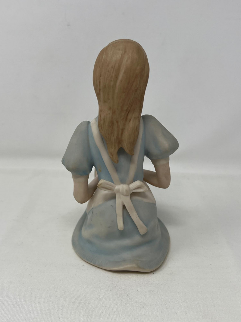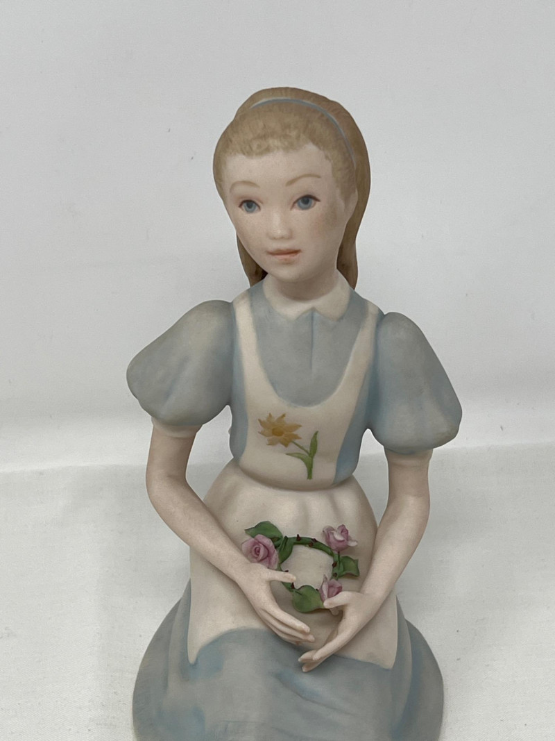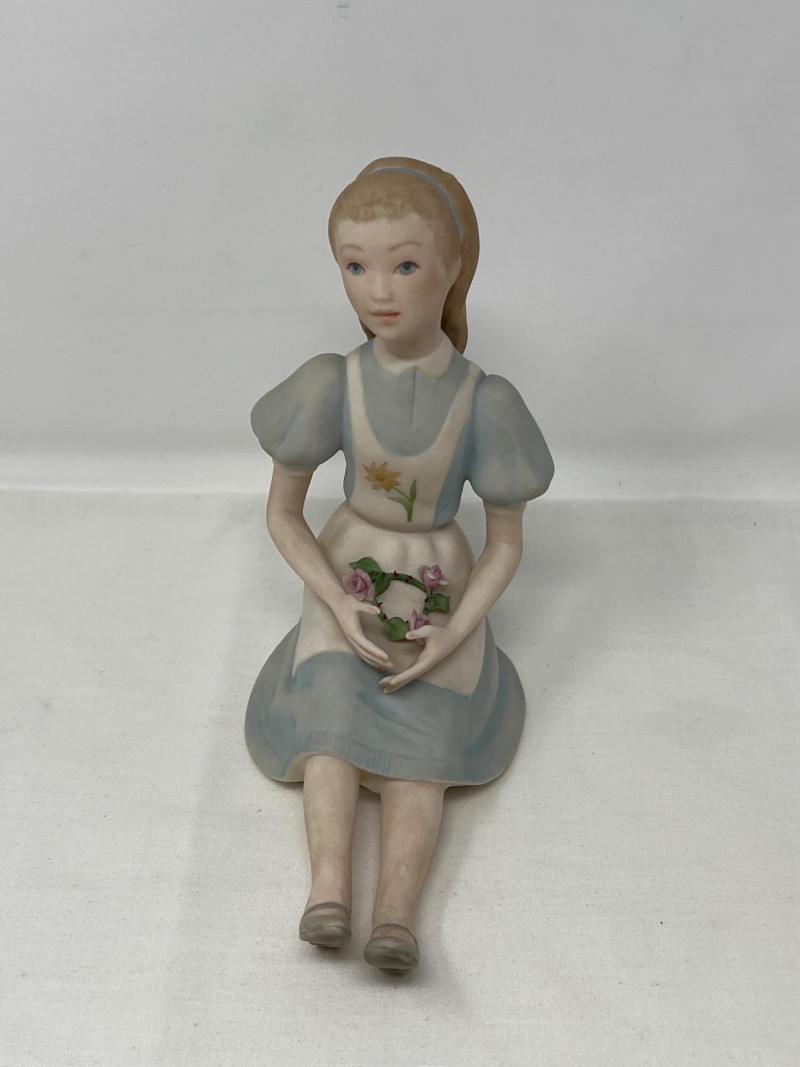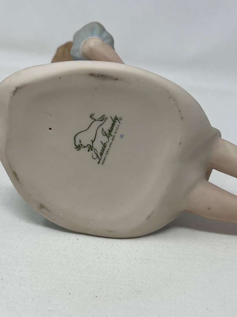 Dimensions: Approx. 10" diameter Laszlo Ispanky Bisque Porcelain Sculpture – Sitting Girl – A tender, contemplative figure sculpted in matte bisque porcelain by Laszlo Ispanky, the Hungarian-American master sculptor known for his emotionally resonant figurines. The girl is seated with gentle posture and serene expression, showcasing Ispanky’s signature attention to form and sentiment.