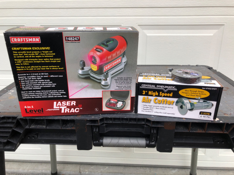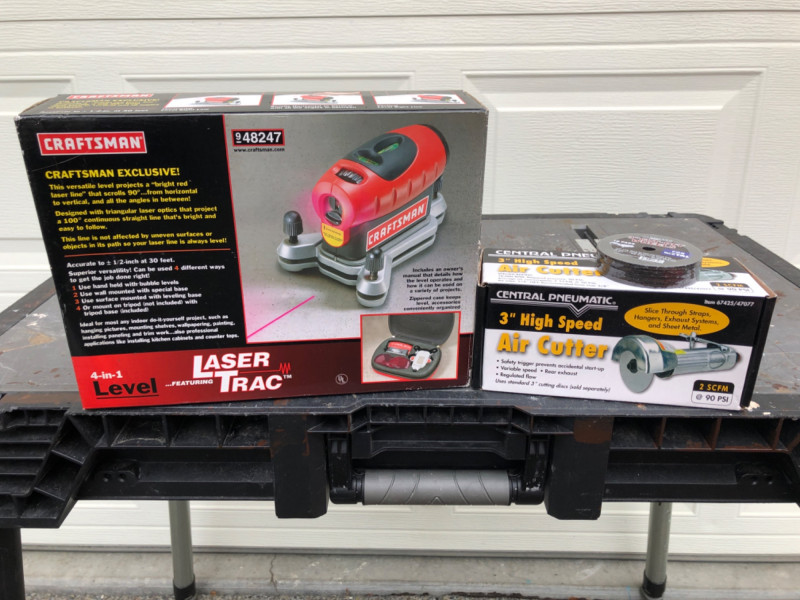 A practical duo for precision and performance: Craftsman Laser Trac Level – Designed for accurate alignment in home improvement or construction projects. Features laser guidance for enhanced visibility and control. Pneumatic 3" High-Speed Cutter – Compact and powerful, ideal for metal, plastic, or composite cutting tasks. Compatible with standard air compressors. Whether you're a seasoned DIYer or a tool collector, this pair offers utility and reliability from a trusted brand.