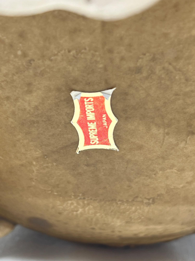 A serene and sculptural ceramic planter marked Supreme Imports Japan, featuring a trio of baby Buddha figures nestled around the vessel’s base. Each figure is rendered with gentle expressions and robed detail, evoking themes of peace, protection, and playful wisdom. Crafted in the mid-20th century for export, this piece blends Japanese figural artistry with Western decorative sensibilities. The planter’s compact form and warm glaze tones make it ideal for tabletop display, altar styling, or as a symbolic accent in meditation spaces.