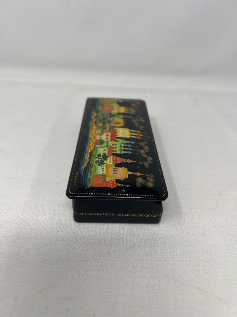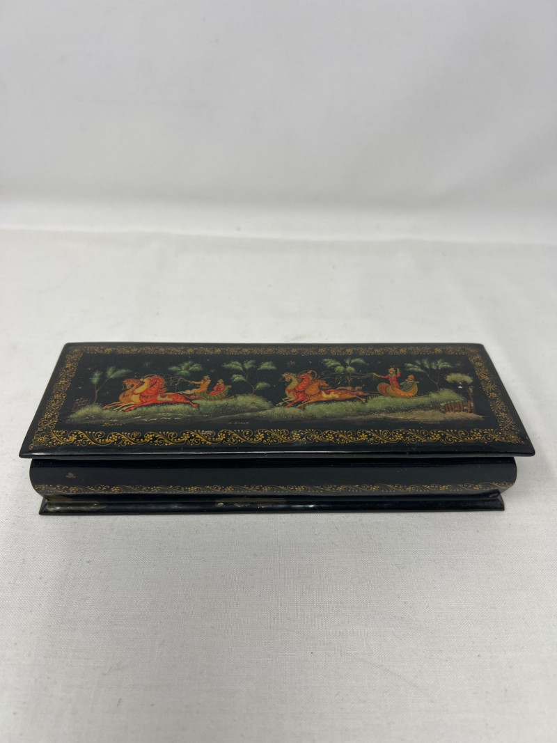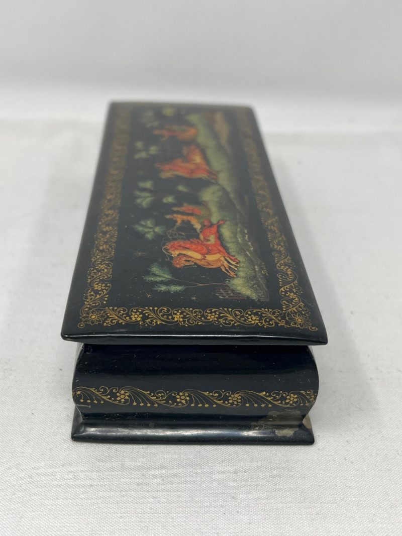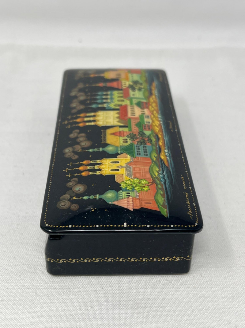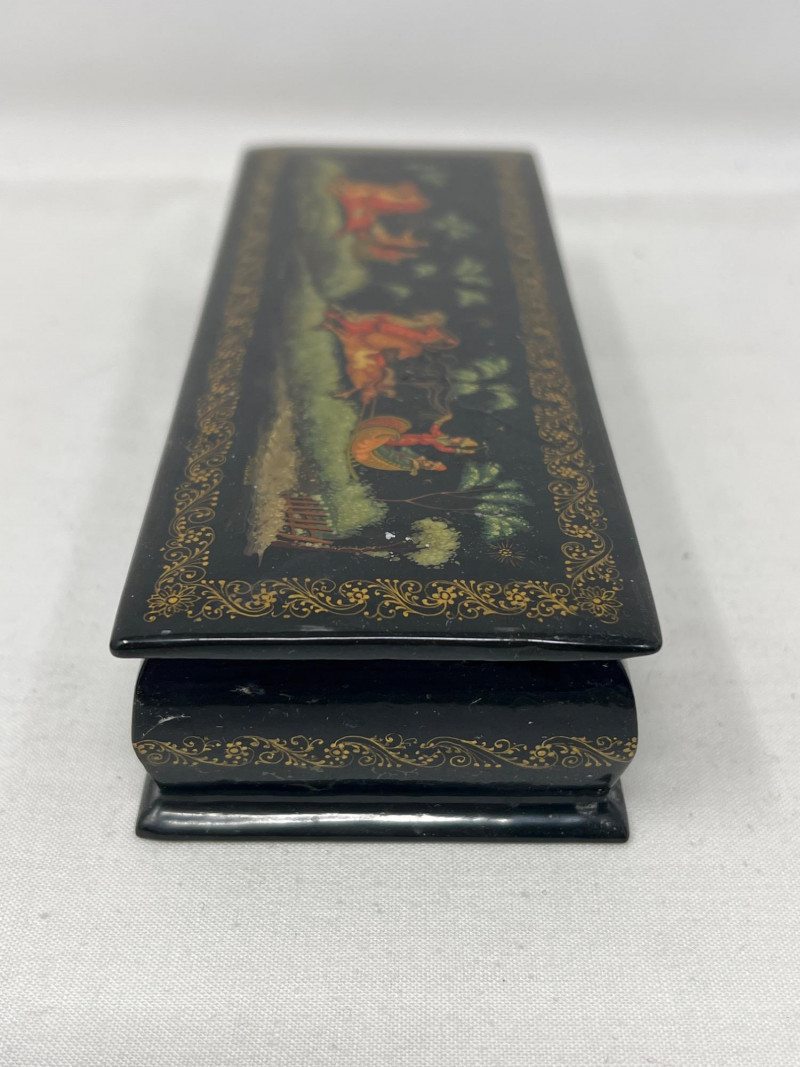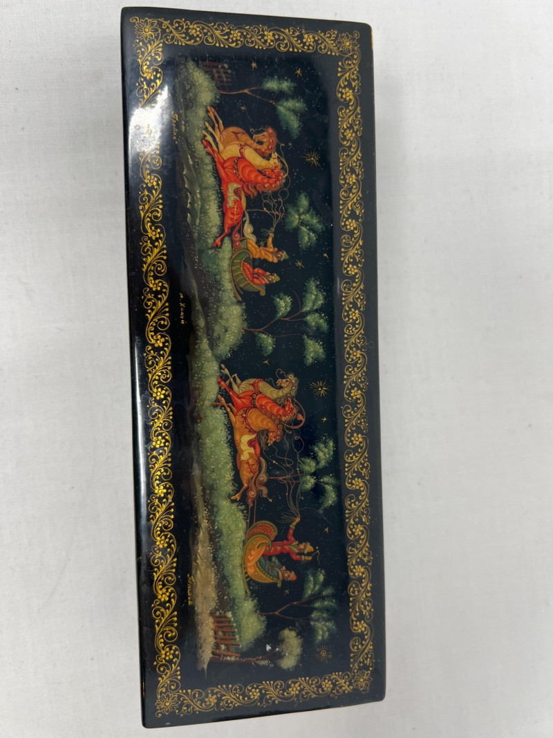 A curated ensemble of writing and desk accessories, blending elegance, craftsmanship, and mid-century charm: Vintage Ink & Lead Pens – A selection of writing instruments ranging from 4" to 8" in length, including fountain and mechanical styles. Each pen reflects the tactile beauty of analog writing, with varied finishes and nib designs. Sterling Silver Tray – Measuring 8" × 2", this slender tray offers a gleaming surface for pens, paperweights, or small desk items. Likely hallmarked, it adds a touch of refinement to any workspace. (just needs a polish) Decorative Lacquer Plate – A bold 11" diameter plate with rich surface detailing, ideal for display or use as a catchall. The lacquer finish suggests East Asian influence, pairing well with minimalist or curated interiors. Two Vintage Boxes – Measuring 2.5" wide × 5" and 7" long × 1.25" high, these compact containers offer storage for pens, clips, or keepsakes. Their understated design complements the set’s aesthetic.