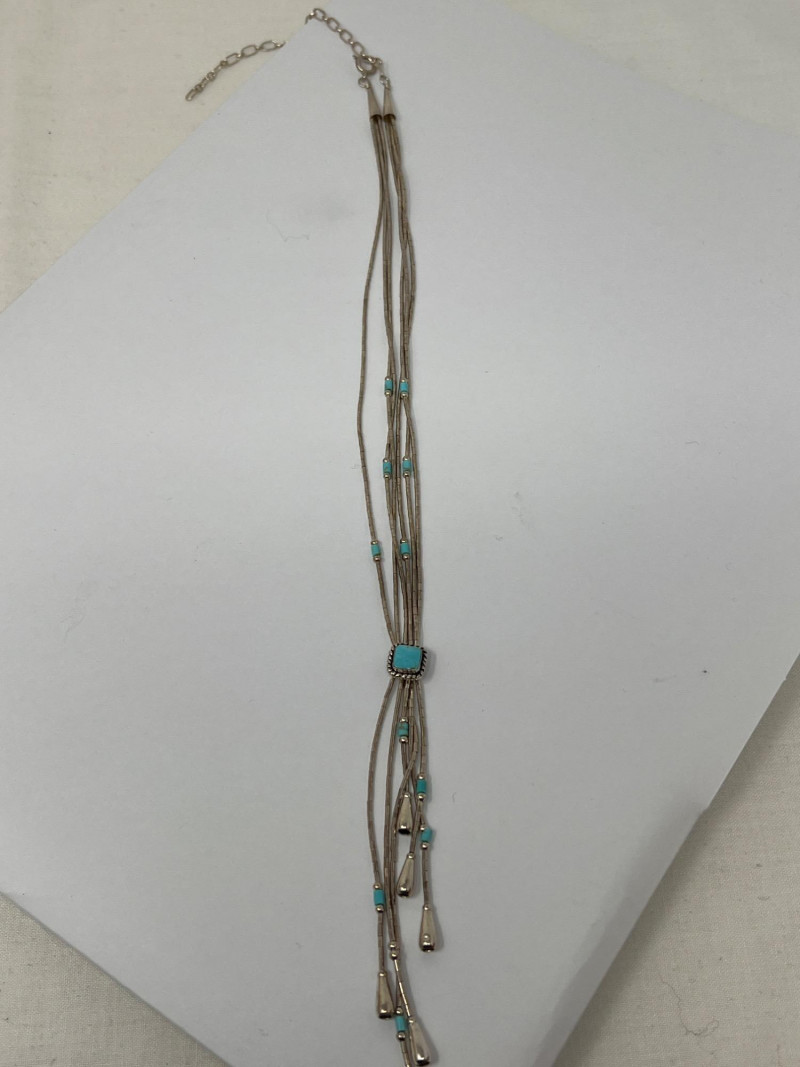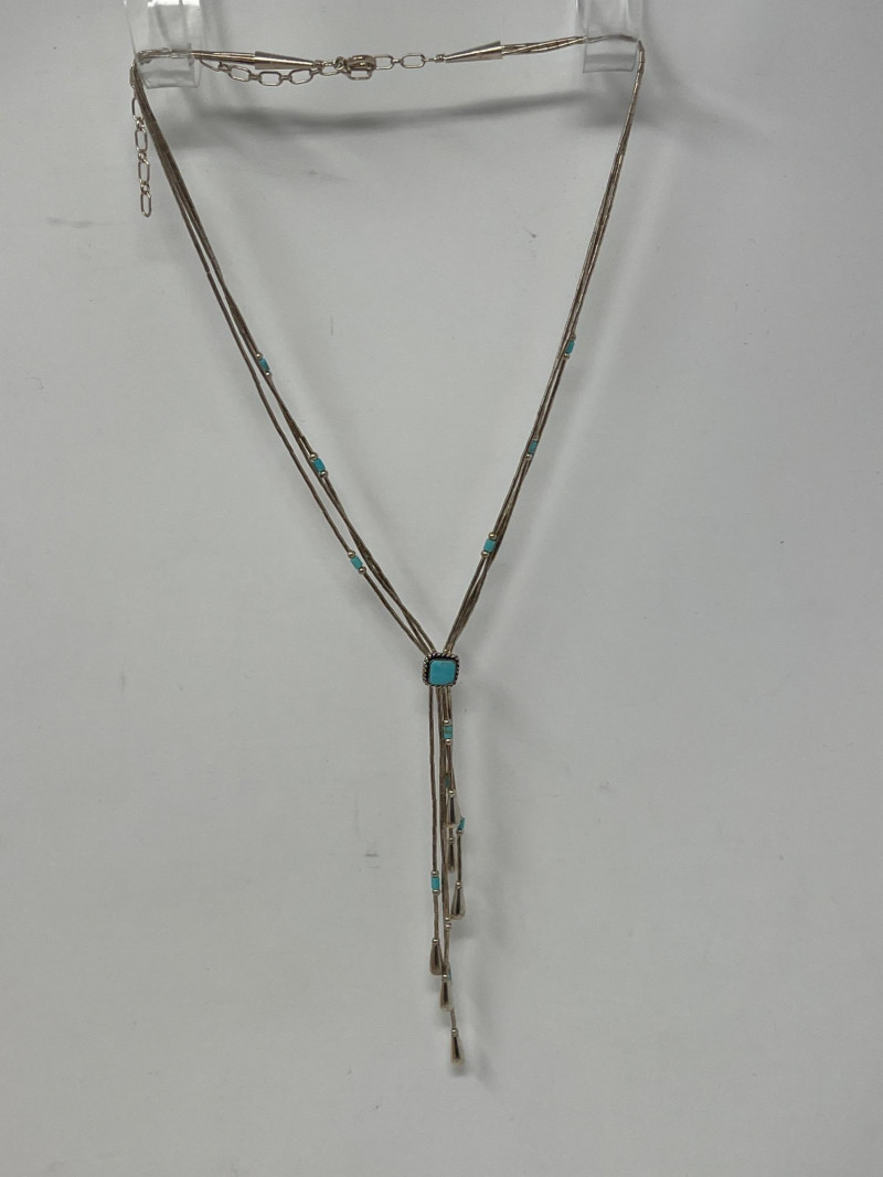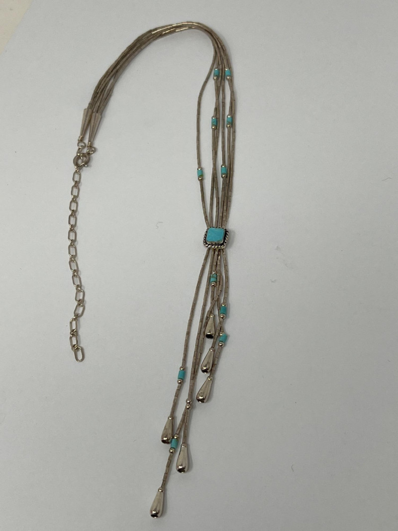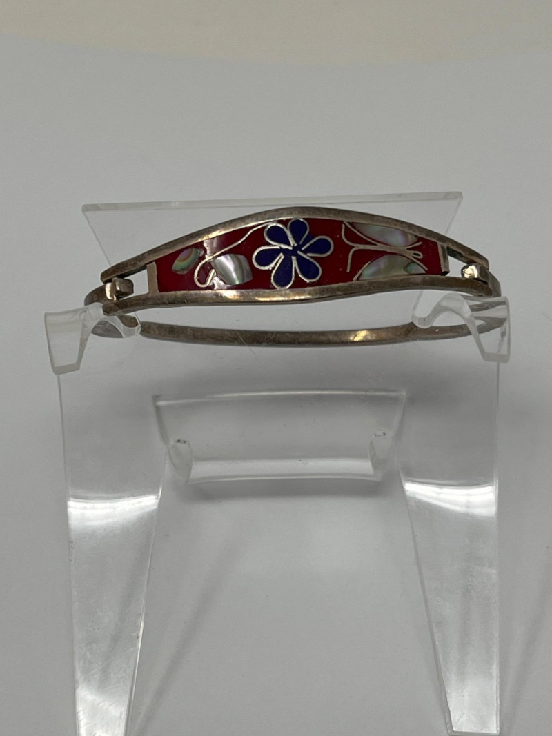 Lot # 116 - Mexican Silver Jewelry – Inlaid Bracelet, Chains & Earrings