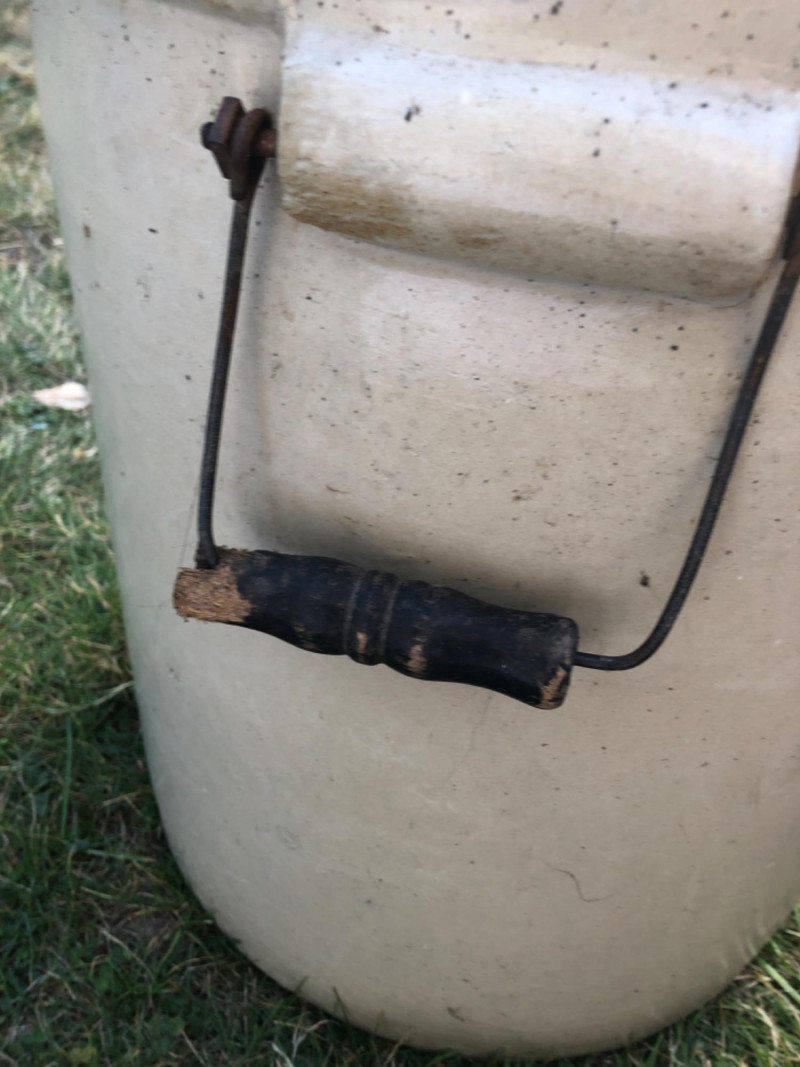 A beautifully preserved Red Wing Union Stoneware crock featuring the iconic red wing logo and patent date of December 21, 1915. With its classic form, glaze, and bold emblem, this piece embodies the enduring craftsmanship of early 20th-century American pottery. Whether displayed in a farmhouse kitchen or used as a rustic accent, its visual presence and historical charm make it a standout collectible. Note the exterior surface crack and one handle is missing. It has been replaced with a rustic wire replacement. Refer to pictures for condition. No lid.