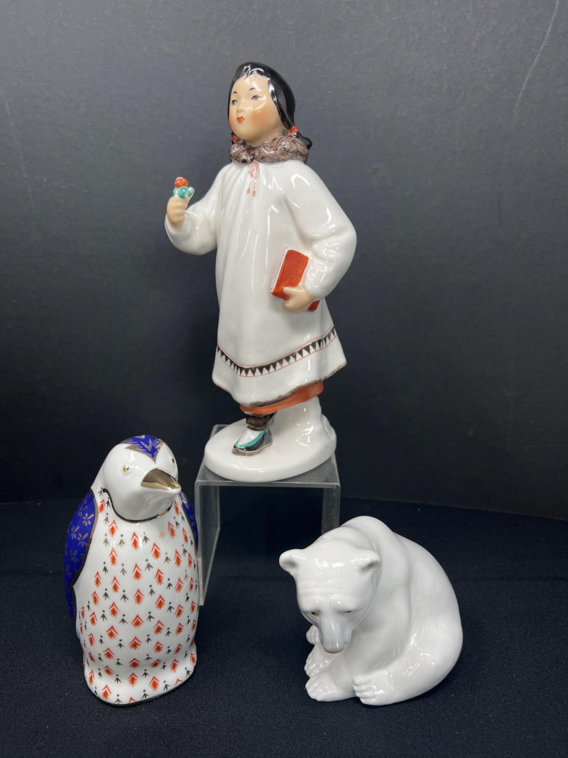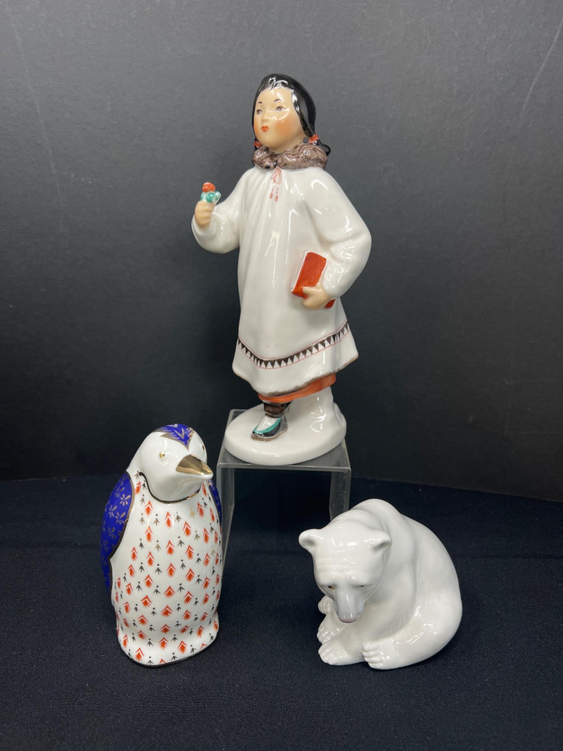 Lot # 119 - Alaska Trio – Russian Figurine, Lladro Polar Bear & Penguin