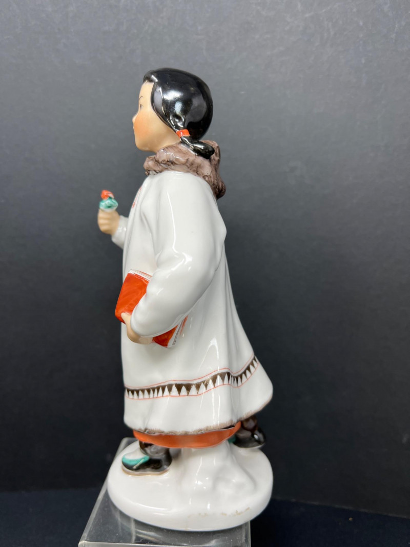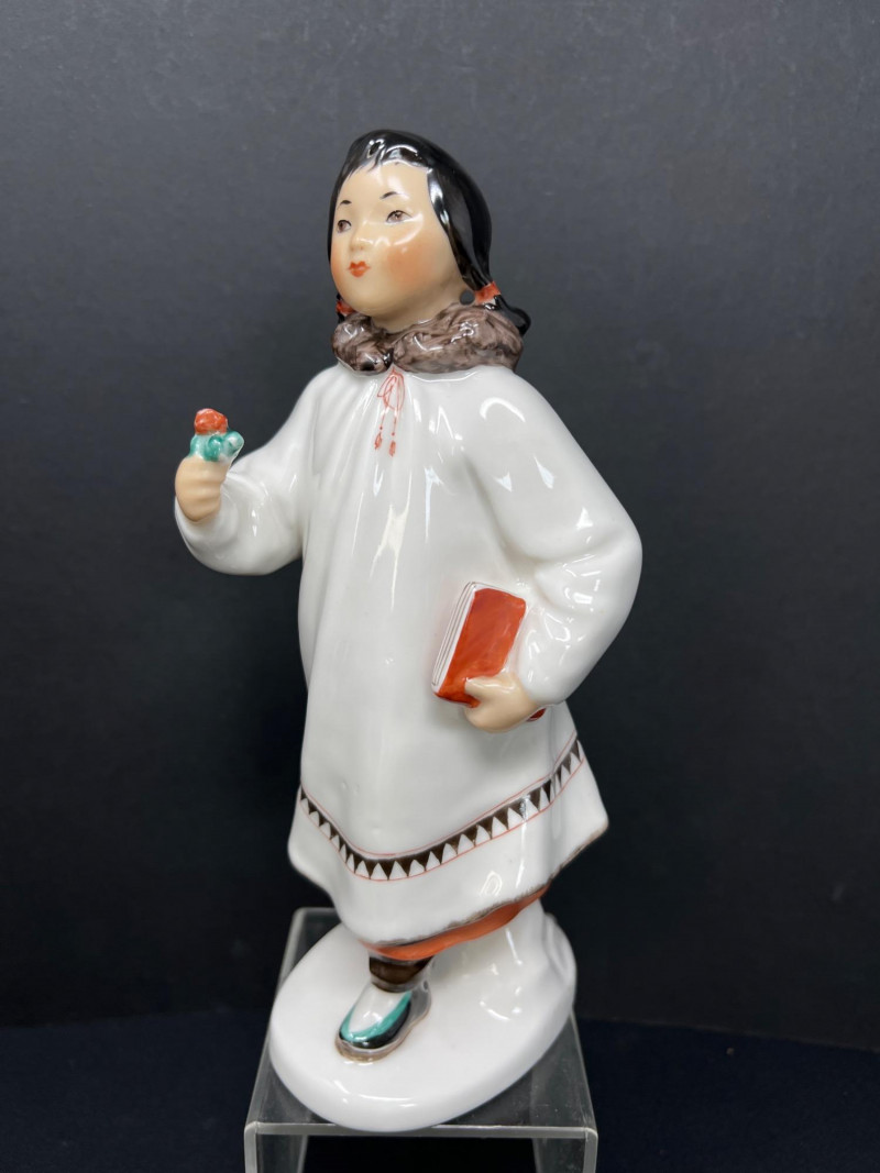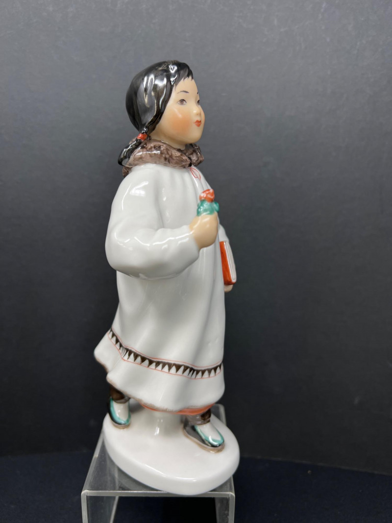 A charming trio evoking the spirit of the North: Yakut with Flower Figurine – Russian Losonov ceramic, 8" x 4" x 4", featuring a traditional Yakut girl figure holding a flower. Lladro White Polar Bear – 3.5" x 4" x 3", a serene porcelain sculpture from the renowned Spanish maker. Penguin Figurine – Tapestry Collection, 5" tall, with 24k gold highlights and a glossy finish. Together, these pieces offer a quiet narrative of Arctic grace and cultural artistry—ideal for collectors of global ceramics or animal-themed décor.