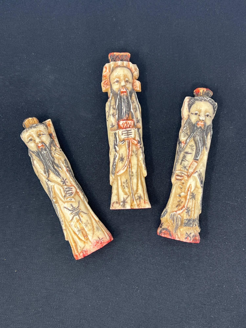 Lot # 125 - Three Chinese Carved Bovine Bone Figures with Dynasty Mark