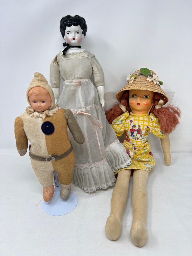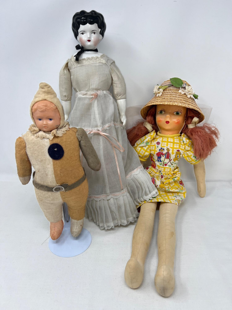 Lot # 129 - Storybook Faces & German China Grace – Trio of Antique & Vintage Dolls