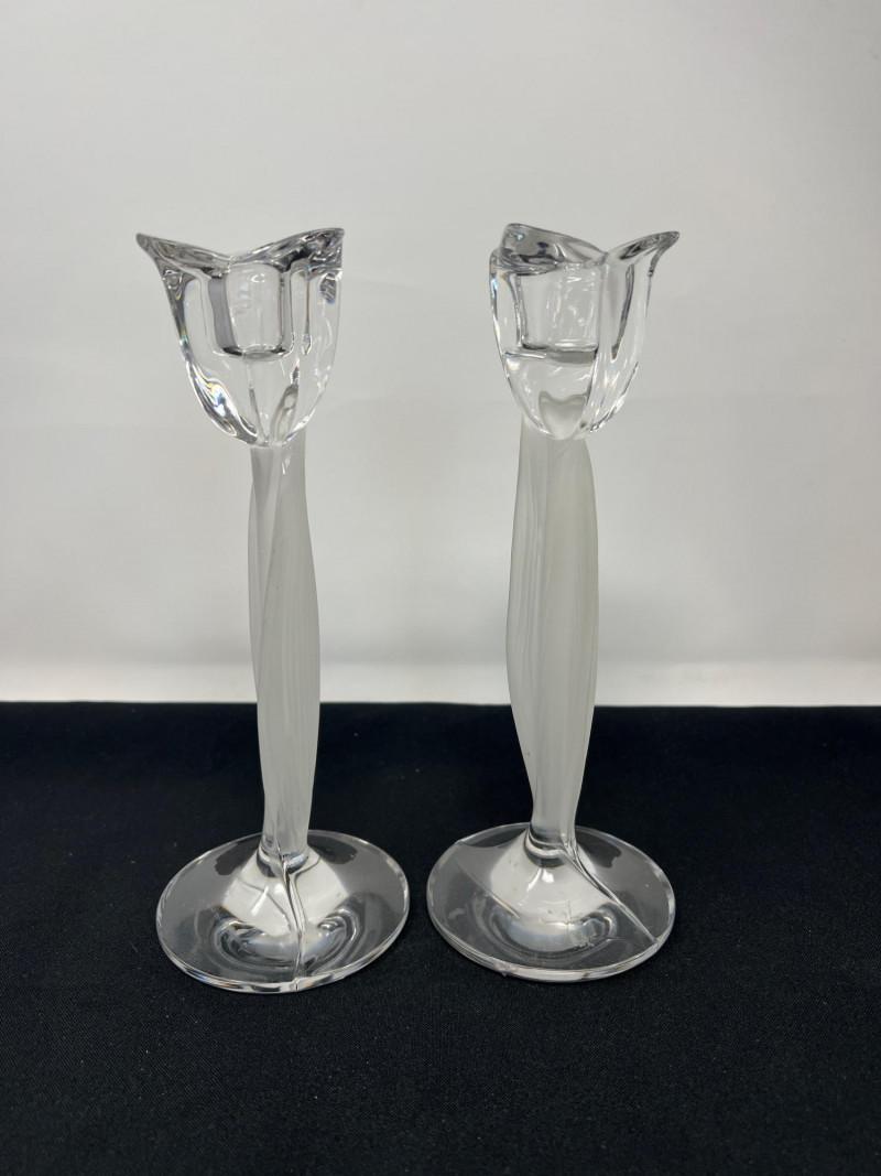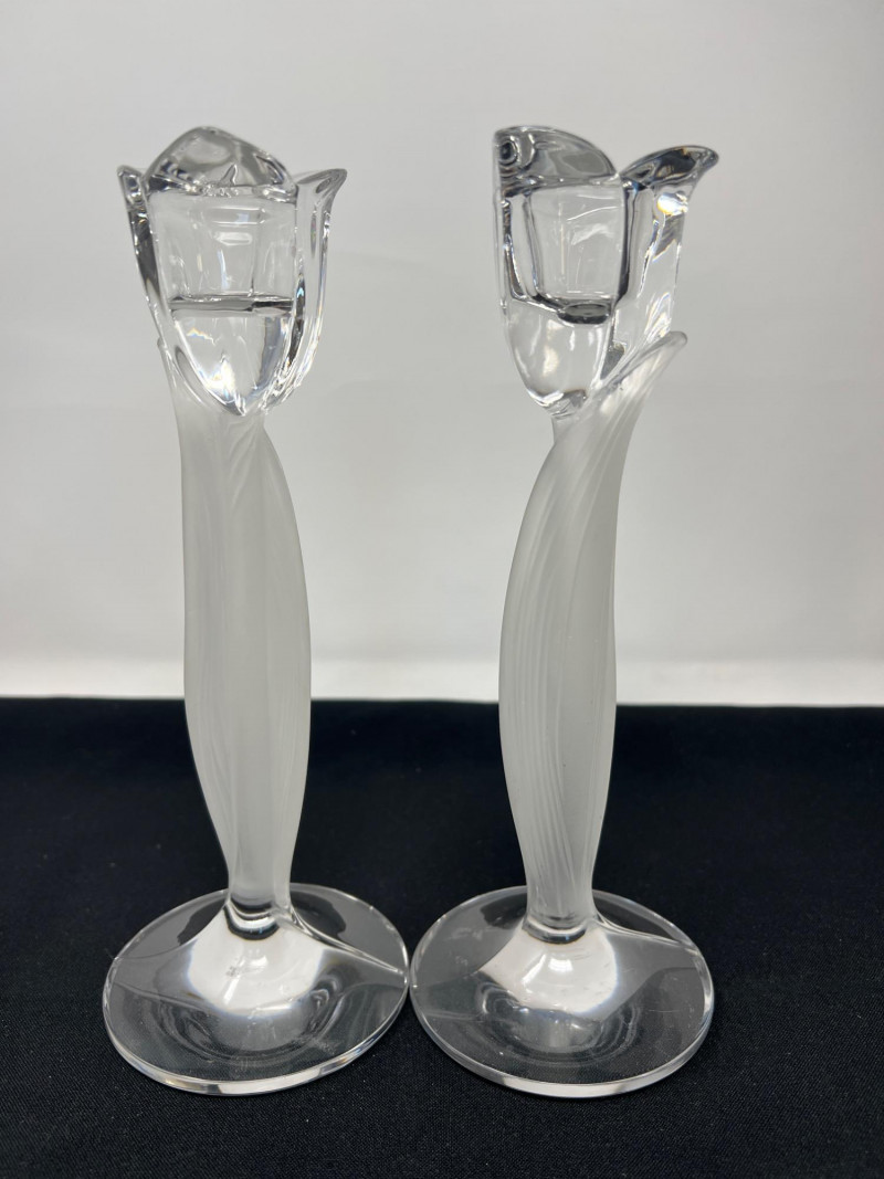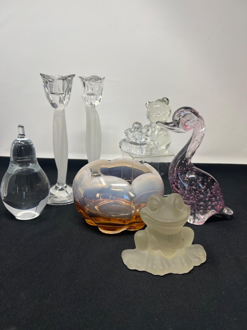 A delightful ensemble of glass figures, each offering a distinct personality and visual intrigue: Pair of Mikasa Rose Candlesticks