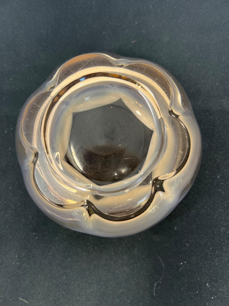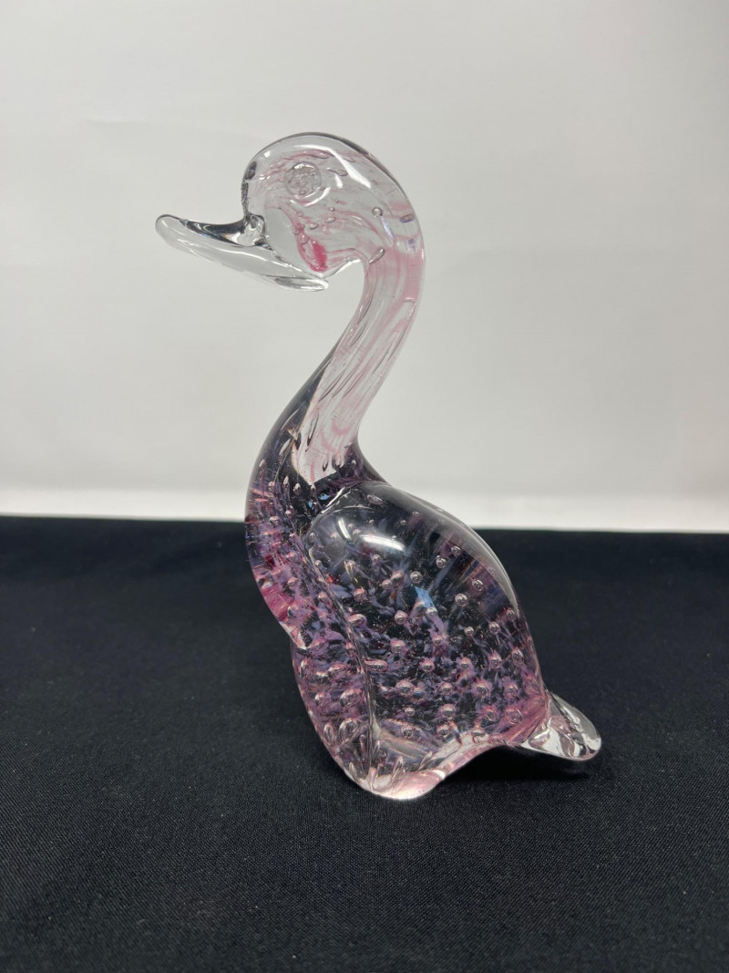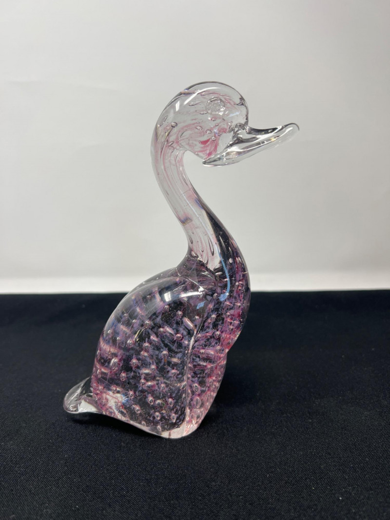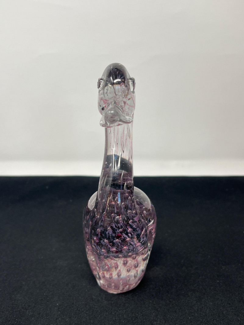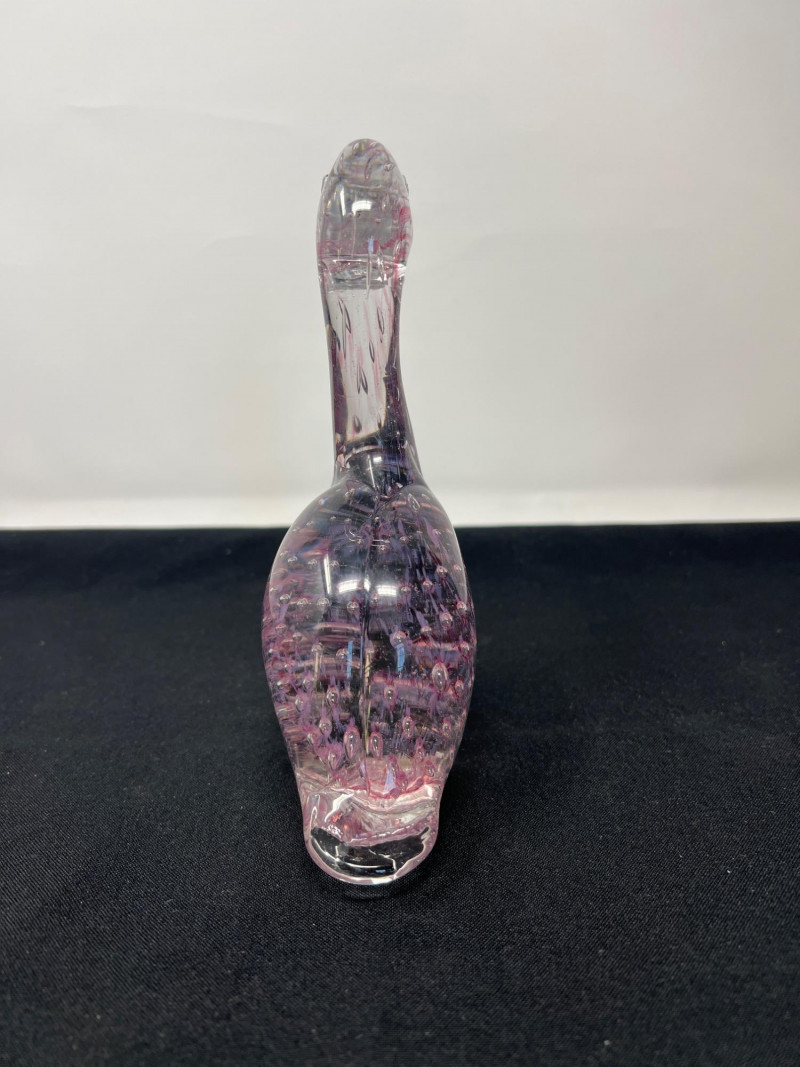 A whimsical frog paperweight with a soft frosted finish, made in West Germany. Part of Goebel’s collectible glass animal series, this piece adds a playful yet refined touch. 4 inches tall Pink-Toned Swan with Interior Bubbles