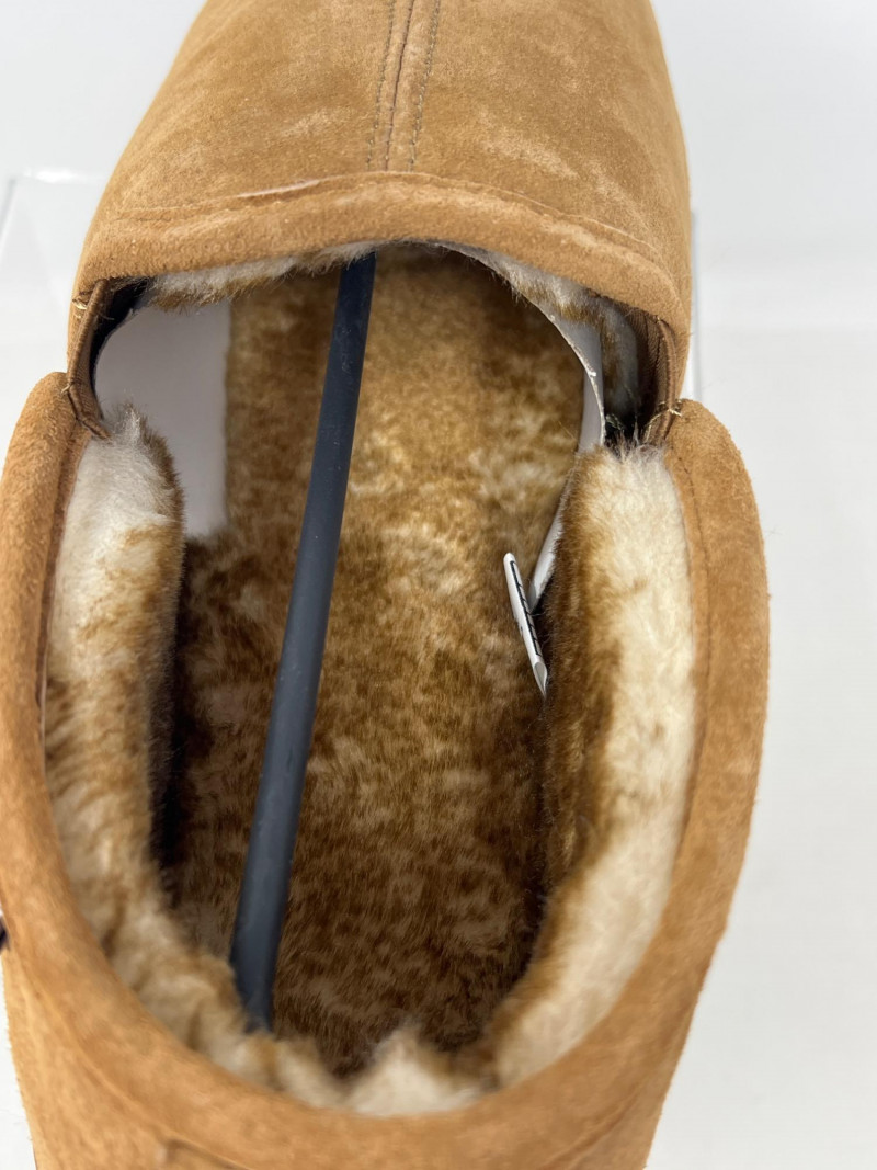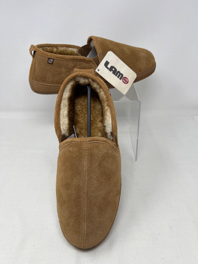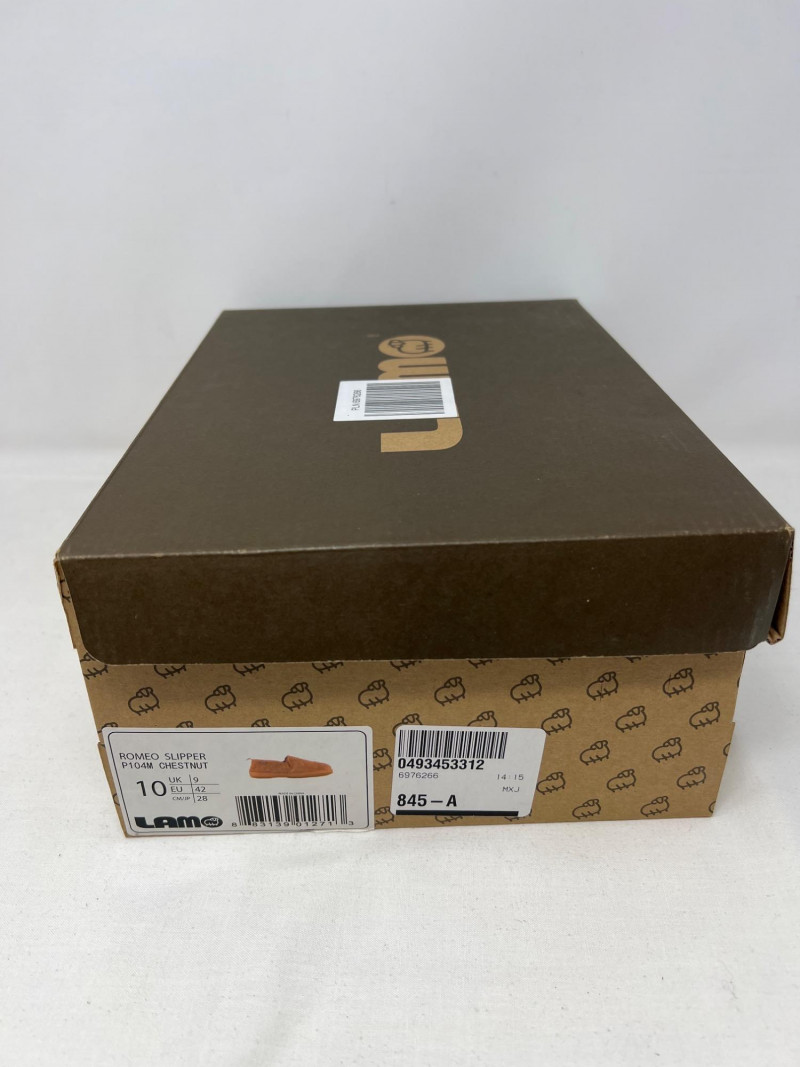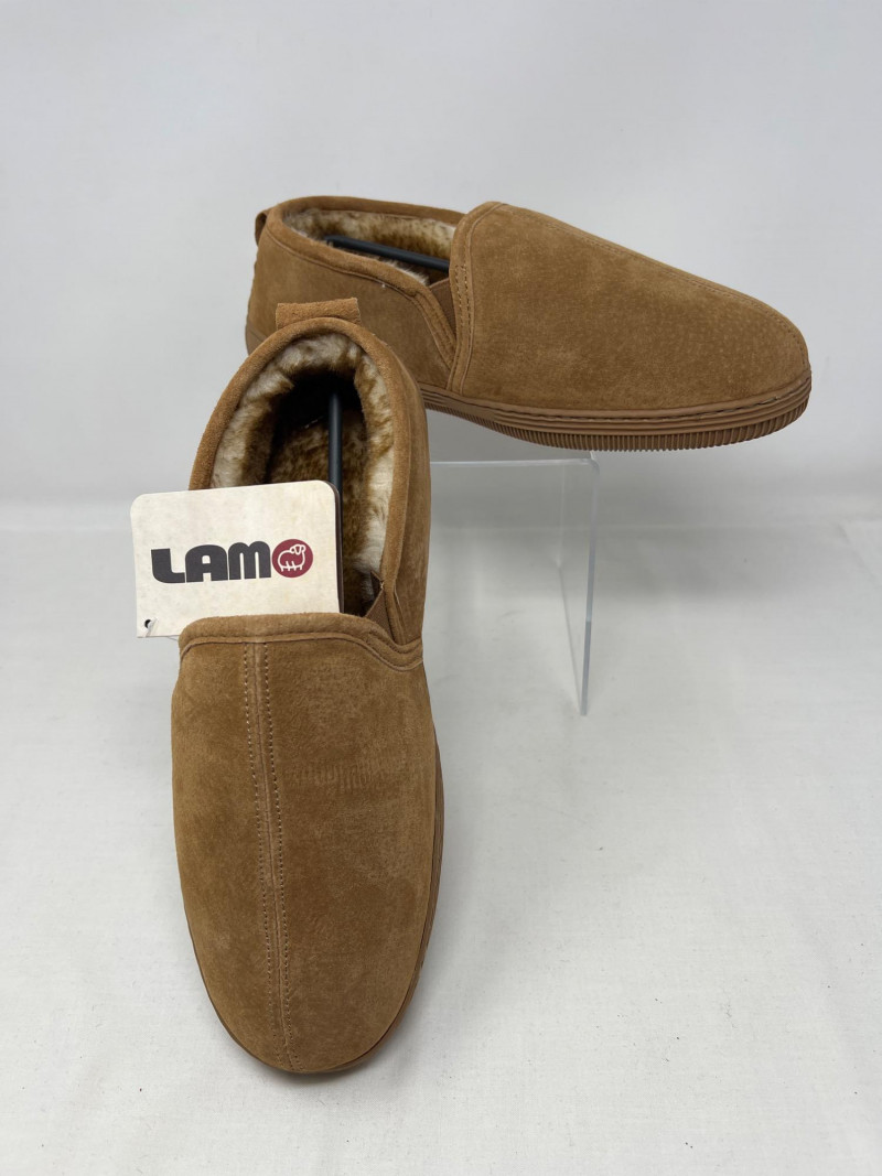 A brand-new pair of Lamo Romeo Slippers in rich chestnut suede, Men’s Size 10M, still in the original box. These classic slip-ons feature: Suede upper with stretch side panels for easy on/off Premium faux fur lining for cozy warmth Durable TPR outsole suitable for indoor and light outdoor wear Known for their comfort and timeless styling, Lamo Romeo slippers are a favorite for lounging, gifting, or upgrading your everyday downtime. This pair is unworn and ready to wrap.